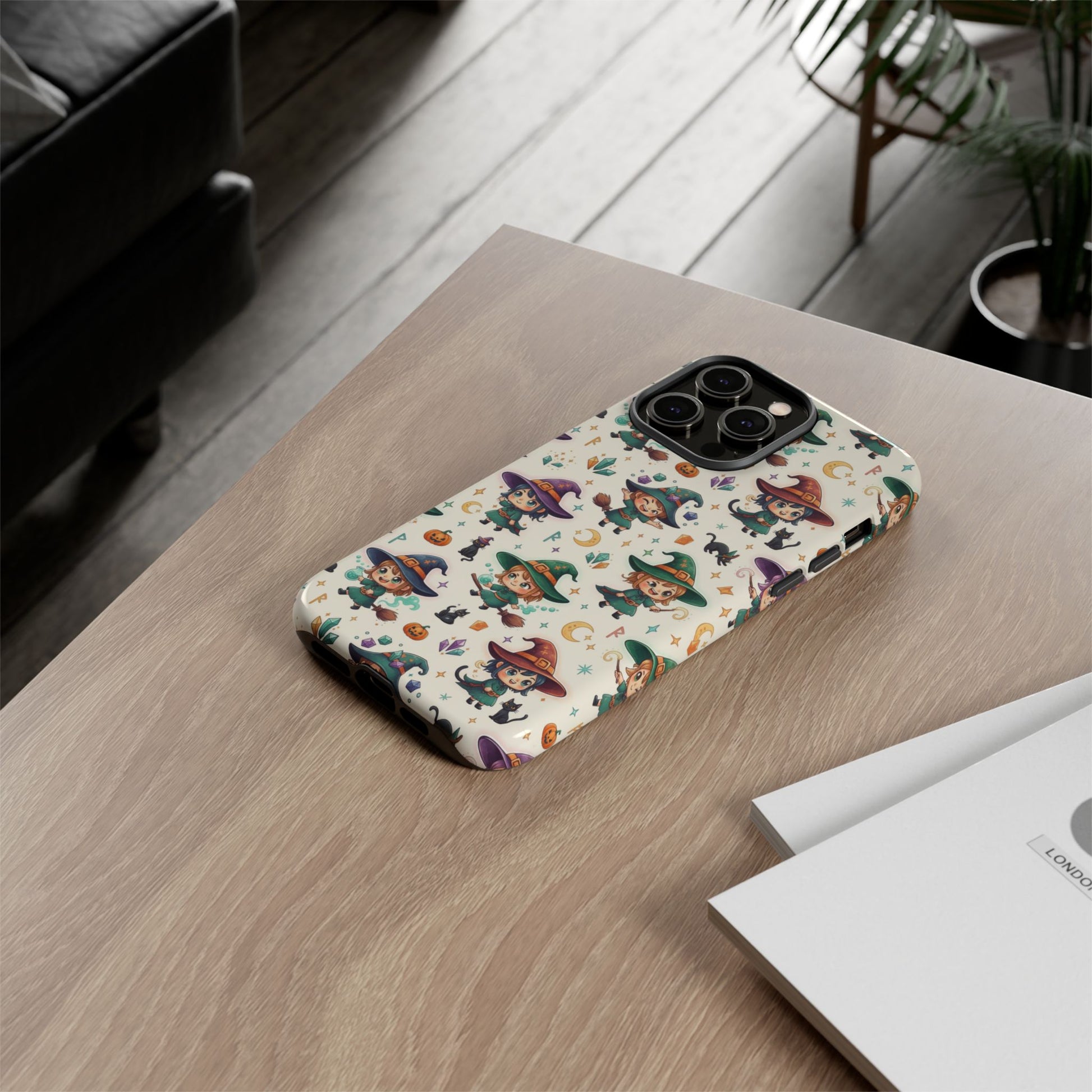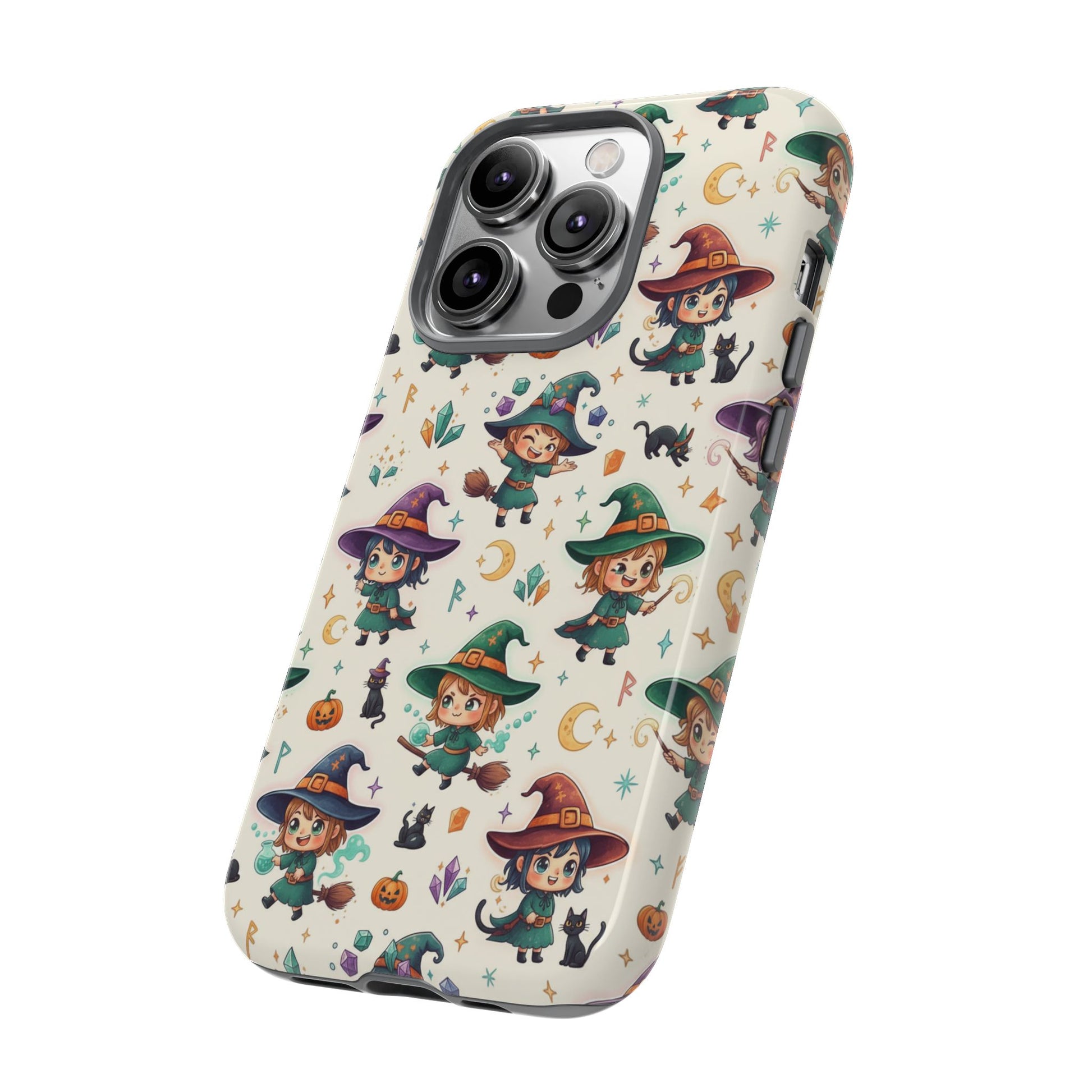 Niedliche iPhone-Handyhülle mit Hexenmuster – Halloween-Kawaii-iPhone-Hülle