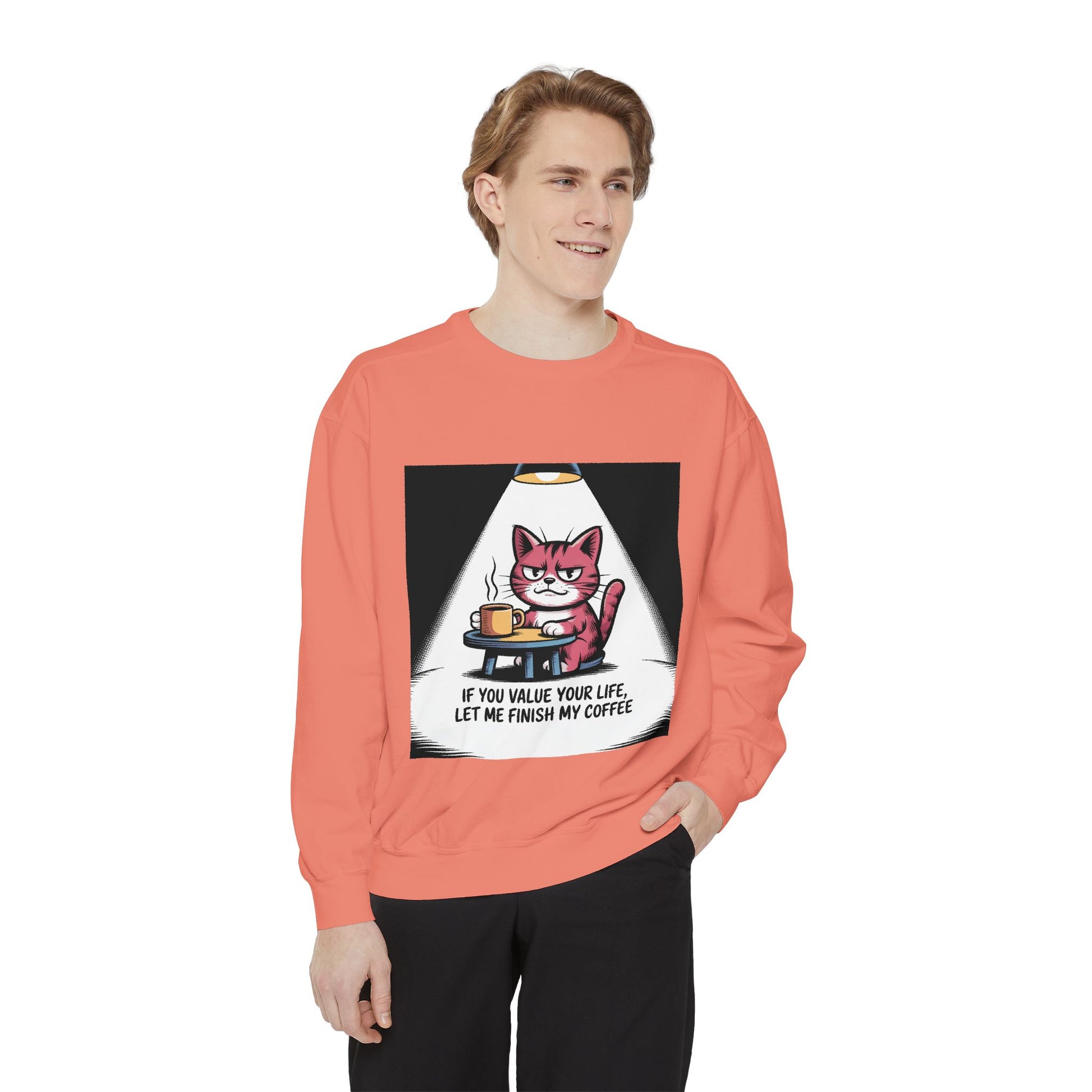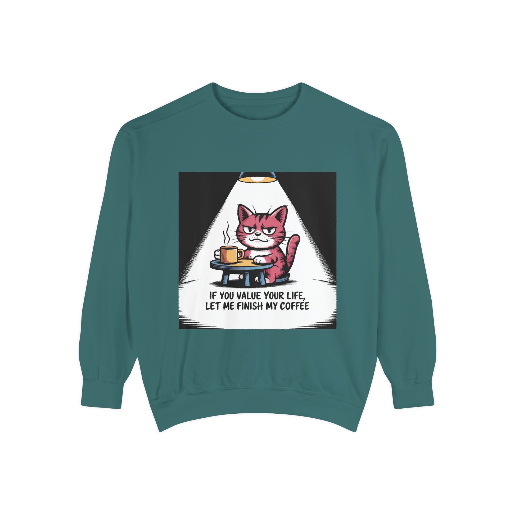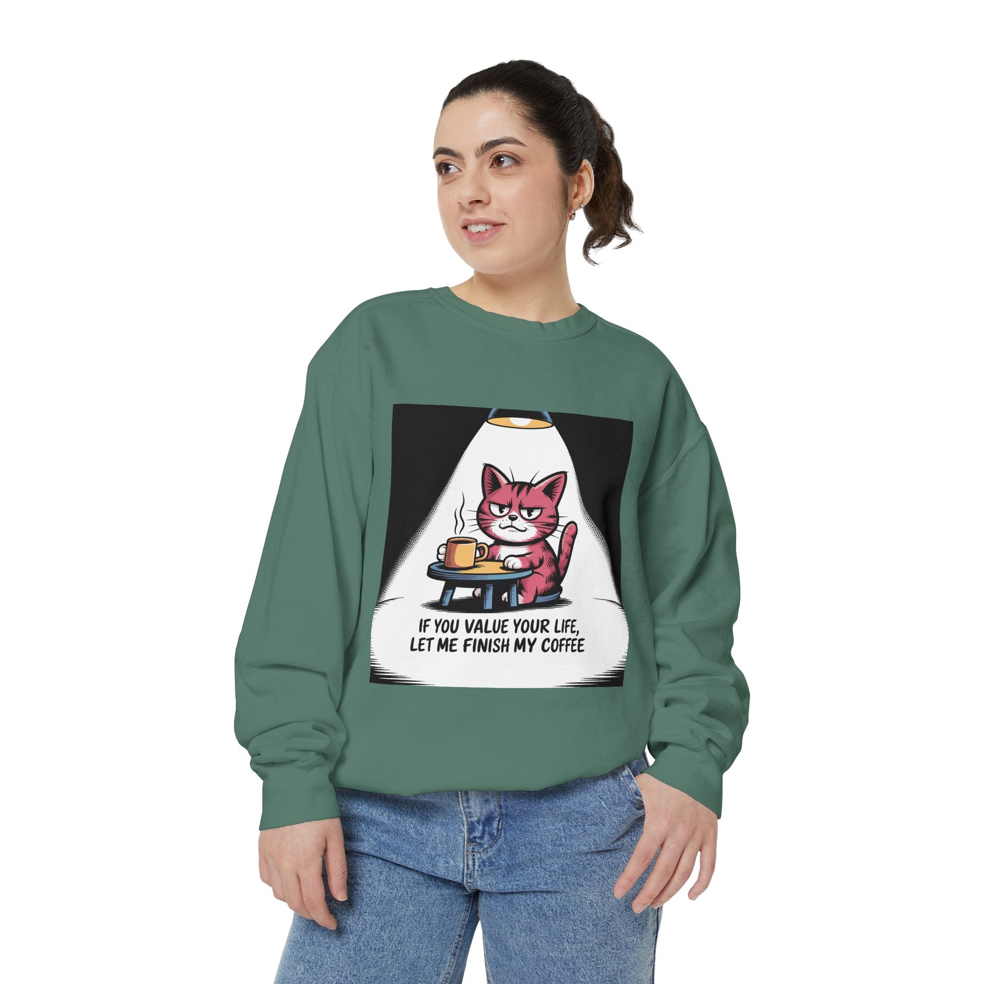 Lustiges Katzen-Sweatshirt – „Wenn dir dein Leben lieb ist, lass mich meinen Kaffee austrinken“ – Kuscheliger Pullover mit Grafikprint