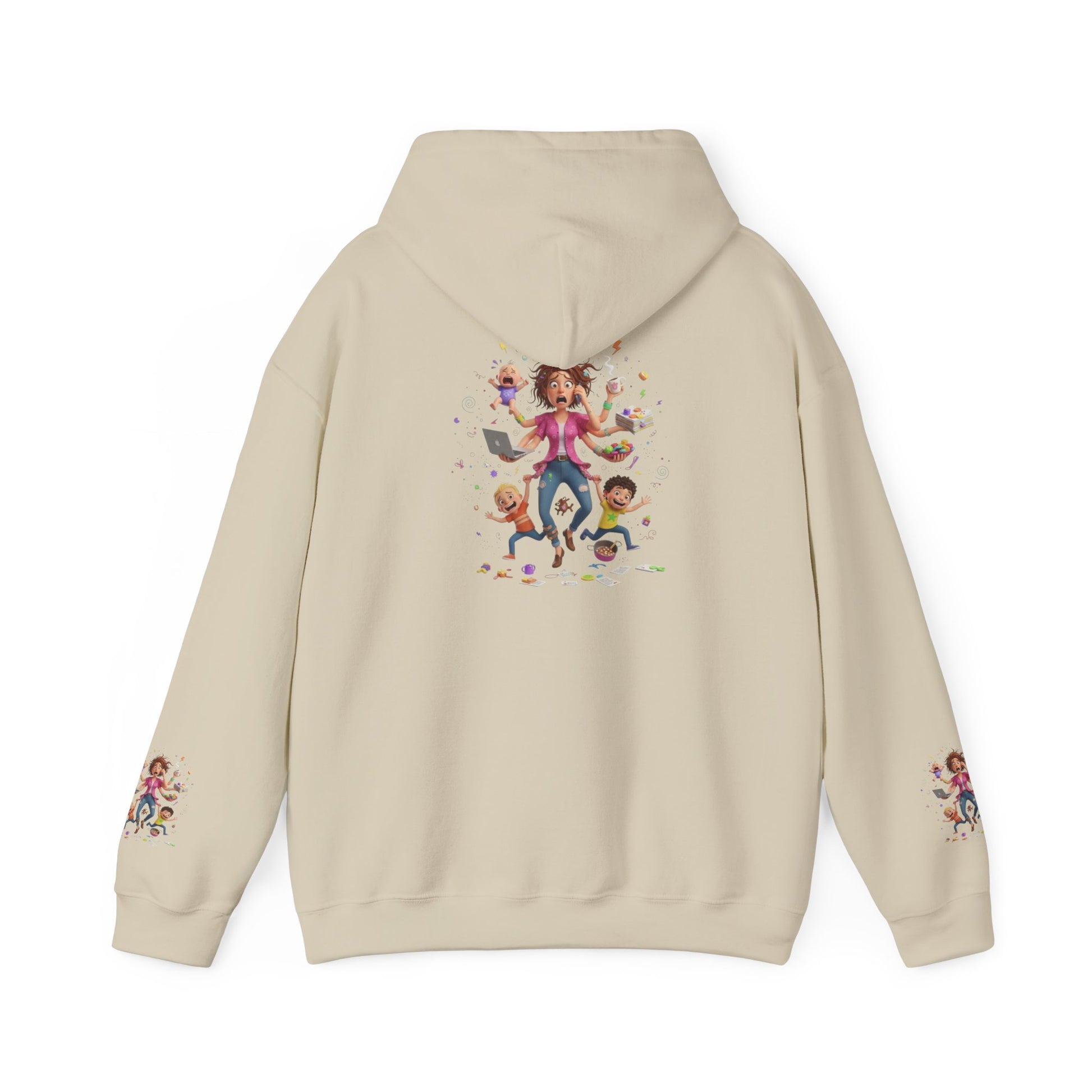 Hoodie – Pullover mit verspielter Illustration von Mutter und Kindern: „Super Mama“