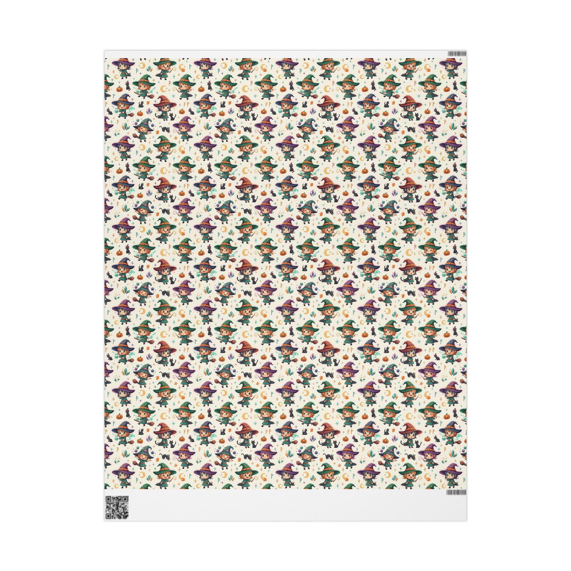 Papel de regalo suave y caprichoso con un estampado de pequeñas y divertidas brujas y motivos mágicos. El fondo crema permite que los tonos joya de púrpuras, verdes y dorados destaquen sin abrumar el regalo que se encuentra debajo. Cada hoja se siente sustancial y se imprime nítidamente en papel de bellas artes de alta definición de 90 g/m², lo que le da a las ilustraciones una calidad vibrante, como si estuvieran dibujadas a mano. Use el acabado brillante cuando desee un brillo brillante y reflectante que capture la luz, o elija el mate para una apariencia más refinada y artística. El diseño se repite en rollos de gran tamaño para que los paquetes pequeños y medianos tengan una cobertura completa y sin costuras, y la impresión a una cara mantiene el reverso limpio para facilitar el plegado. Un pequeño borde blanco con un código aparece en el borde para la producción; no interfiere con la mayoría de los proyectos de envoltura y se puede plegar o recortar.