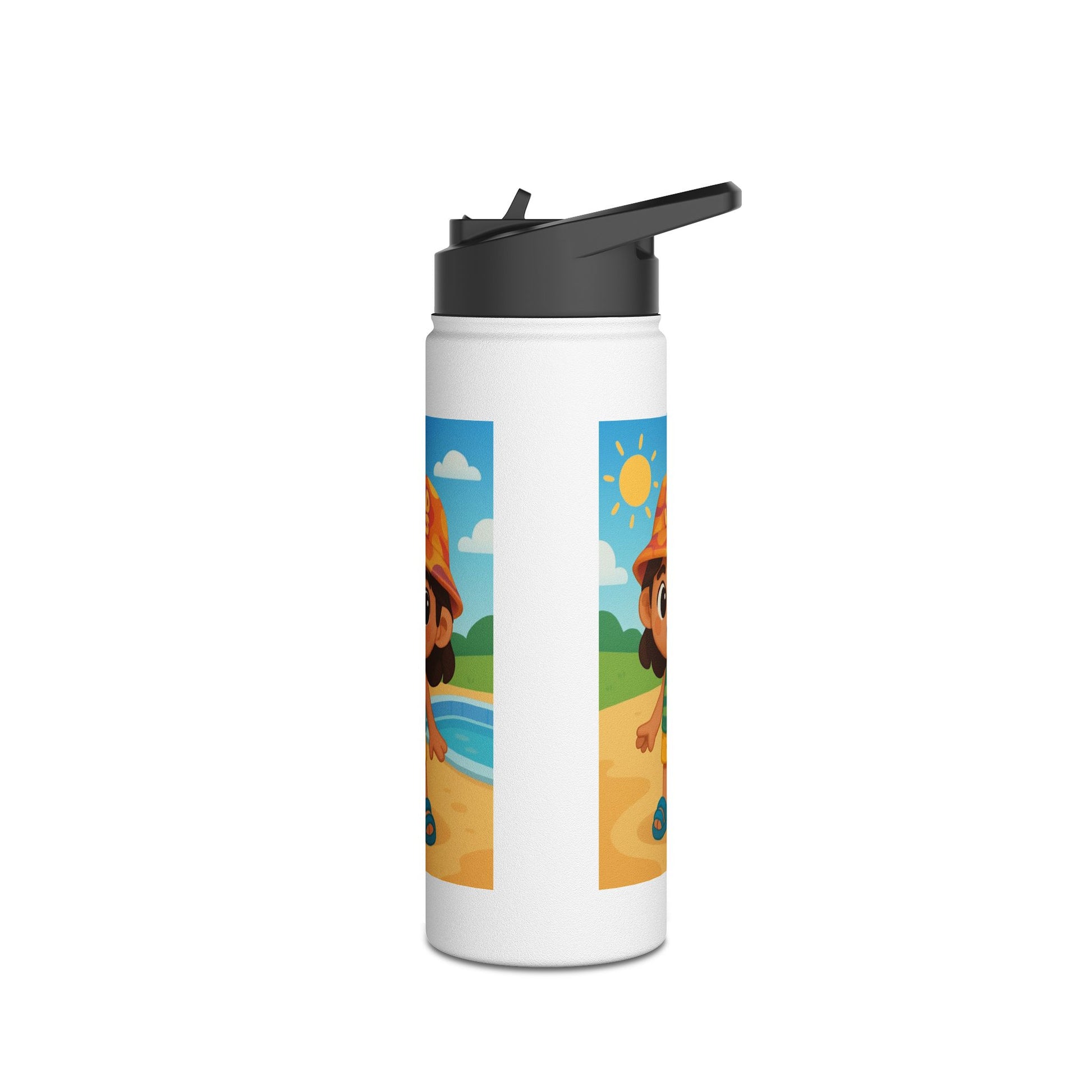Esta botella de agua de acero inoxidable aporta energía alegre y divertida a cada sorbo. Un diseño brillante envuelve la botella —un niño alegre con un sombrero de pescador "Good Vibes" de pie en una playa bajo un sol radiante—, convirtiendo un simple accesorio de hidratación en un pequeño remanso de alegría. Su construcción de doble pared mantiene la temperatura para que las bebidas frías se mantengan frías y las calientes calientes, mientras que el acabado mate y granulado proporciona una sensación suave al tacto y reduce las huellas dactilares visibles. Ligera para excursiones de un día, resistente para el uso diario y fabricada con materiales totalmente libres de BPA con certificaciones de seguridad confiables, está diseñada para adultos que buscan un toque de color y personalidad en su rutina diaria. Elige entre tres tamaños para combinar con tus desplazamientos matutinos, sesiones de gimnasio o largas tardes al aire libre.