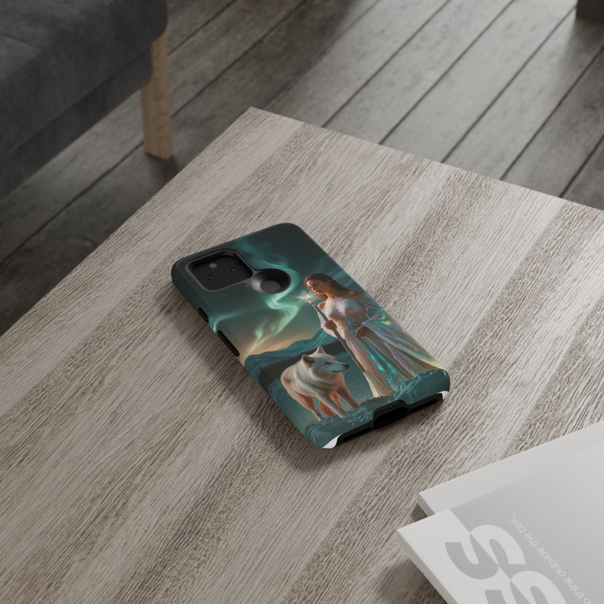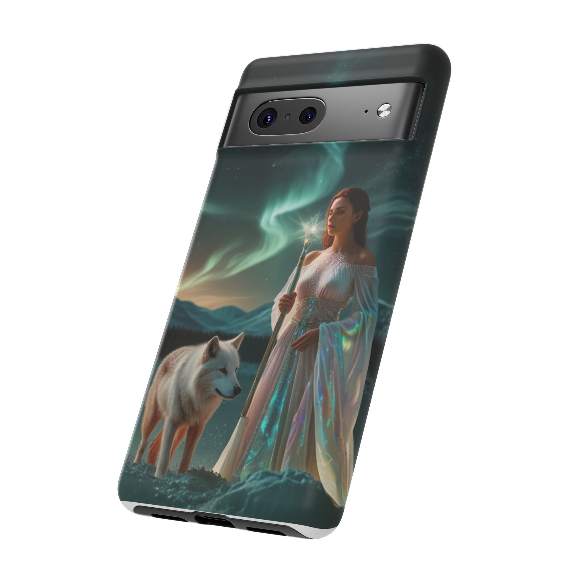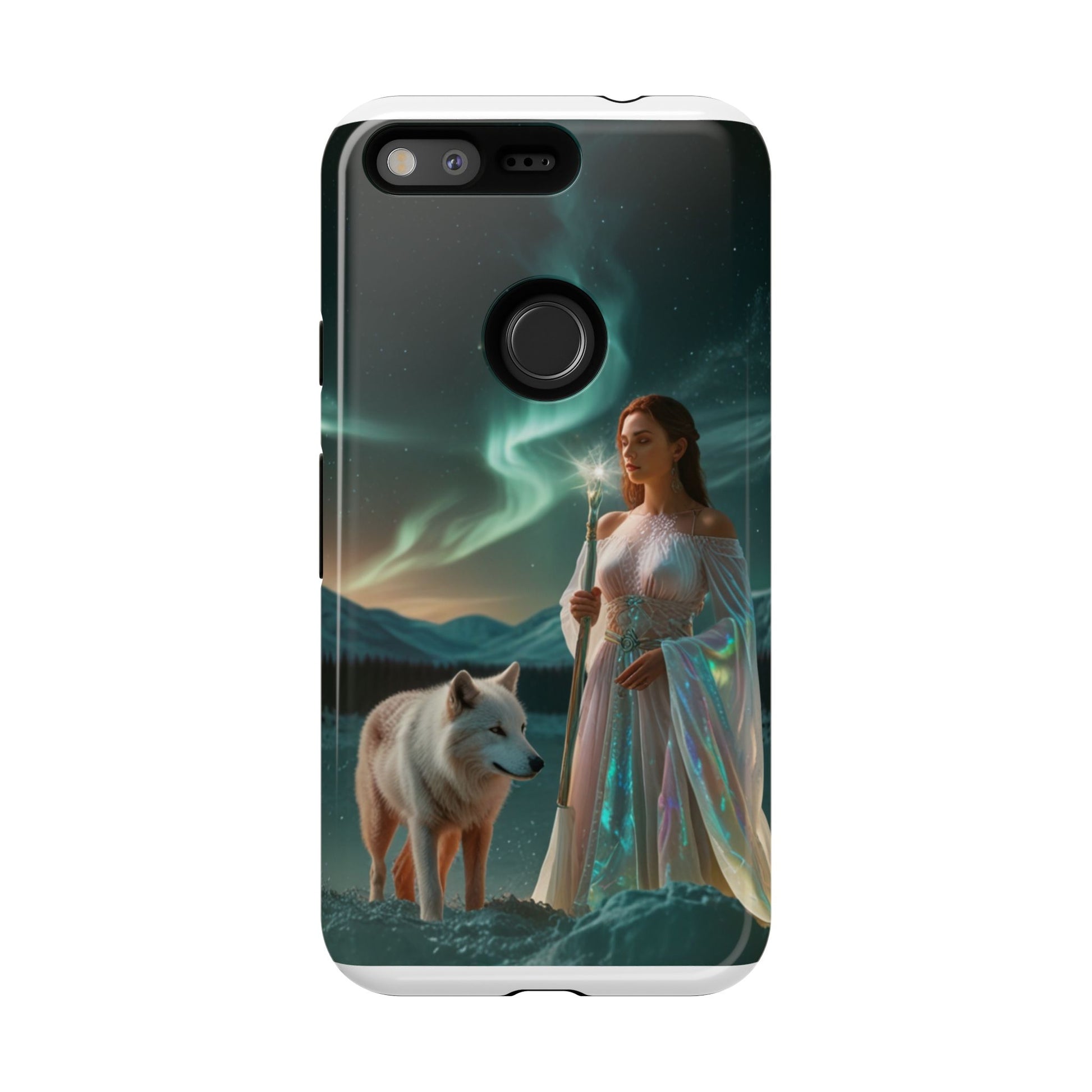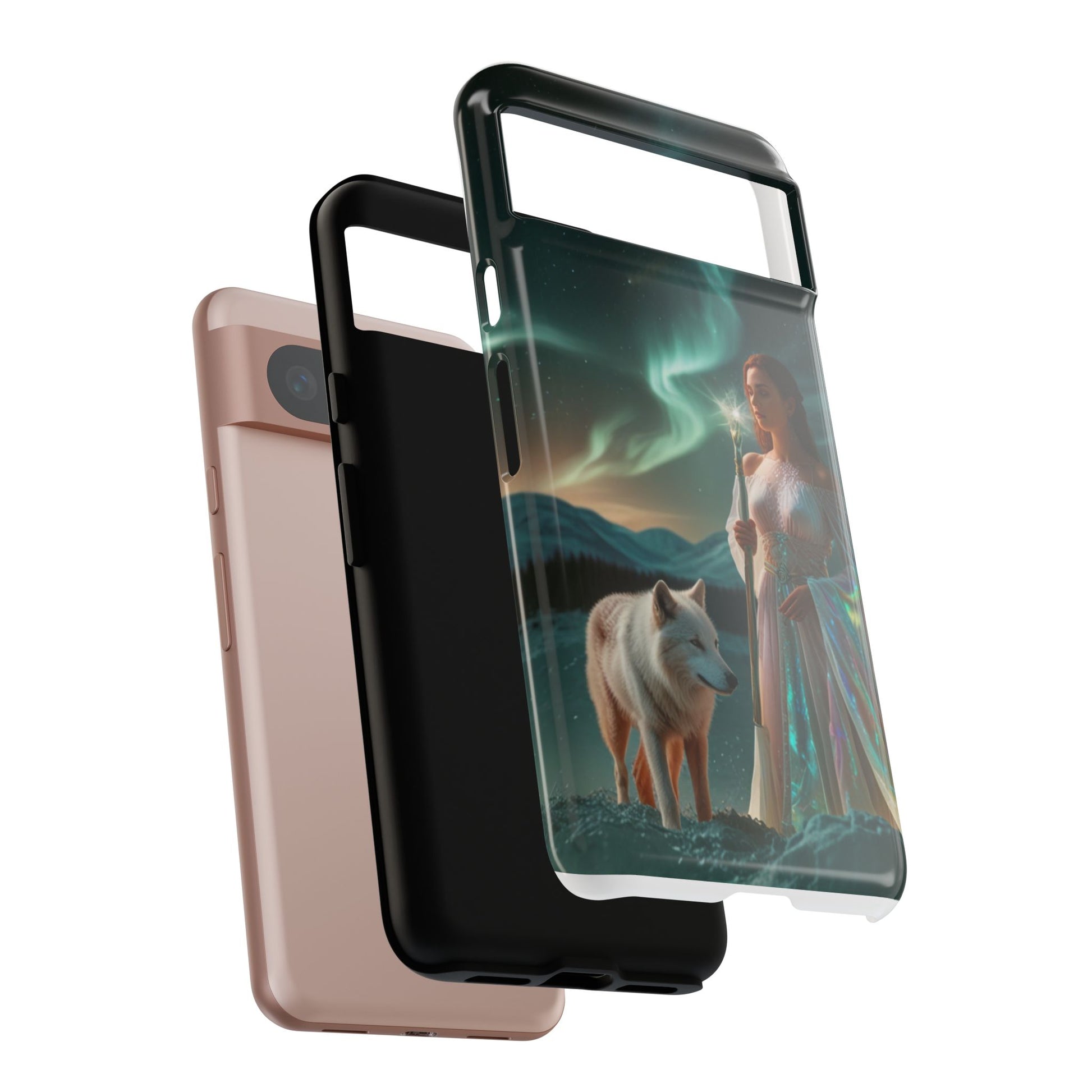Funda para teléfono Google Aurora Guardian: armadura de fantasía de mujer y lobo