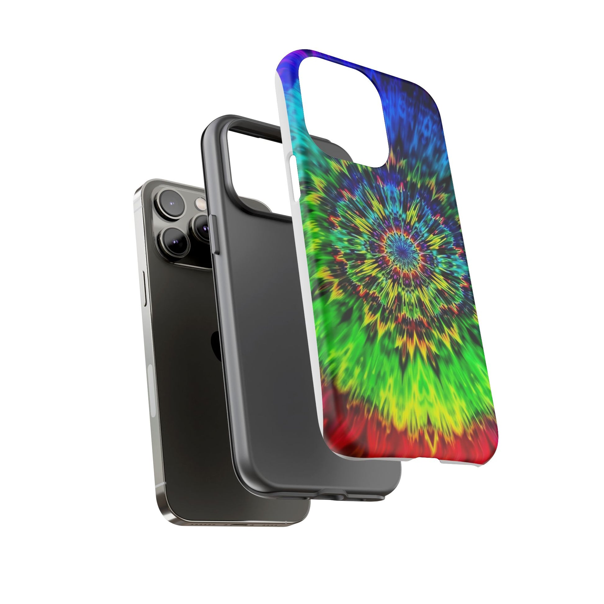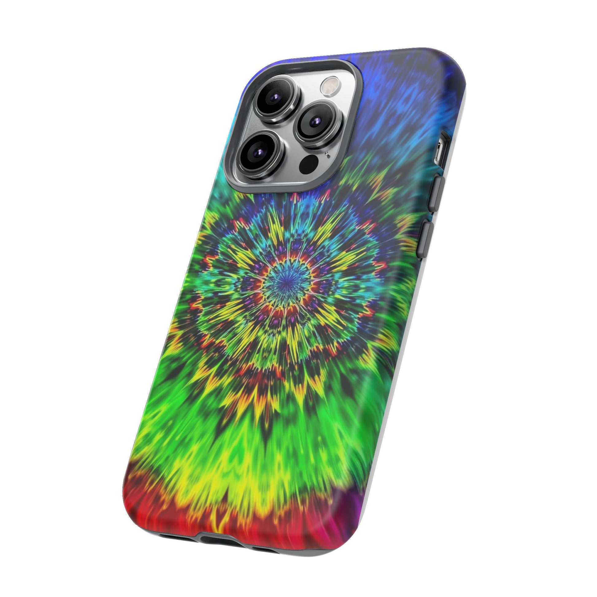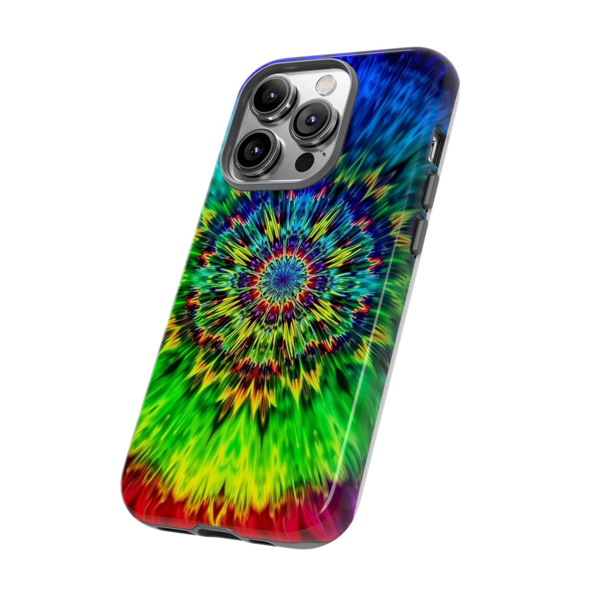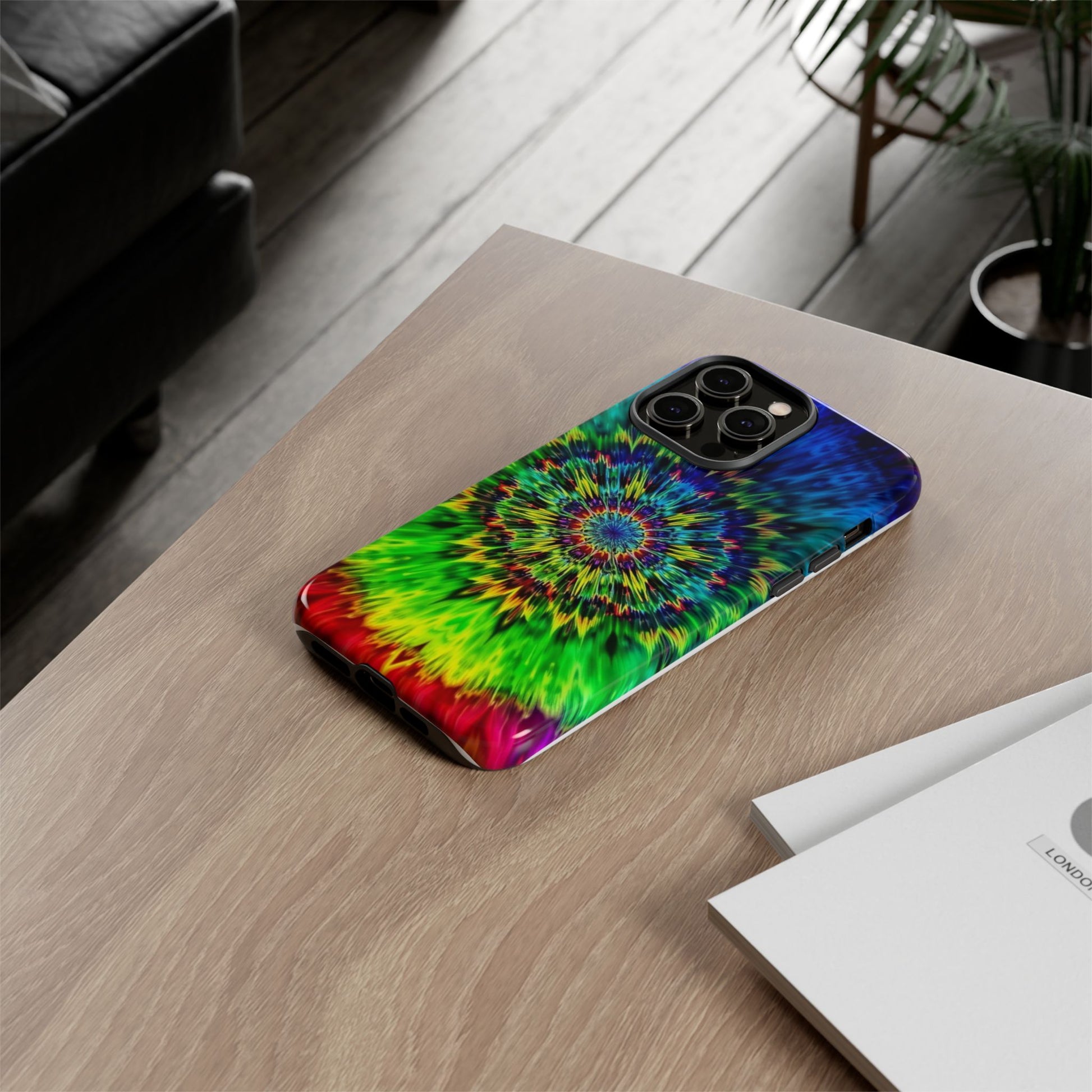 Funda resistente para teléfono con diseño de mandala psicodélico: protección vibrante con efecto tie-dye