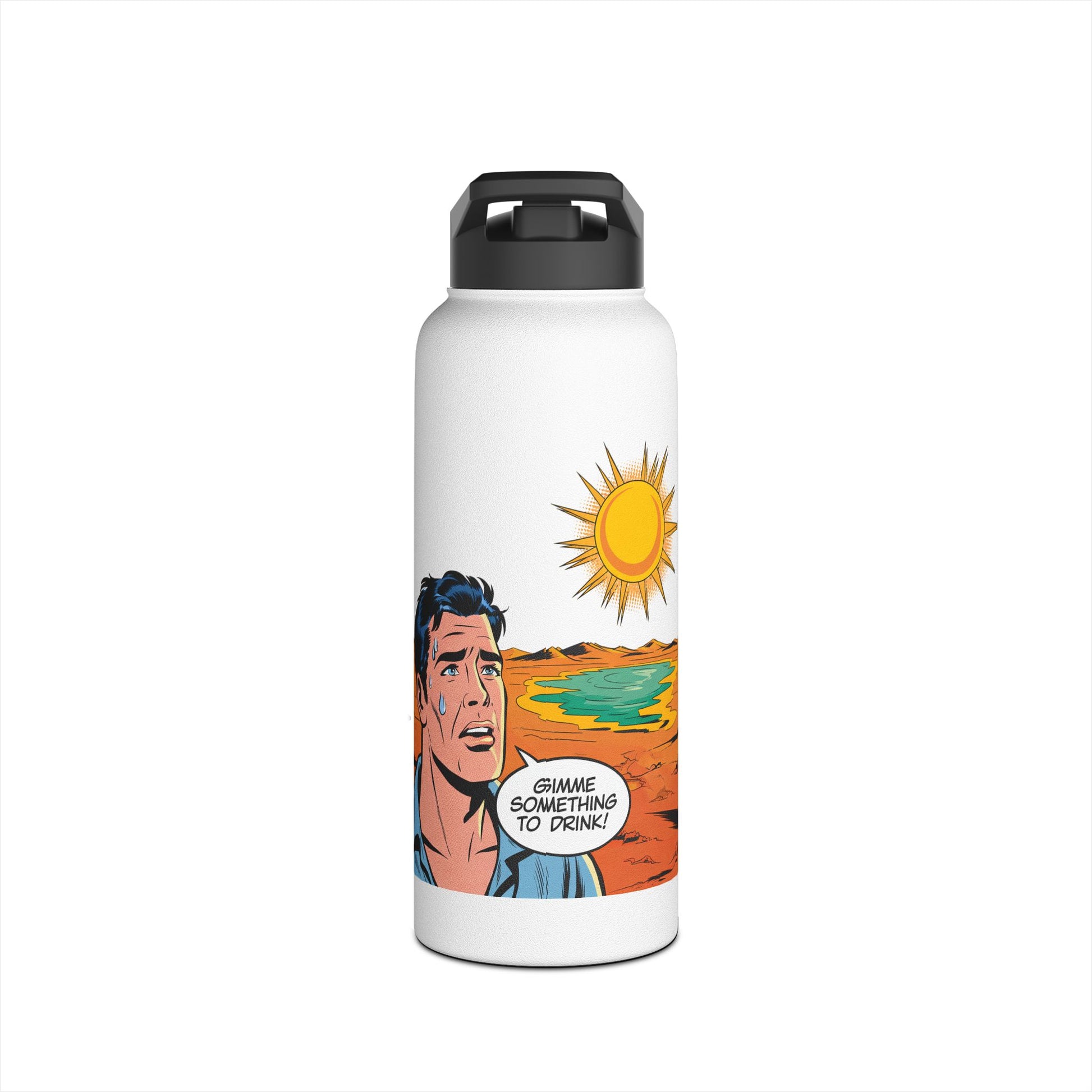 Botella de agua de acero inoxidable estilo pop art retro: "Dame algo de beber"