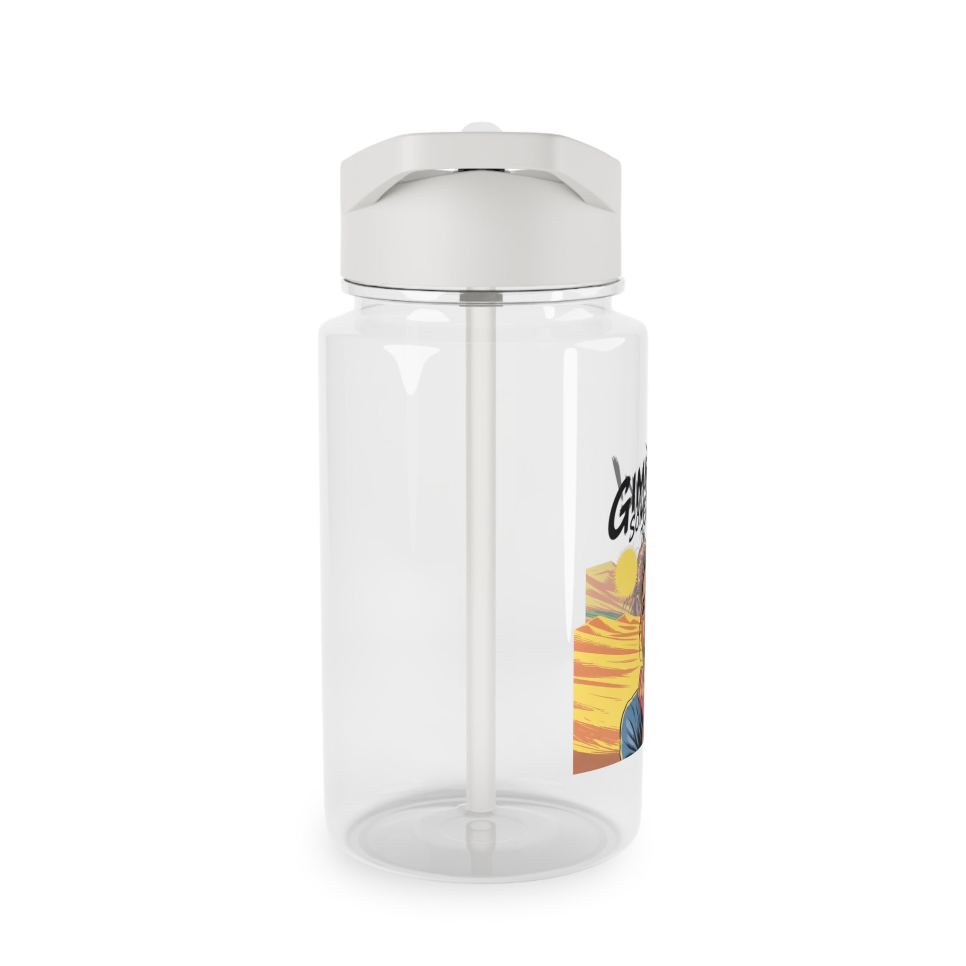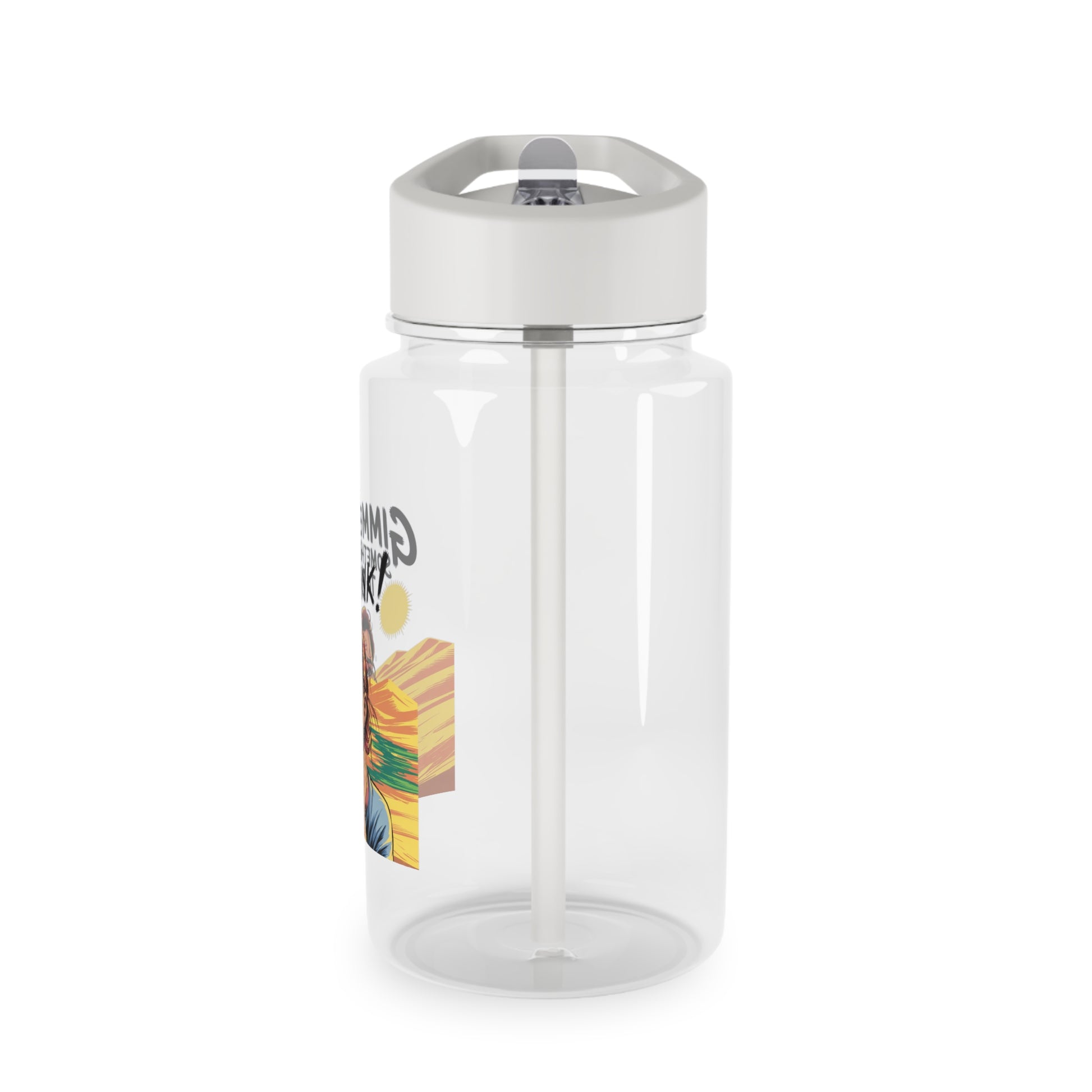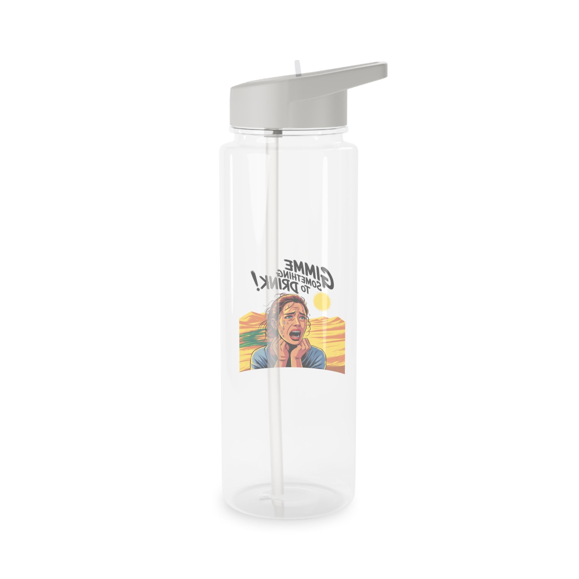 Esta botella de agua transparente de Tritan luce un diseño atrevido y divertido que ilumina tu hidratación diaria. El gráfico —una figura dramática de estilo cómic con la exclamación "¡Dame algo de beber!"— resalta sobre el cuerpo transparente, dándole personalidad a la botella y permitiéndote ver el nivel de bebida. La tapa gris de rosca con pajita plegable evita derrames y facilita beber en cualquier lugar. Su resistente construcción de Tritan sin BPA resiste el uso diario y los viajes; las opciones de personalización te permiten personalizarla o adaptarla a tus gustos, ya sea para llenarla en tu escritorio, salir de excursión o prepararla para una excursión.
