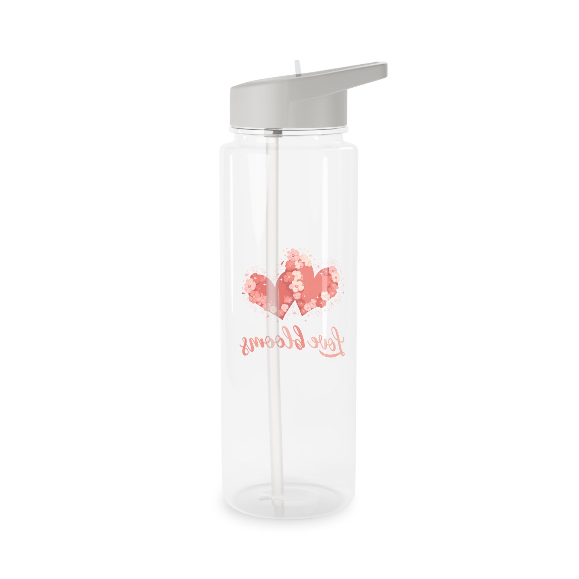 Esta botella de agua transparente de Tritan aporta un toque floral y delicado a tu hidratación diaria. Su diseño presenta dos corazones de acuarela formados por pequeñas flores y la delicada inscripción "Love blooms", que crea una atmósfera tranquila y estimulante. Ligera y transparente, la botella luce la obra de arte, mientras que su tapa gris antiderrames con pajita plegable transparente facilita beber sobre la marcha de forma fácil y ordenada. Su resistente fabricación en Tritan, libre de BPA, resiste los olores y la opacidad, manteniendo los colores brillantes y la botella fresca. Disponible en dos tamaños y personalizable, cabe en bolsas de gimnasio, portabicicletas y rincones de escritorio: un recordatorio sencillo y encantador para refrescarte.