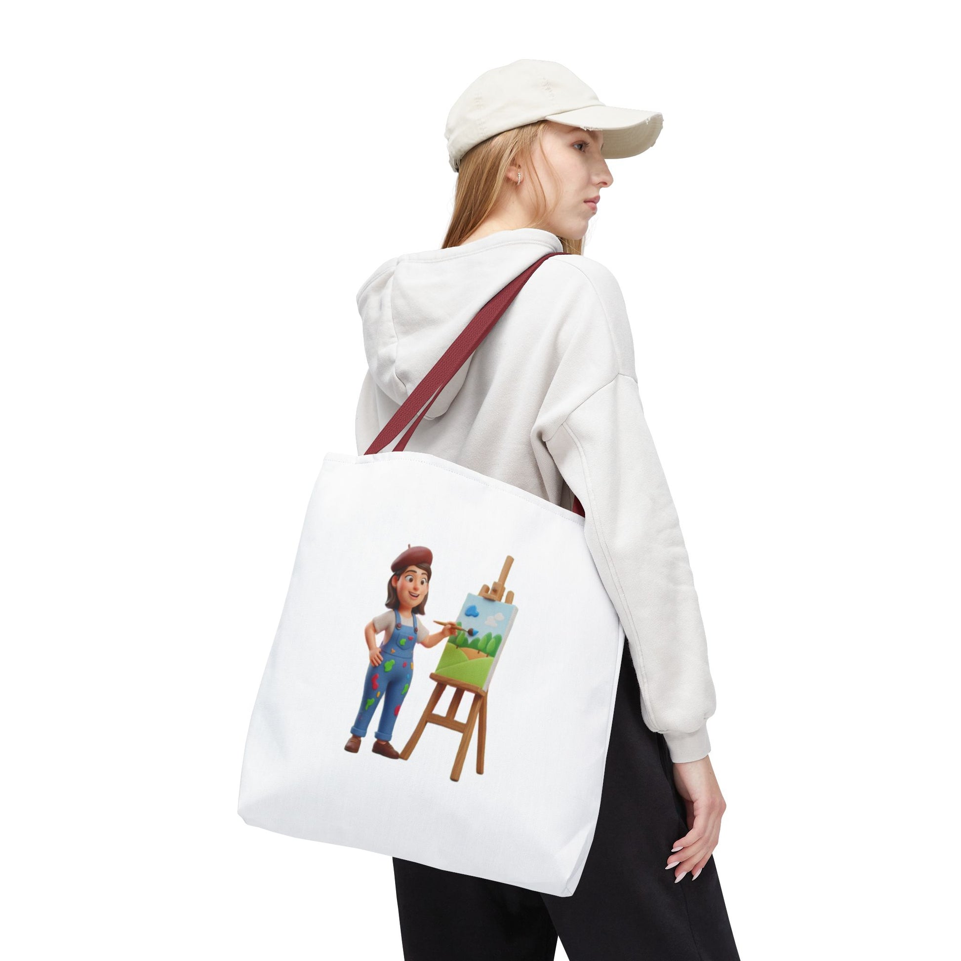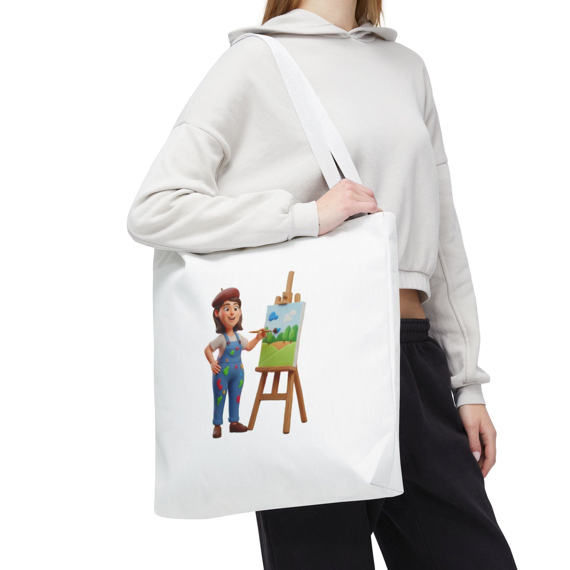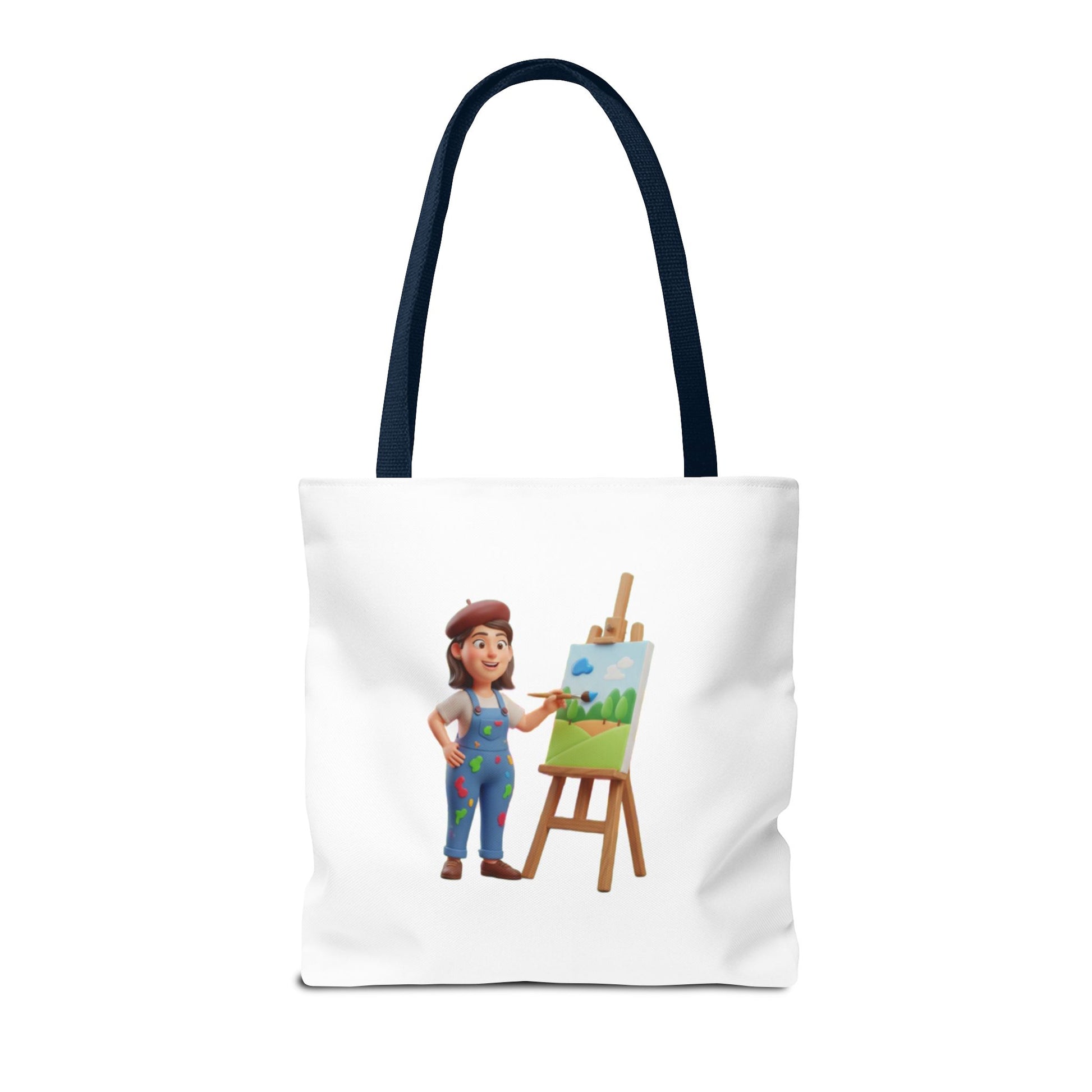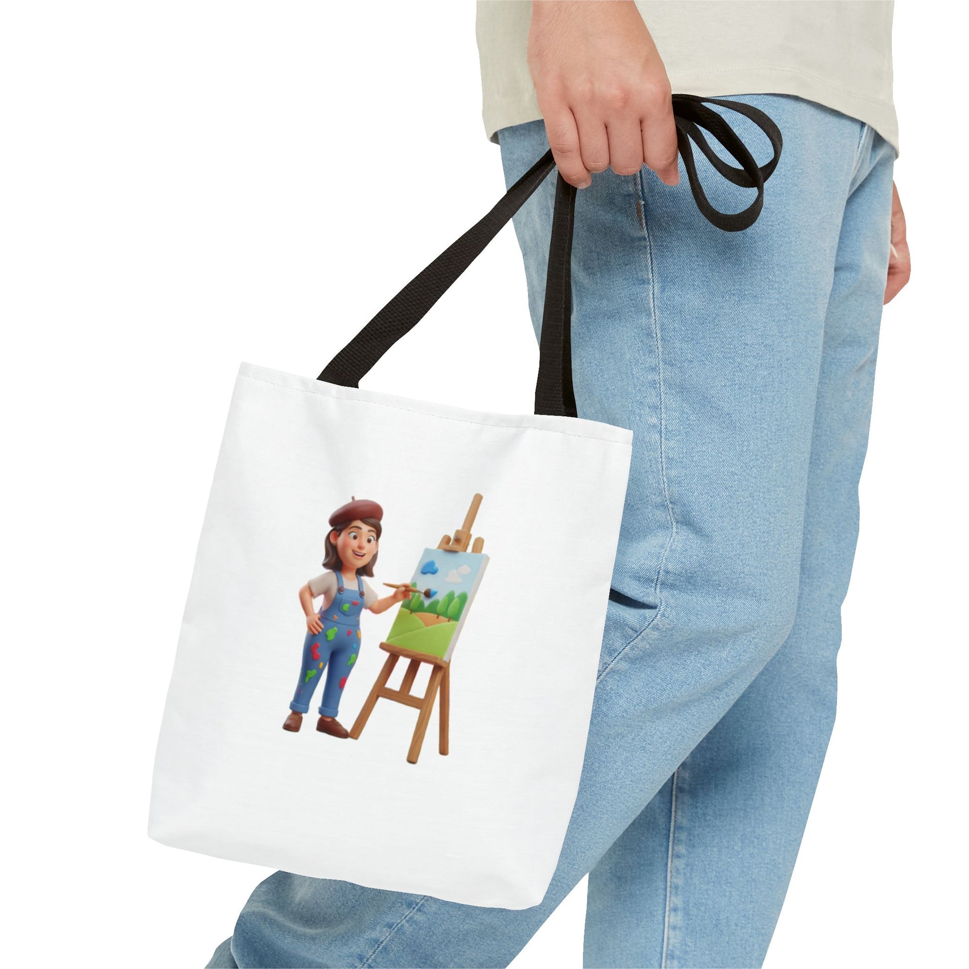 Artist Tote Bag — Painter with Easel Illustrated AOP Tote