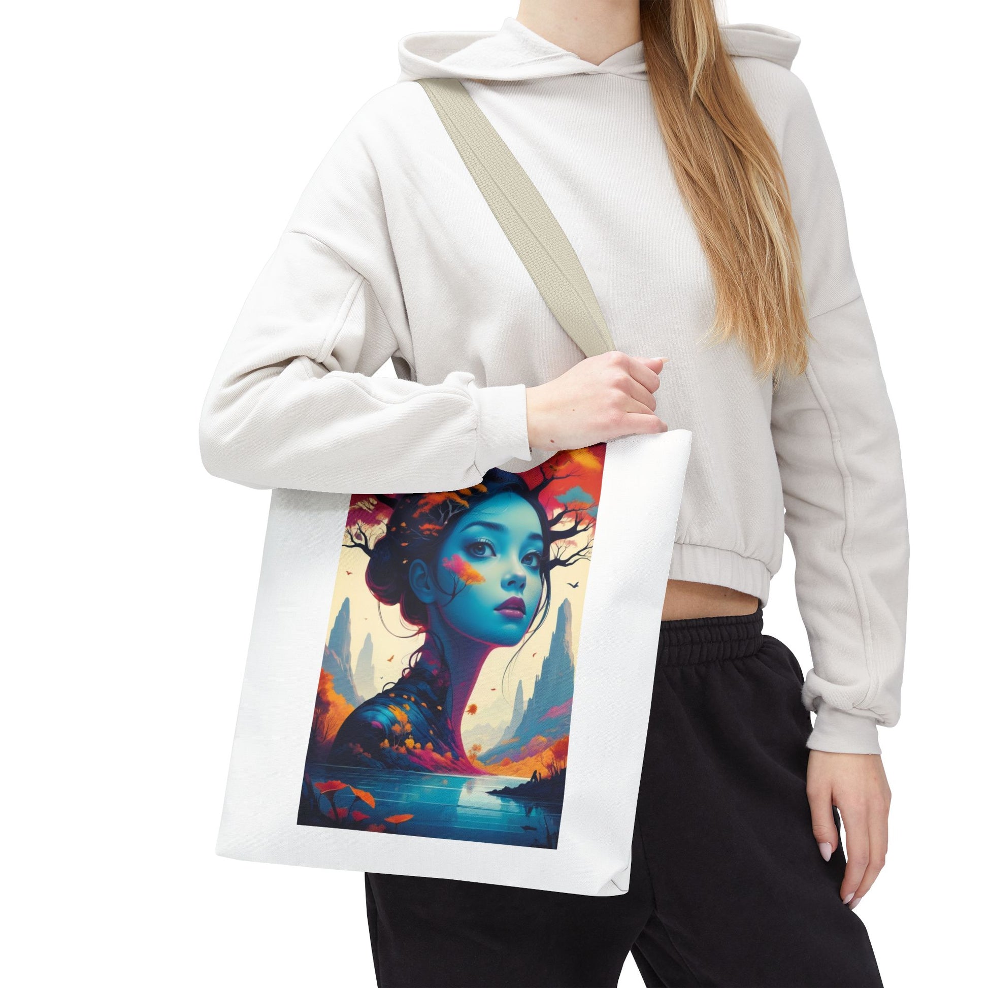 Artistic Blue Forest Maiden Tote Bag - Surreal Portrait All-Over Print