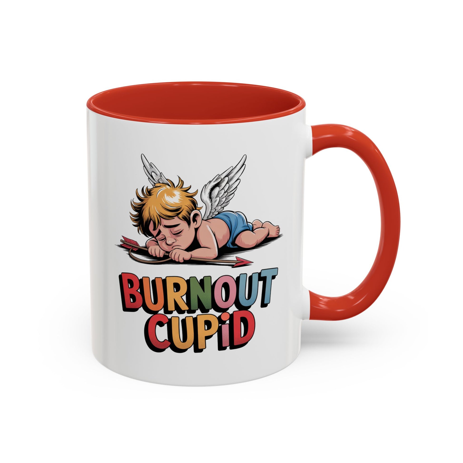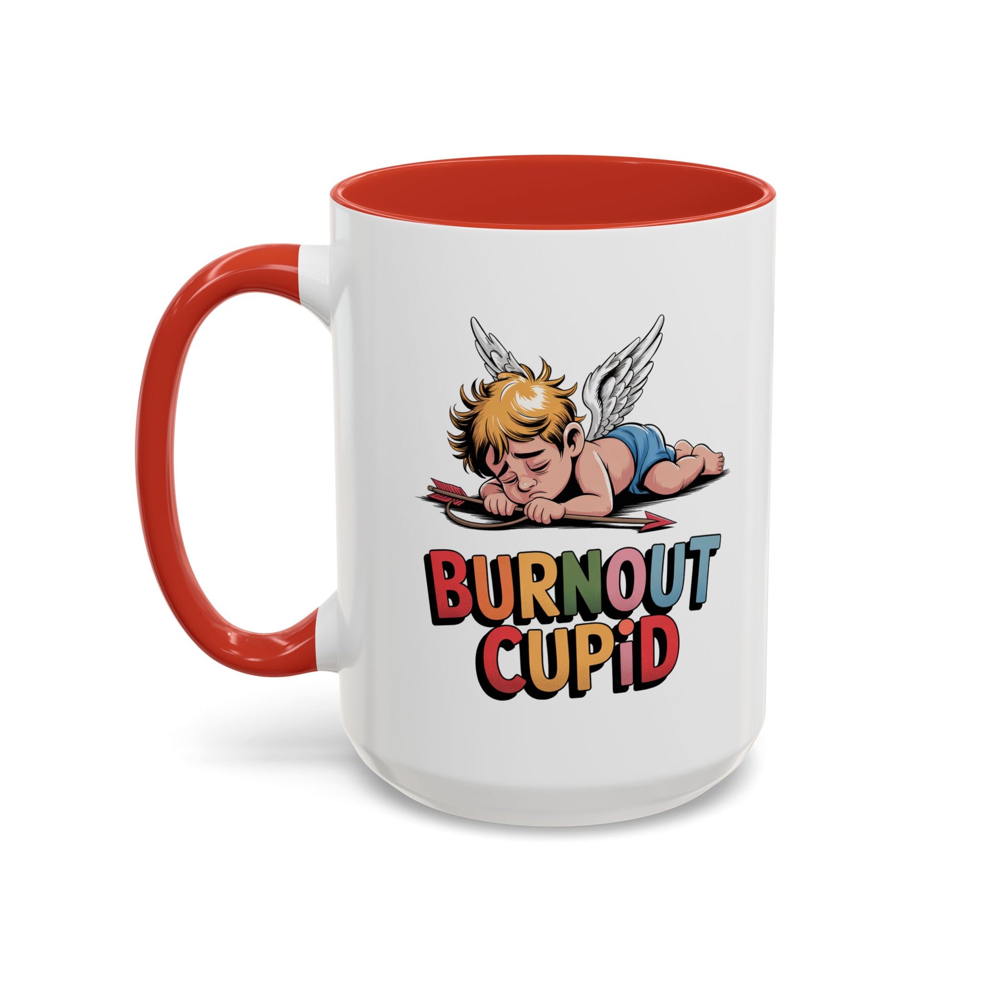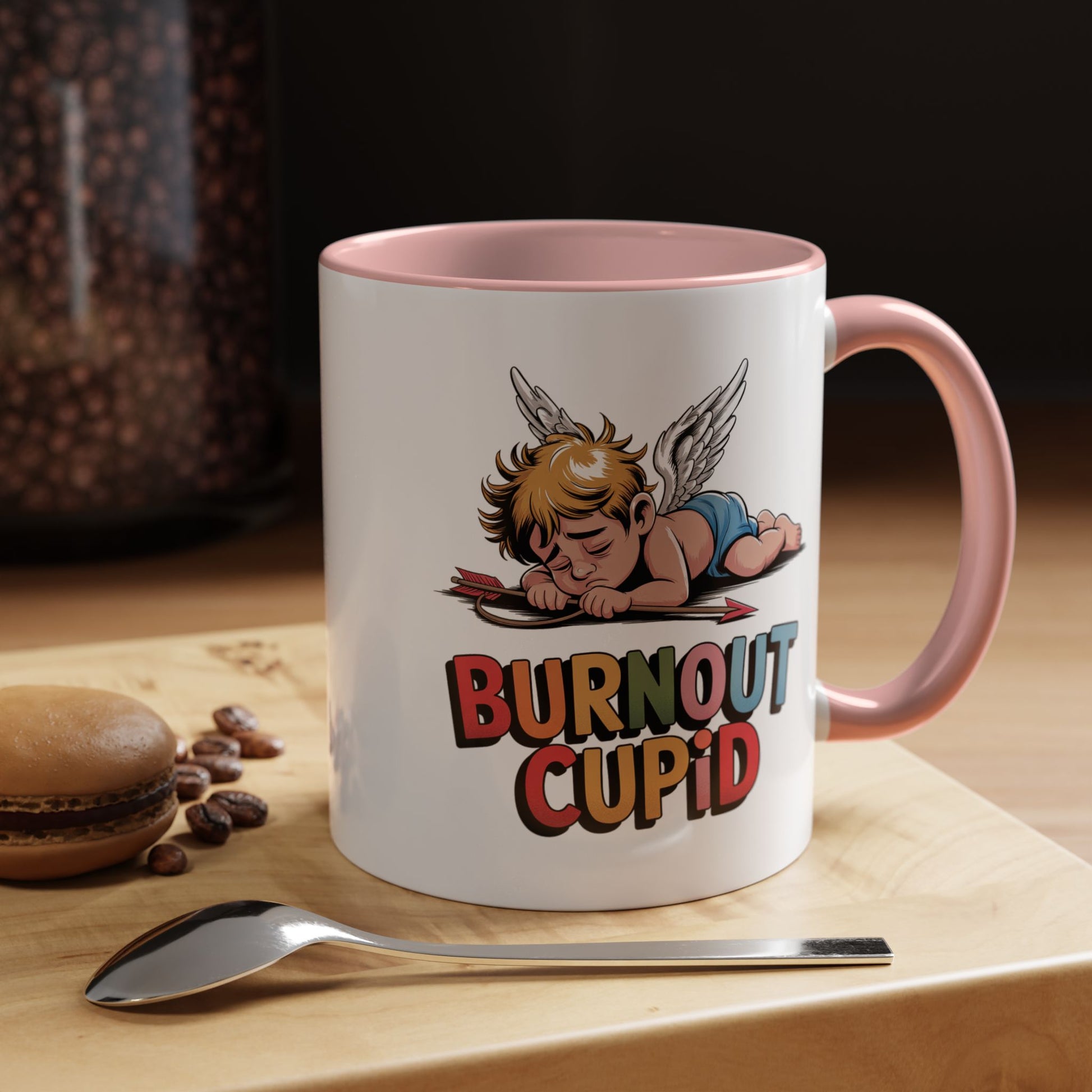 Burnout Cupid Coffee Mug — Cute Tired Cupid Accent Mug (11/15 oz)