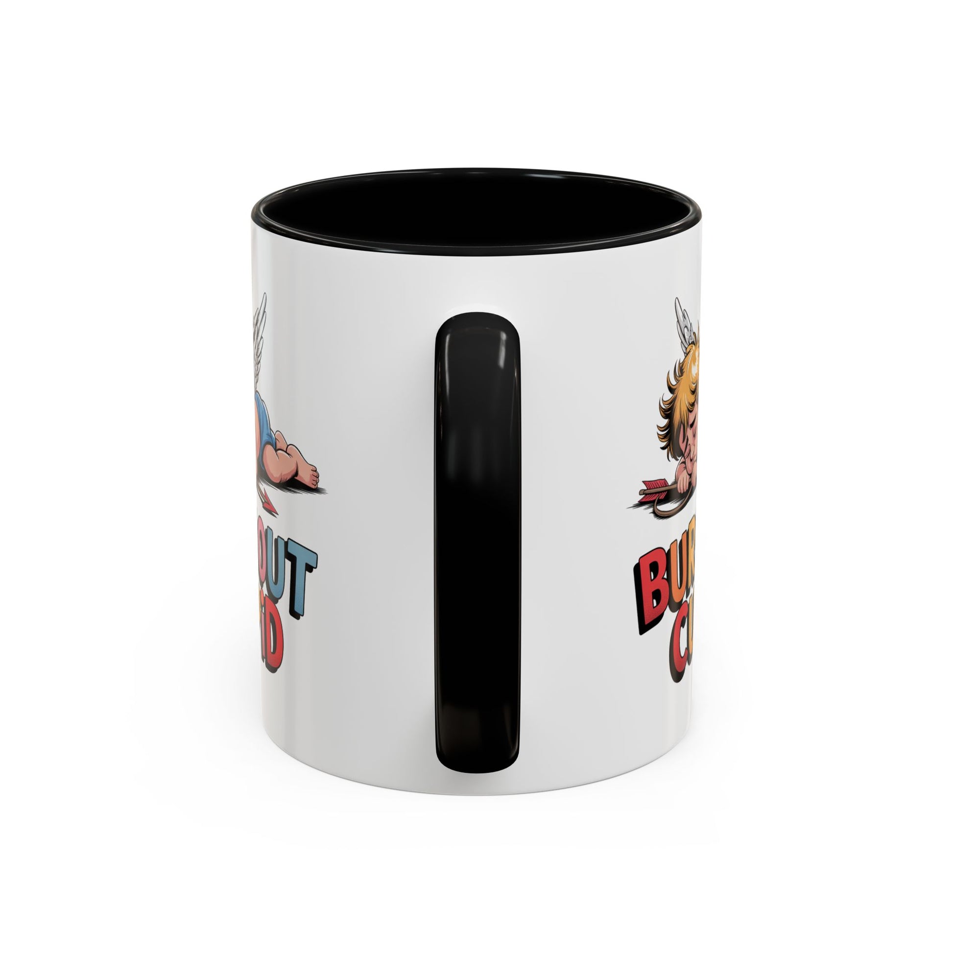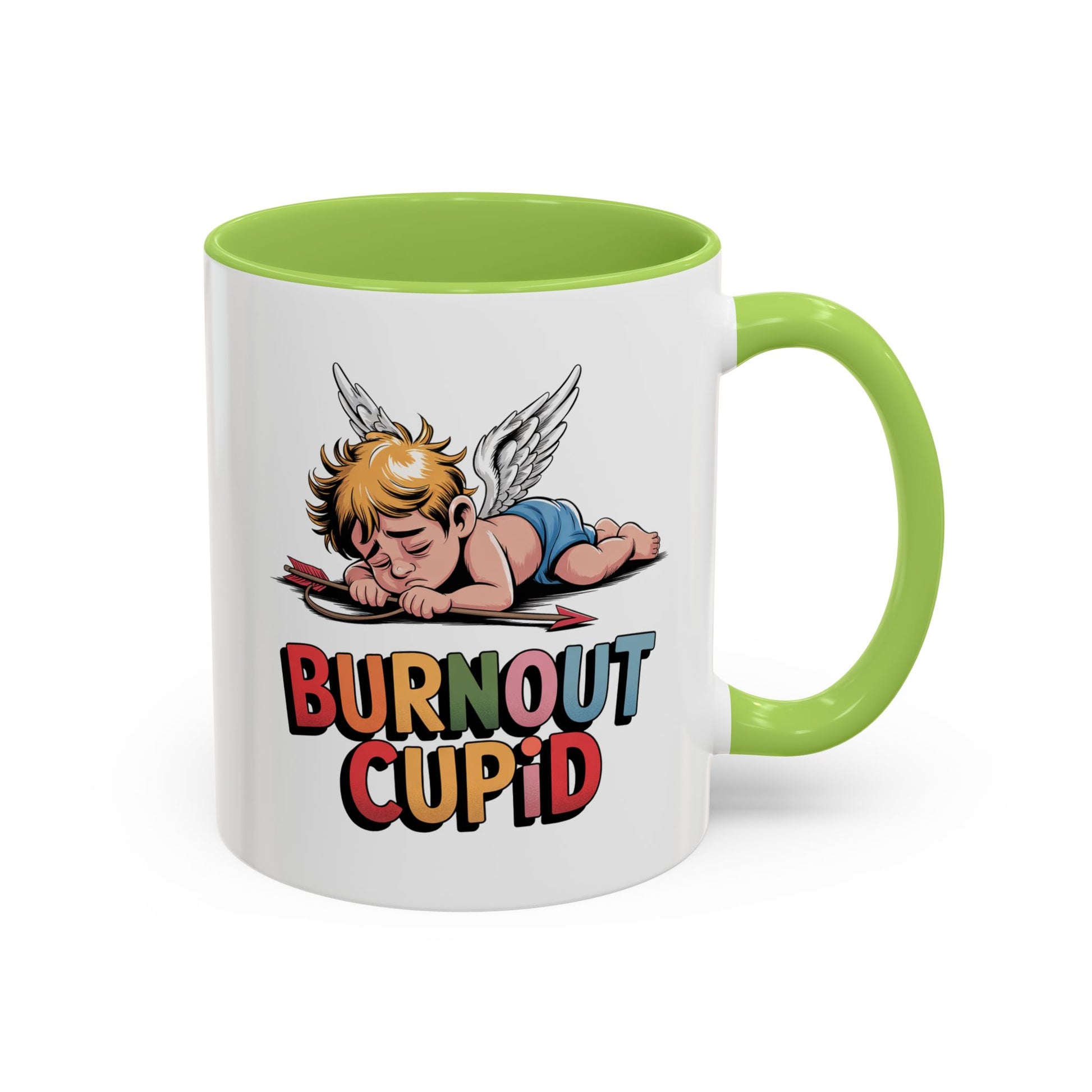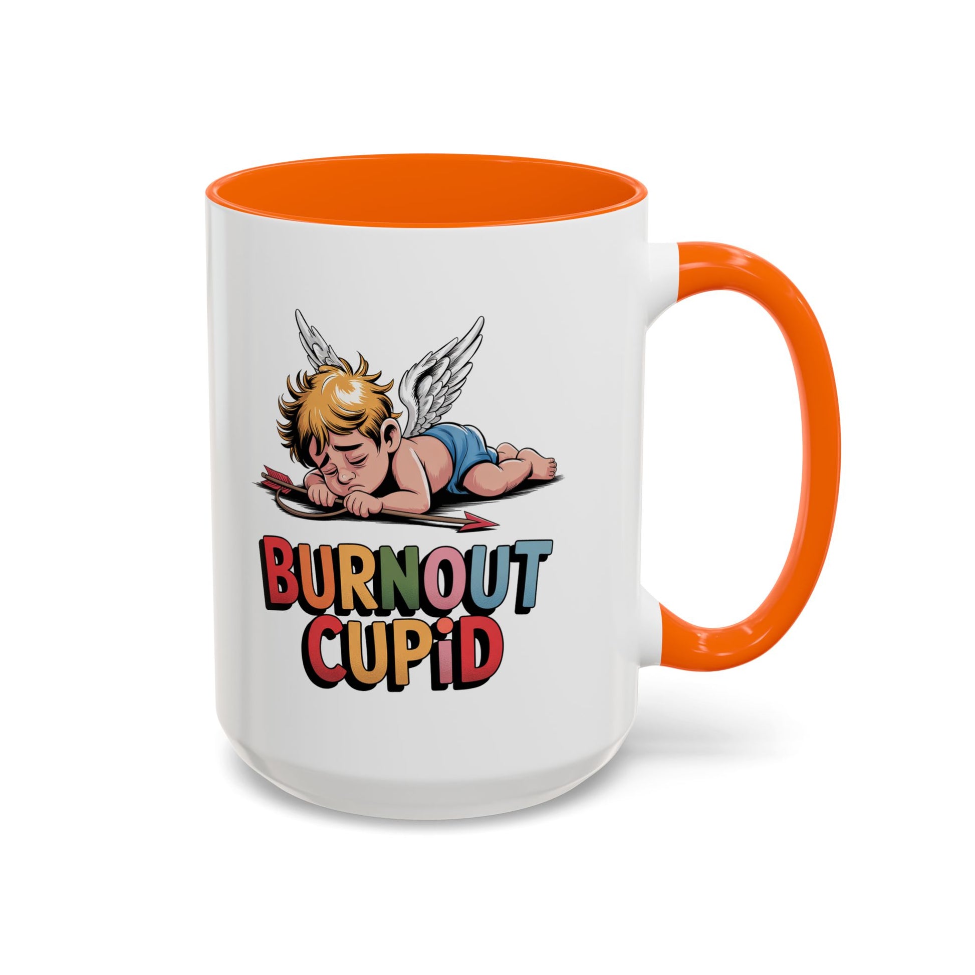 Burnout Cupid Coffee Mug — Cute Tired Cupid Accent Mug (11/15 oz)