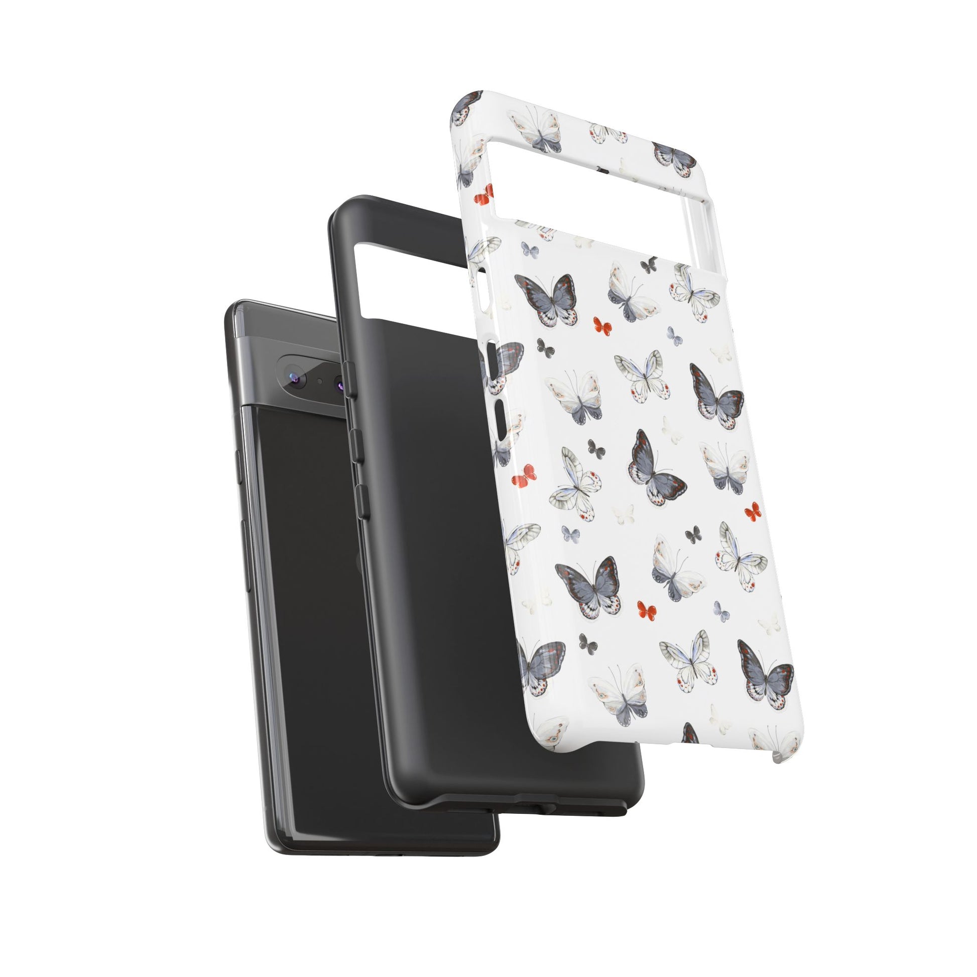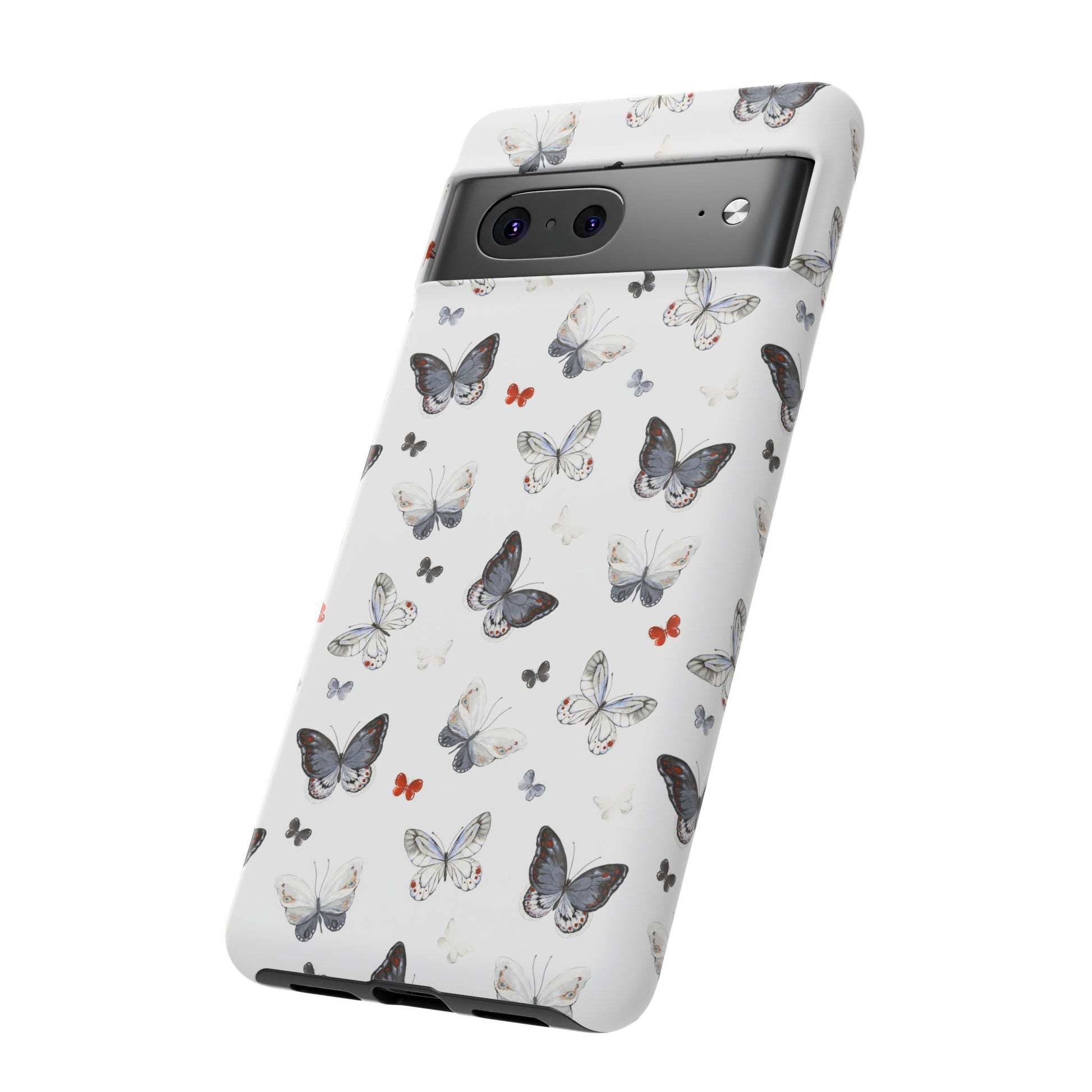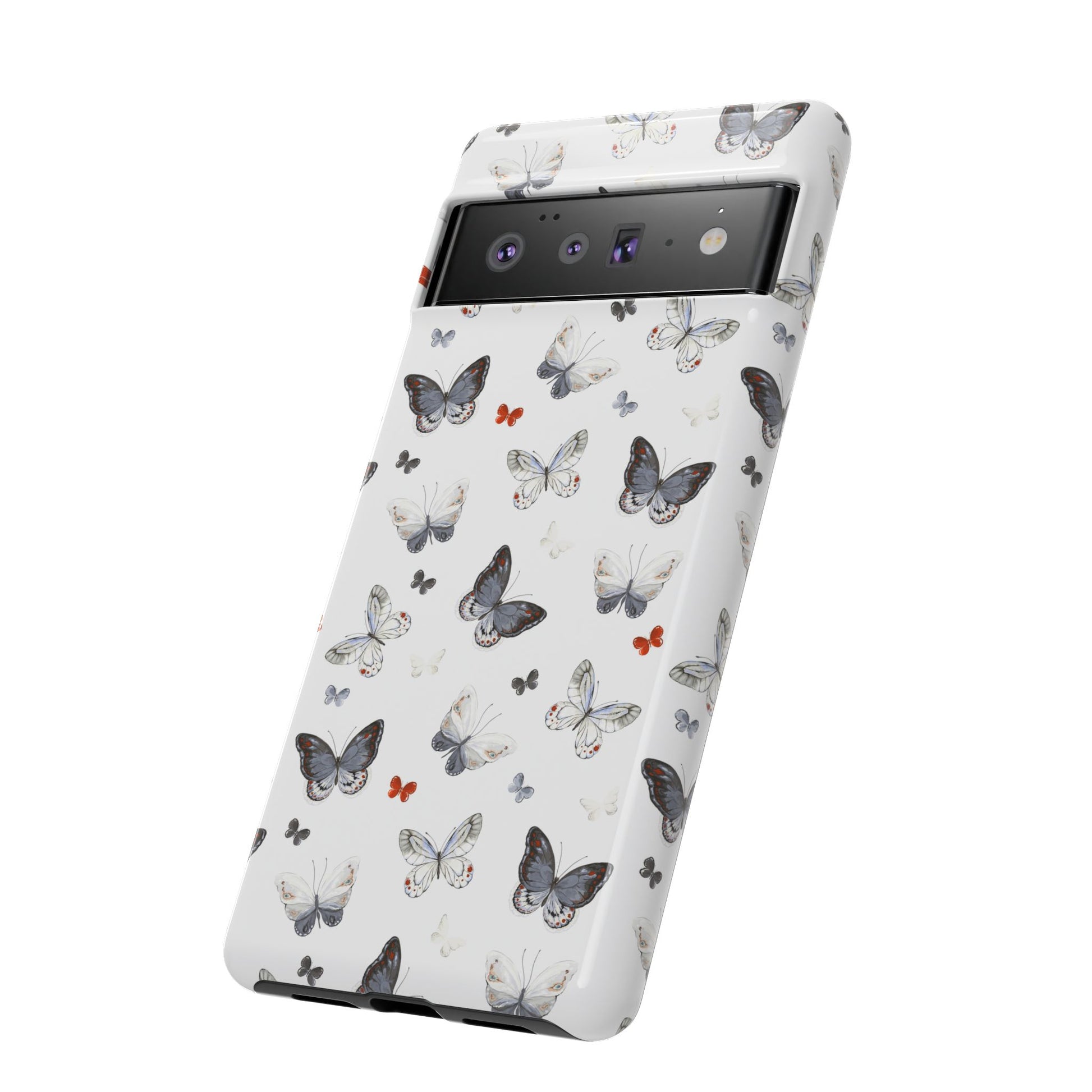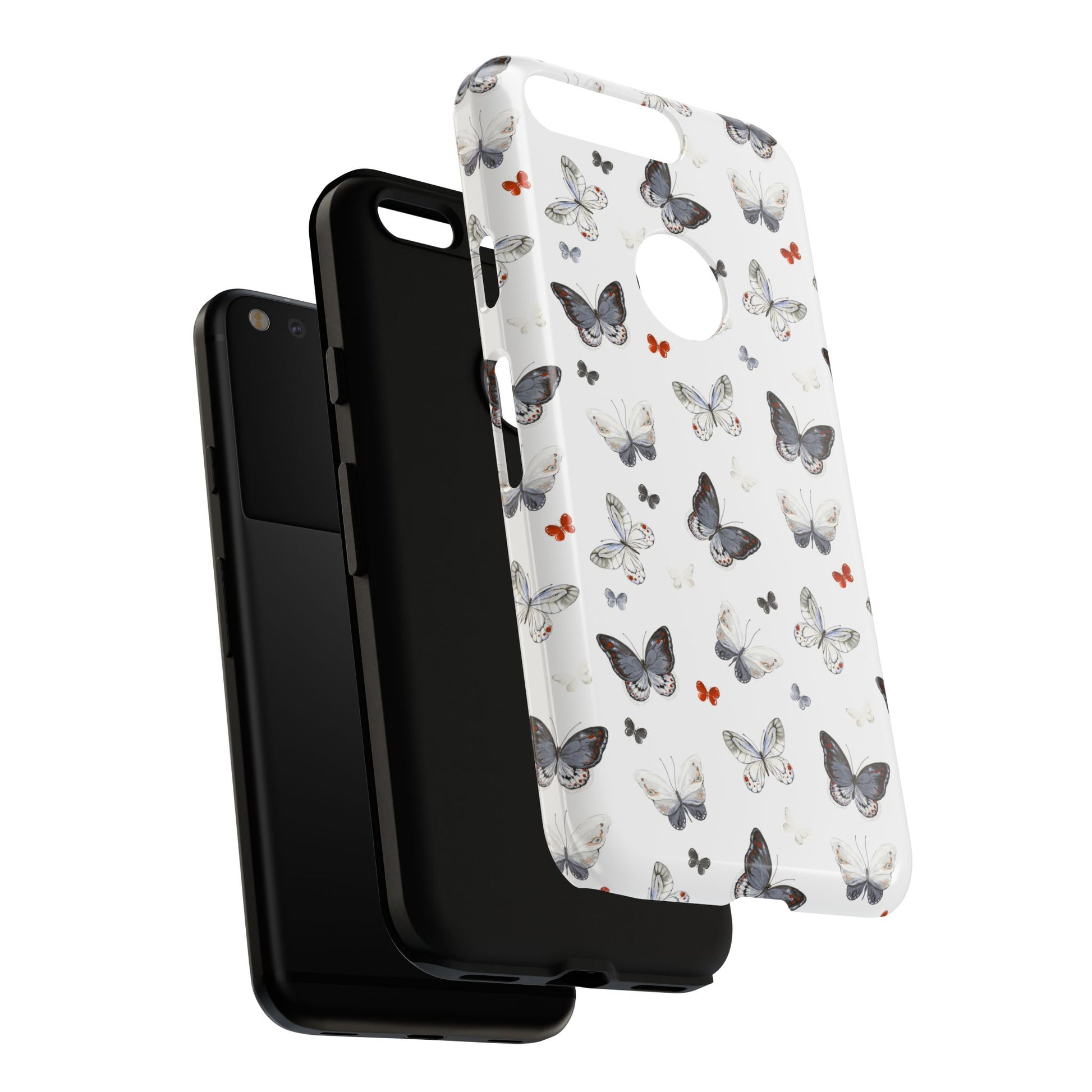 Google Butterfly Pattern Tough Phone Case — White Floral Protective Cover