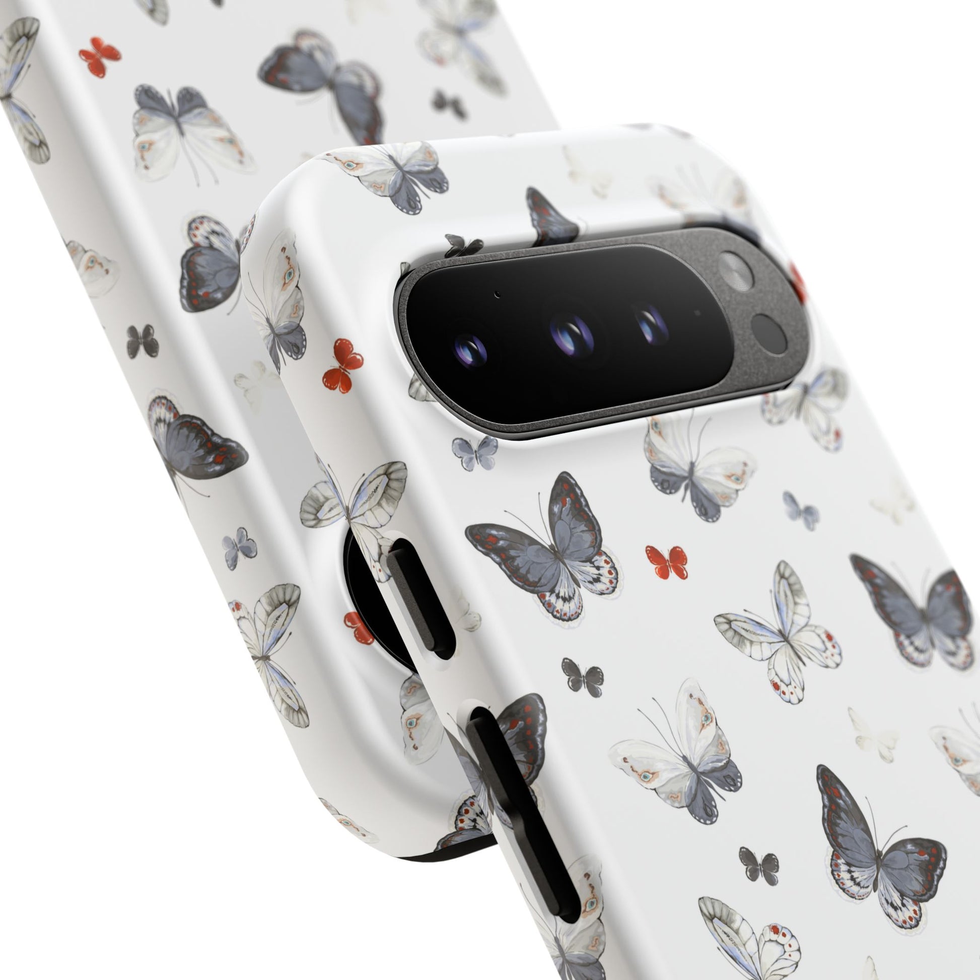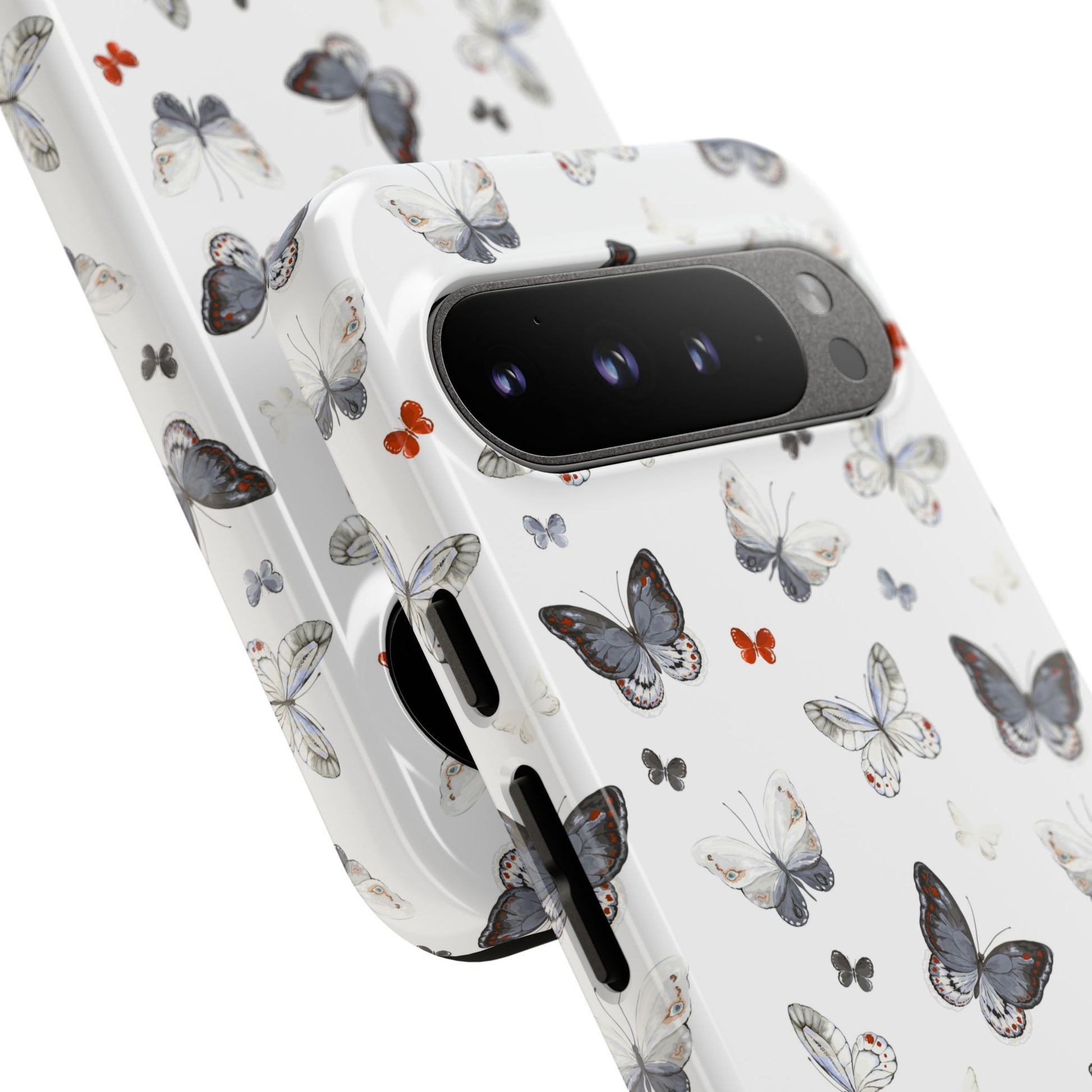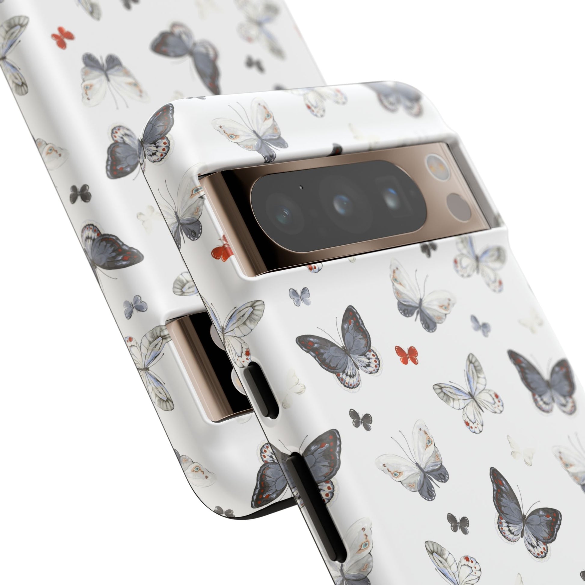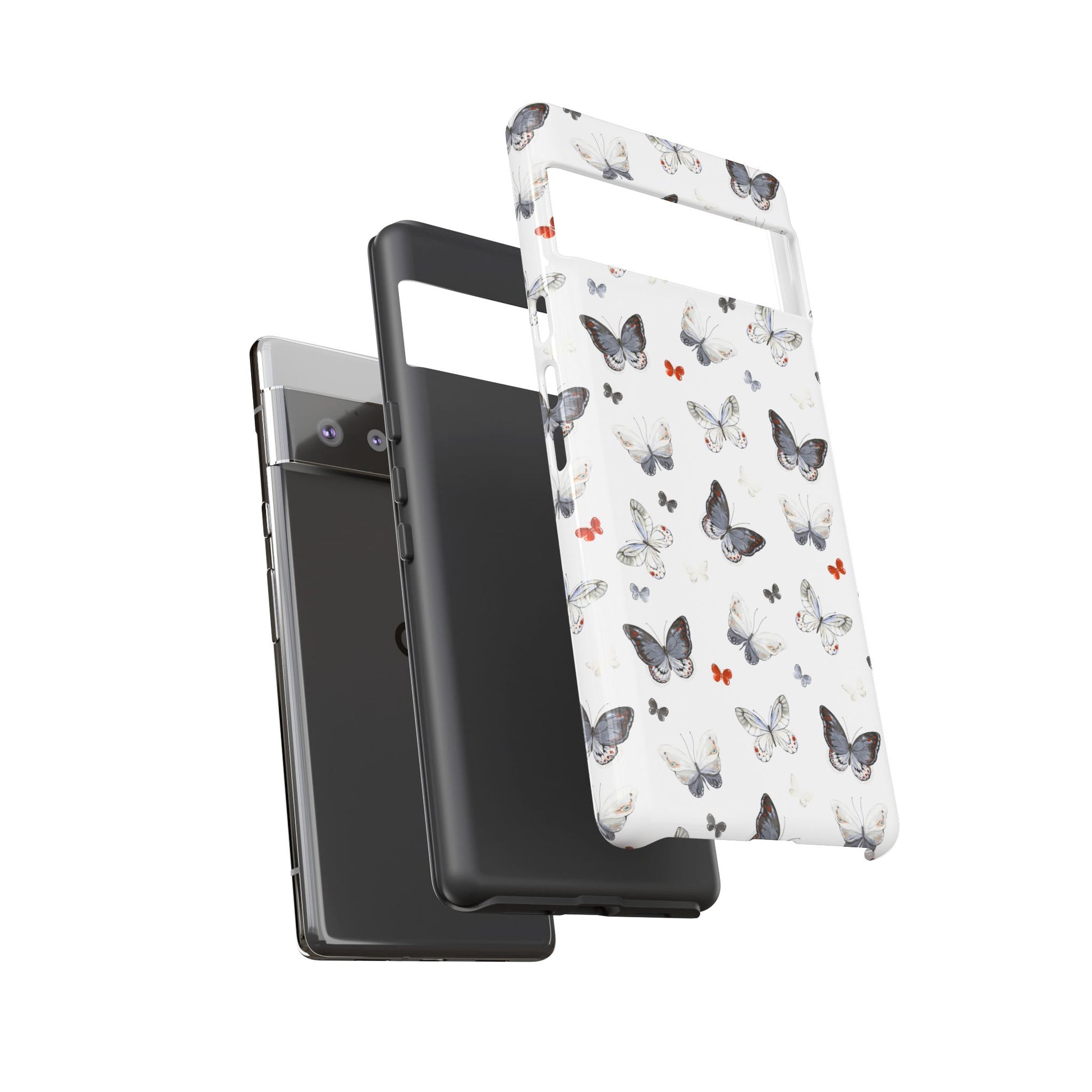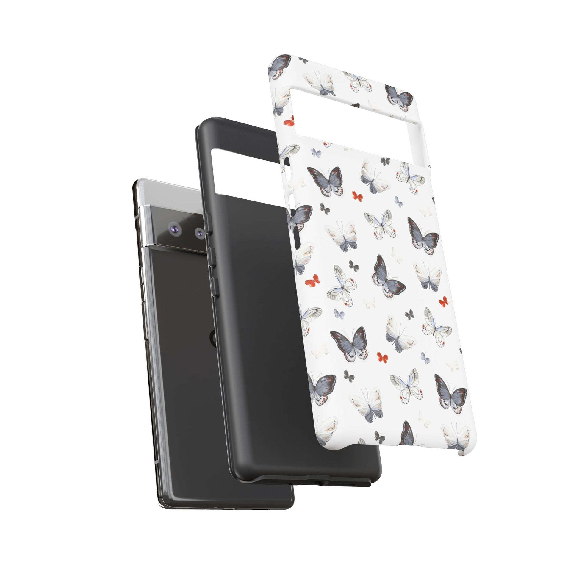 Google Butterfly Pattern Tough Phone Case — White Floral Protective Cover