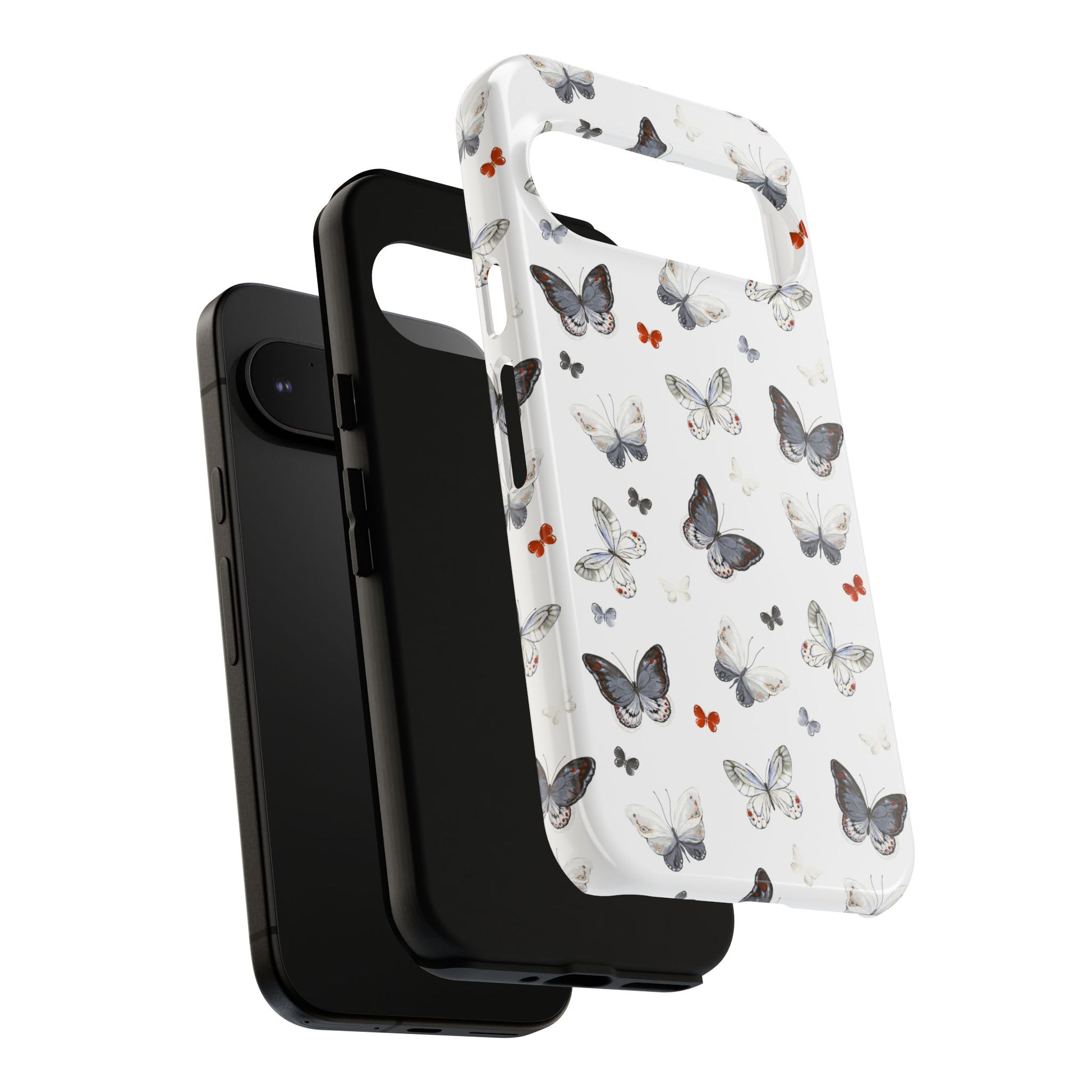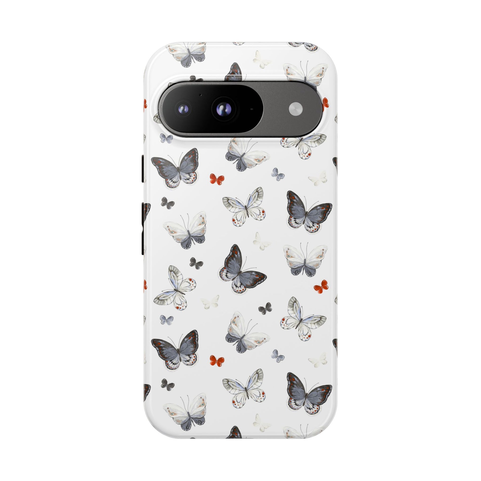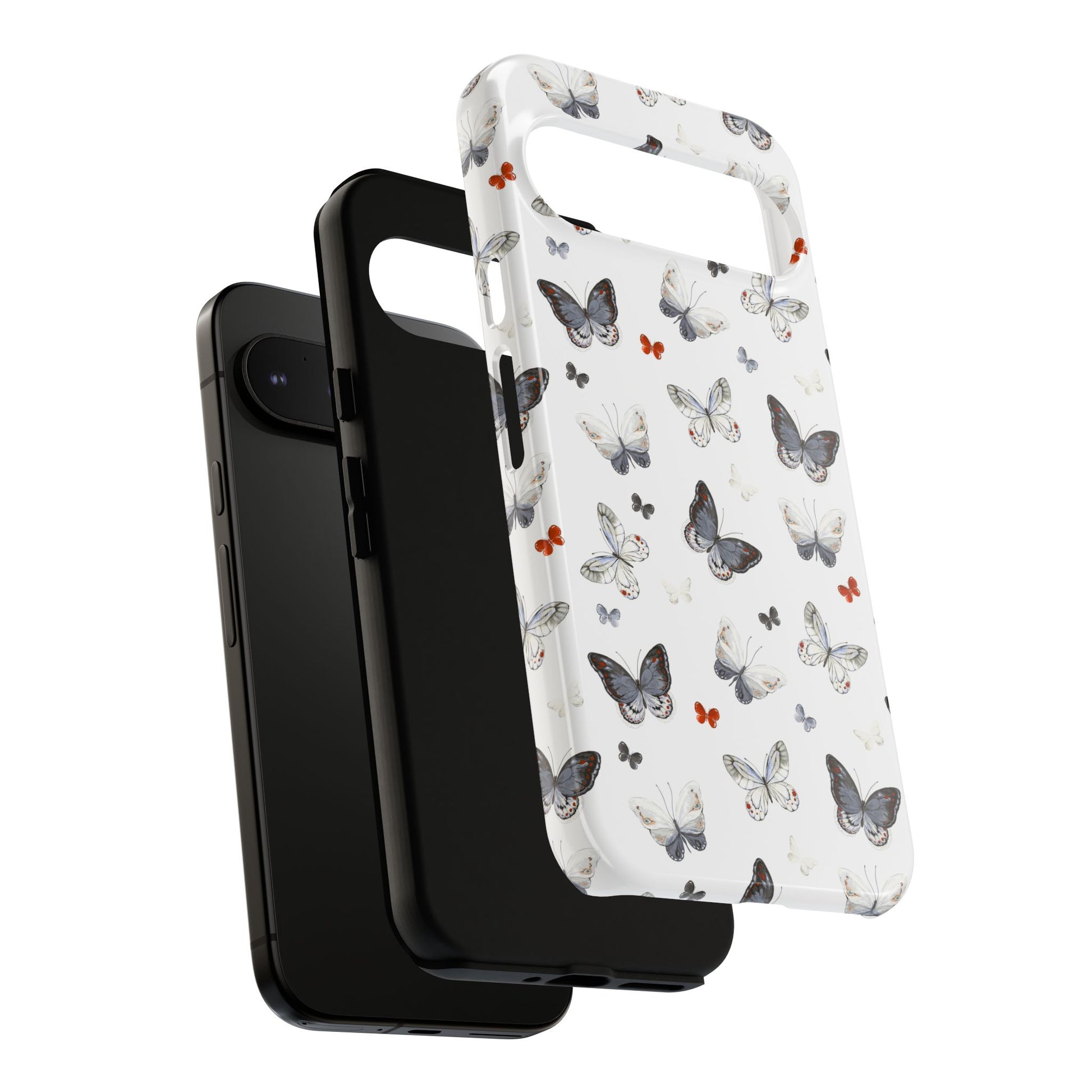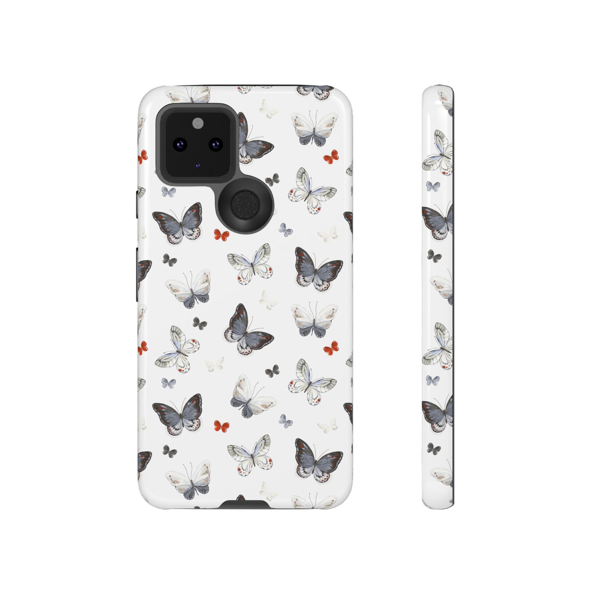 Google Butterfly Pattern Tough Phone Case — White Floral Protective Cover