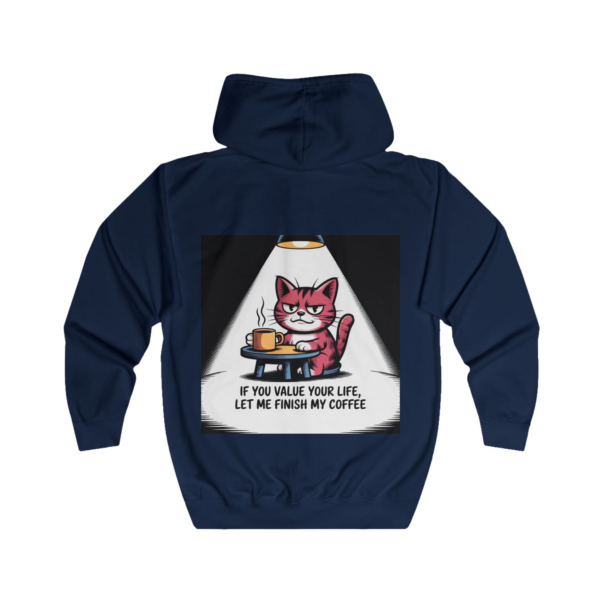 Cat Coffee Hoodie — "If You Value Your Life, Let Me Finish My Coffee" Zip-Up