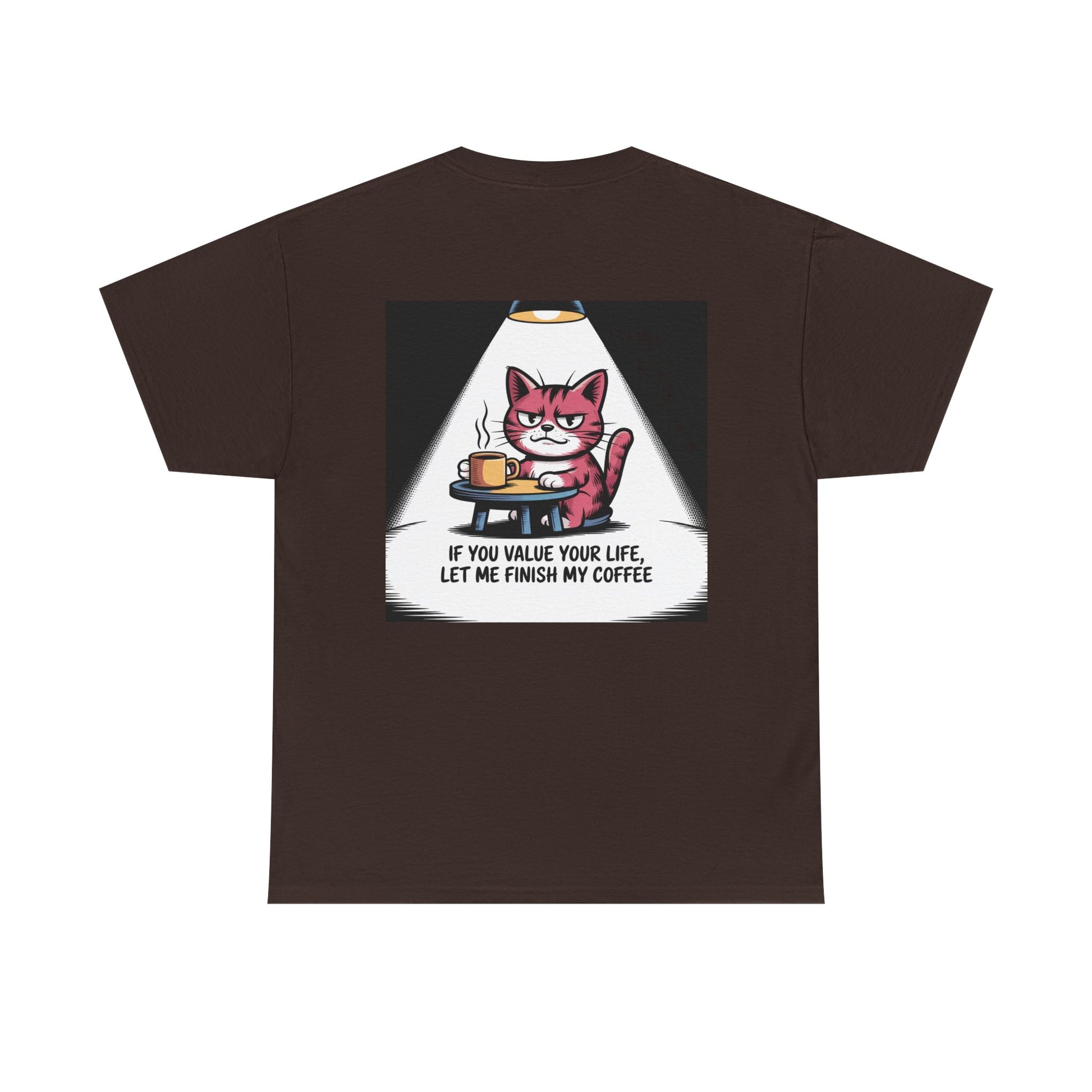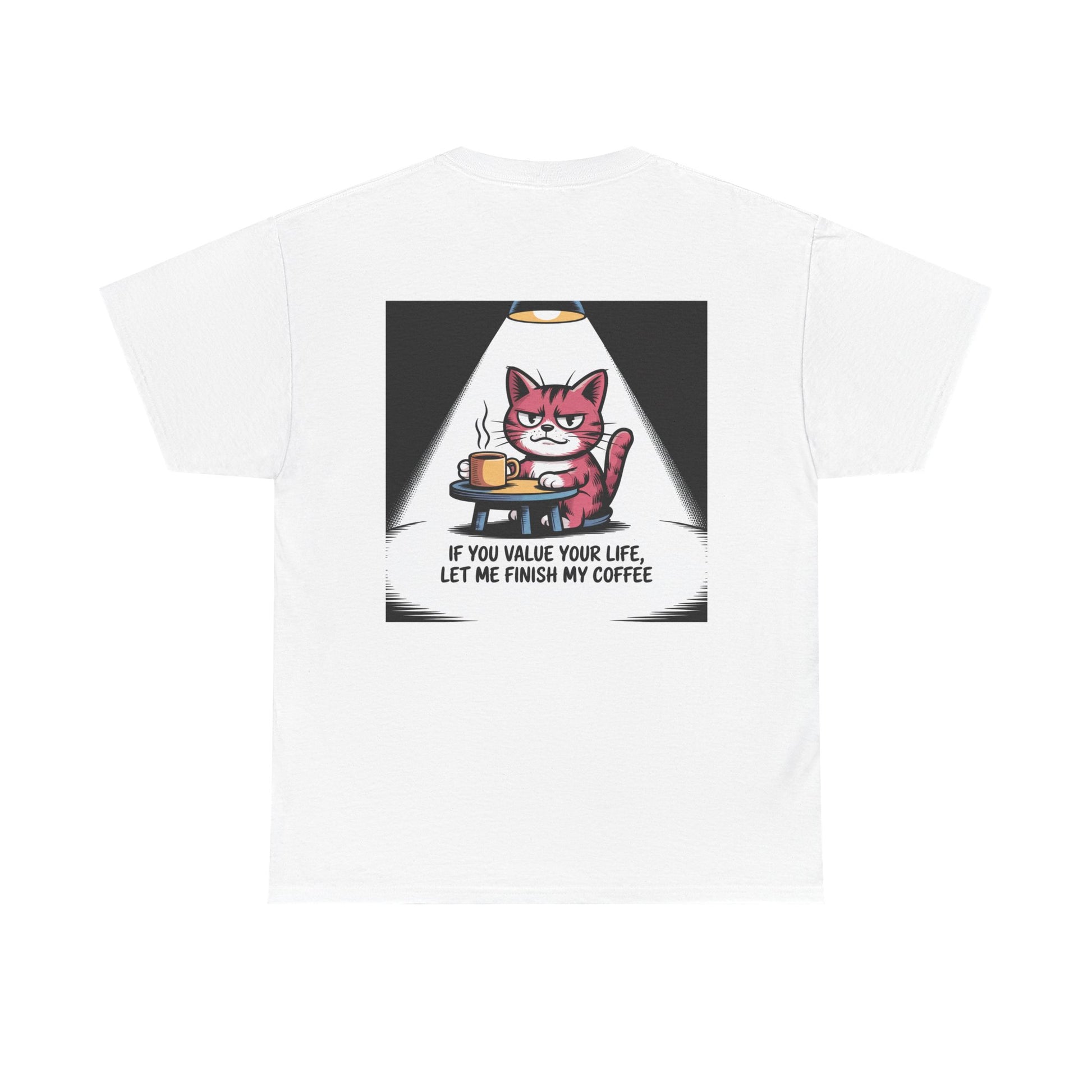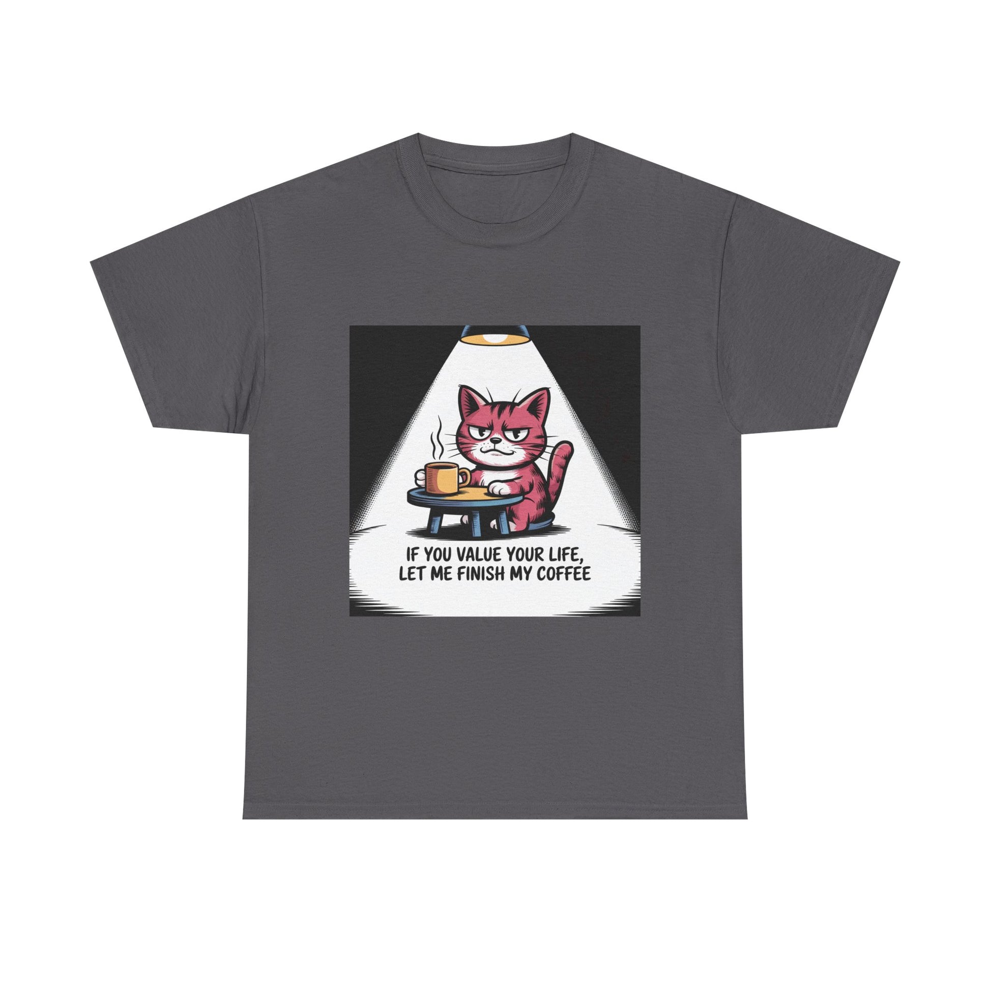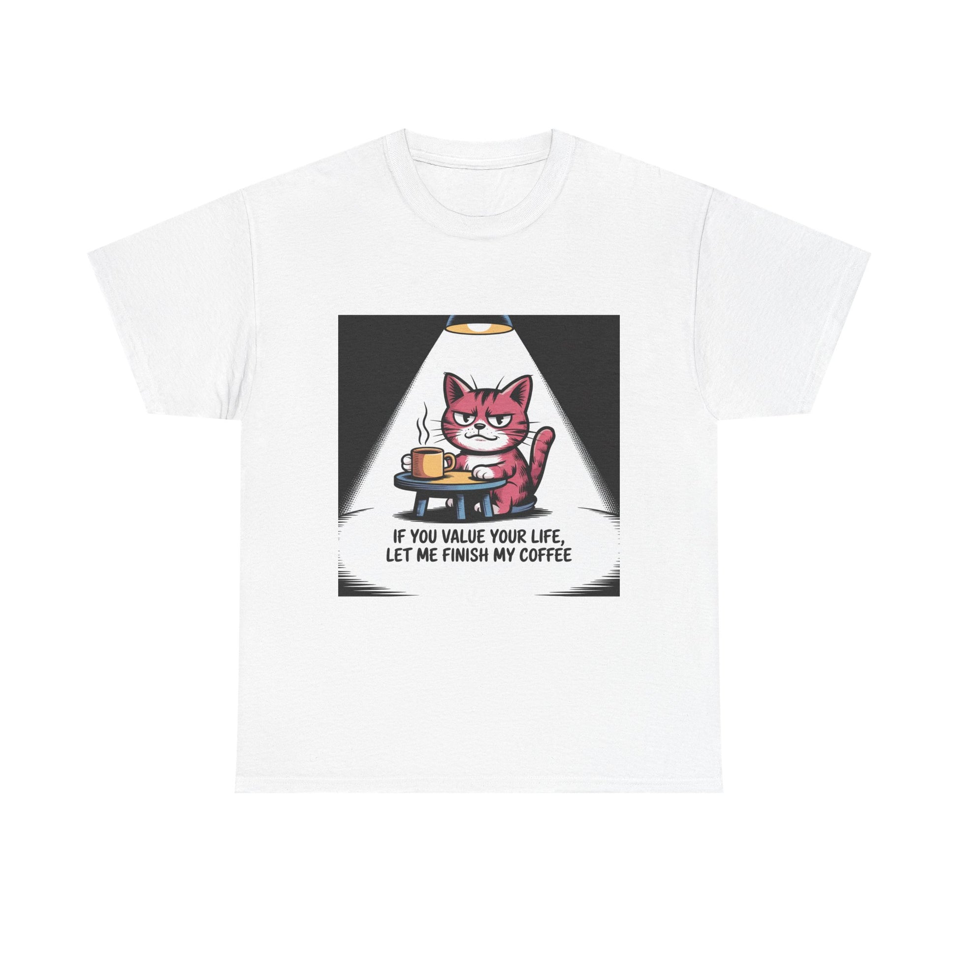 Cat Coffee Tee — “If You Value Your Life, Let Me Finish My Coffee” Funny Cat Shirt