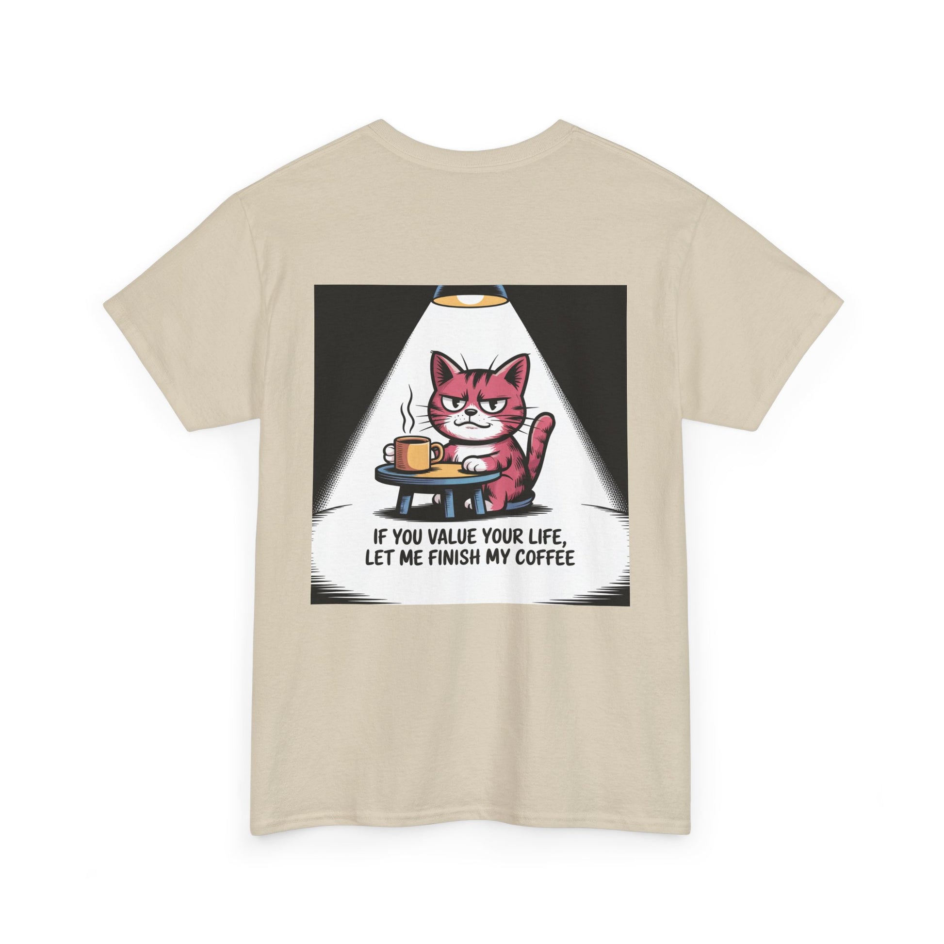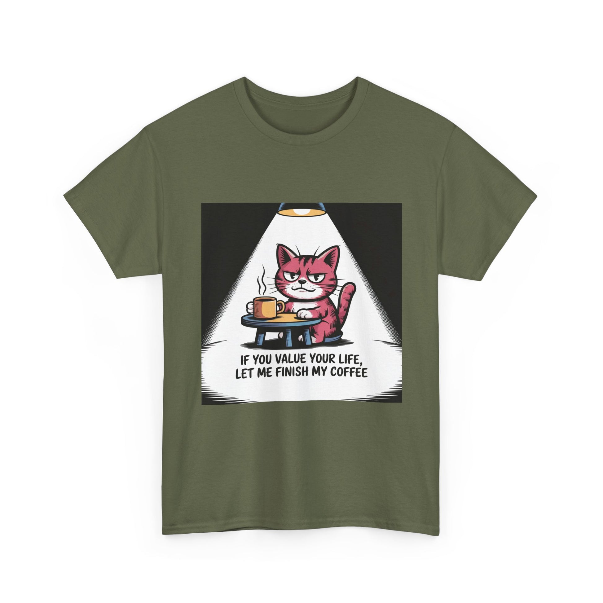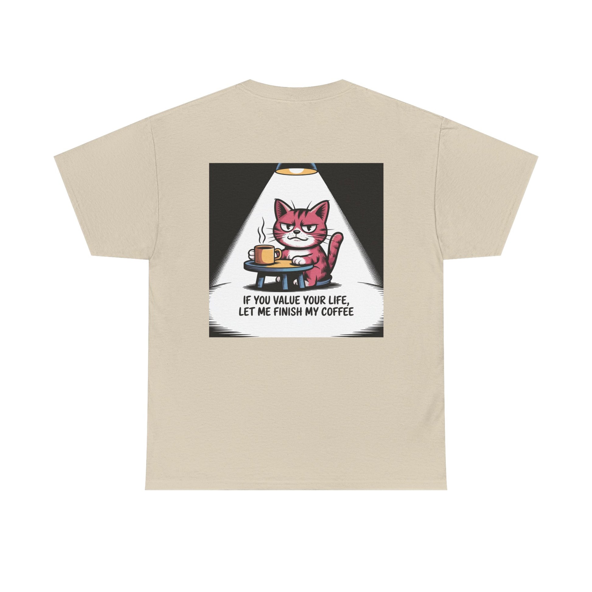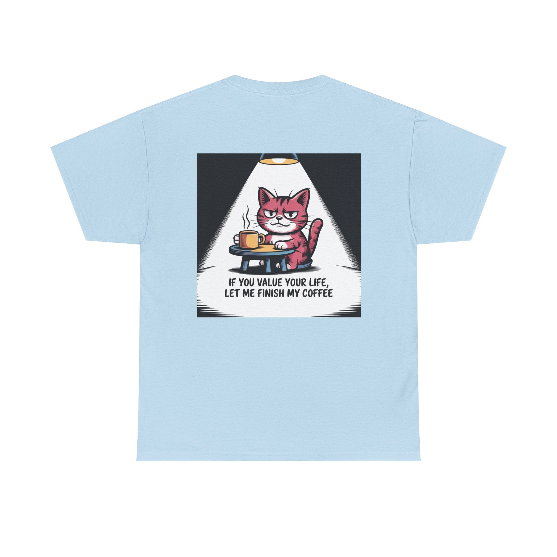 Cat Coffee Tee — “If You Value Your Life, Let Me Finish My Coffee” Funny Cat Shirt