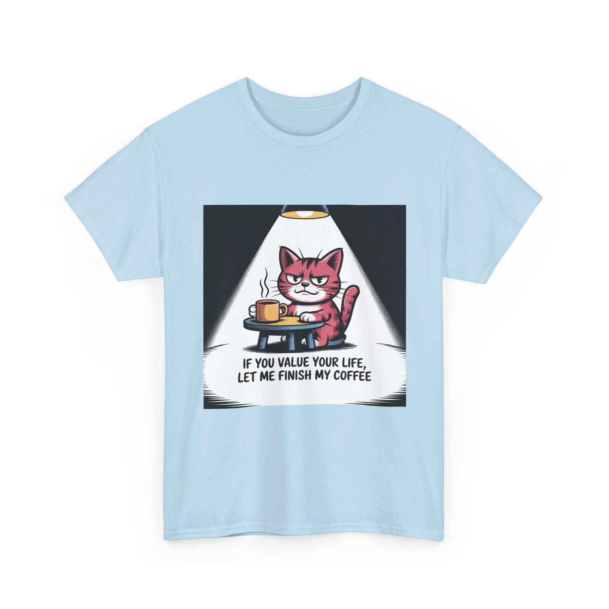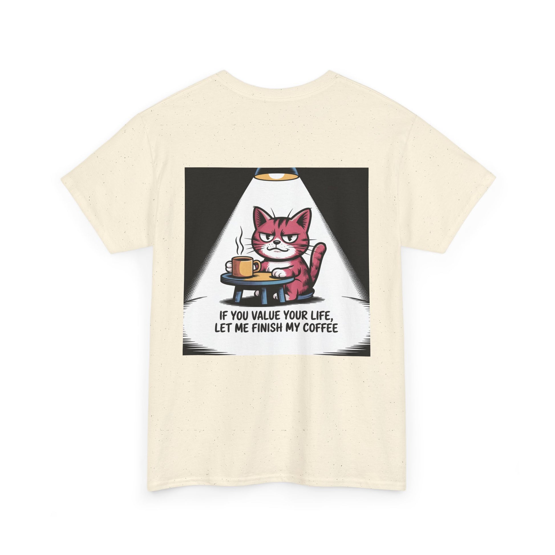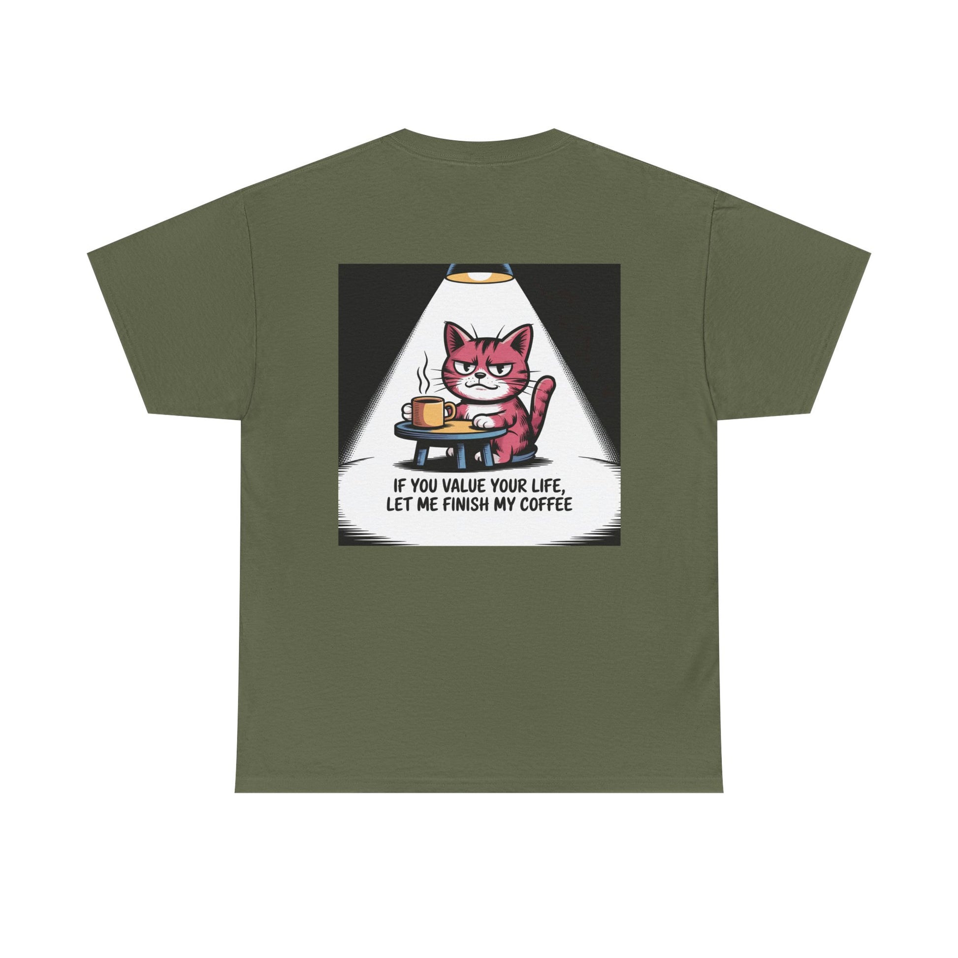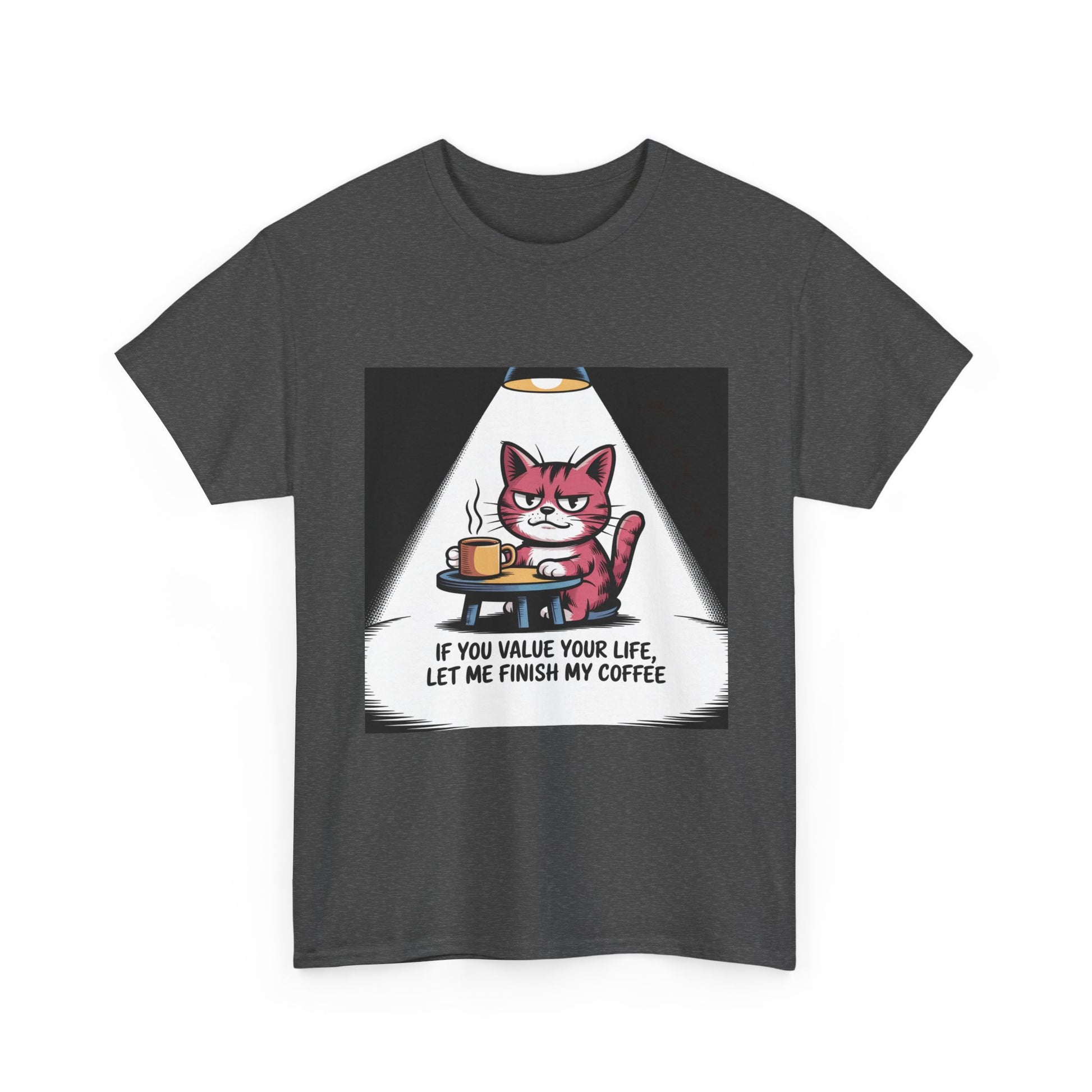 Cat Coffee Tee — “If You Value Your Life, Let Me Finish My Coffee” Funny Cat Shirt