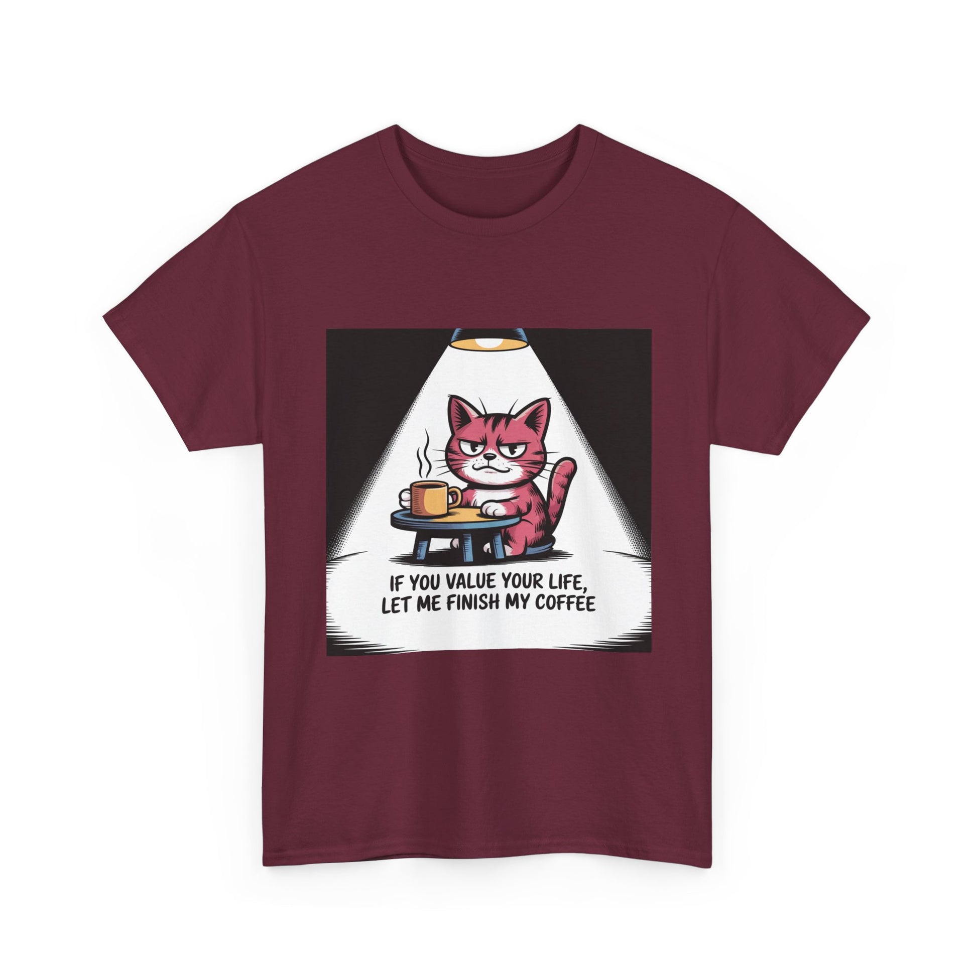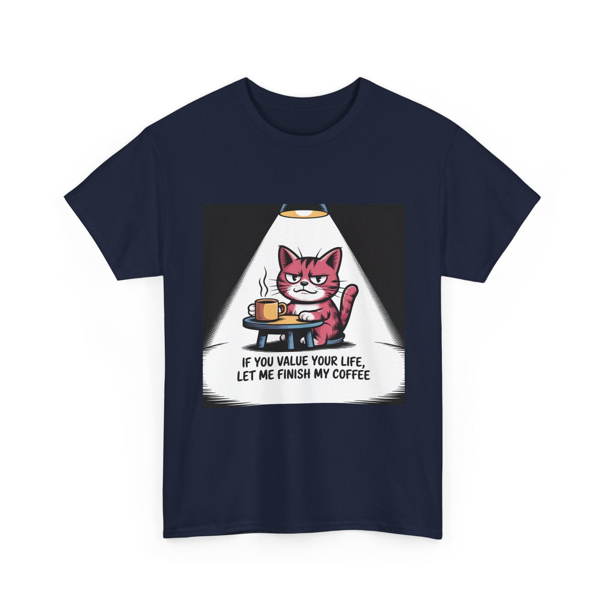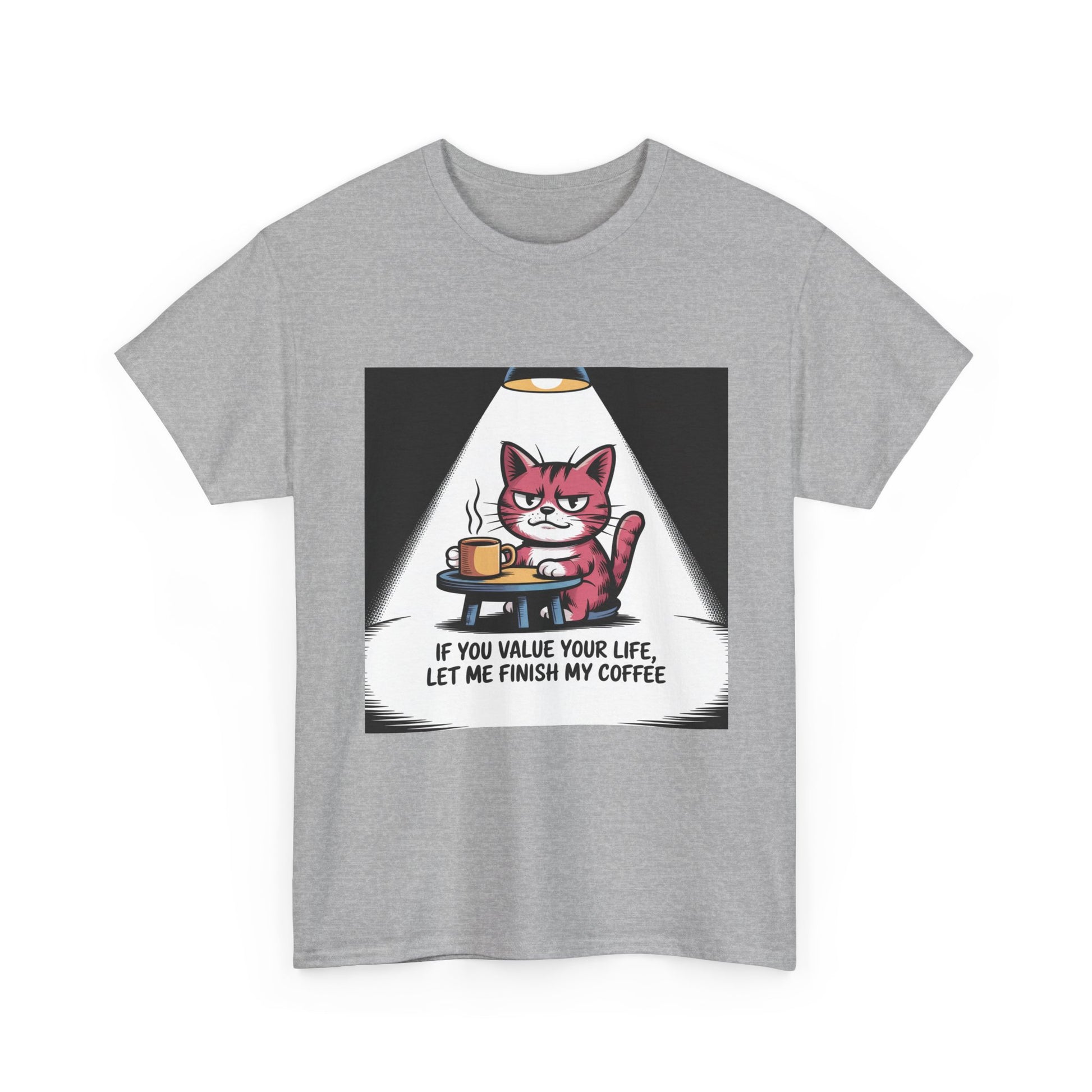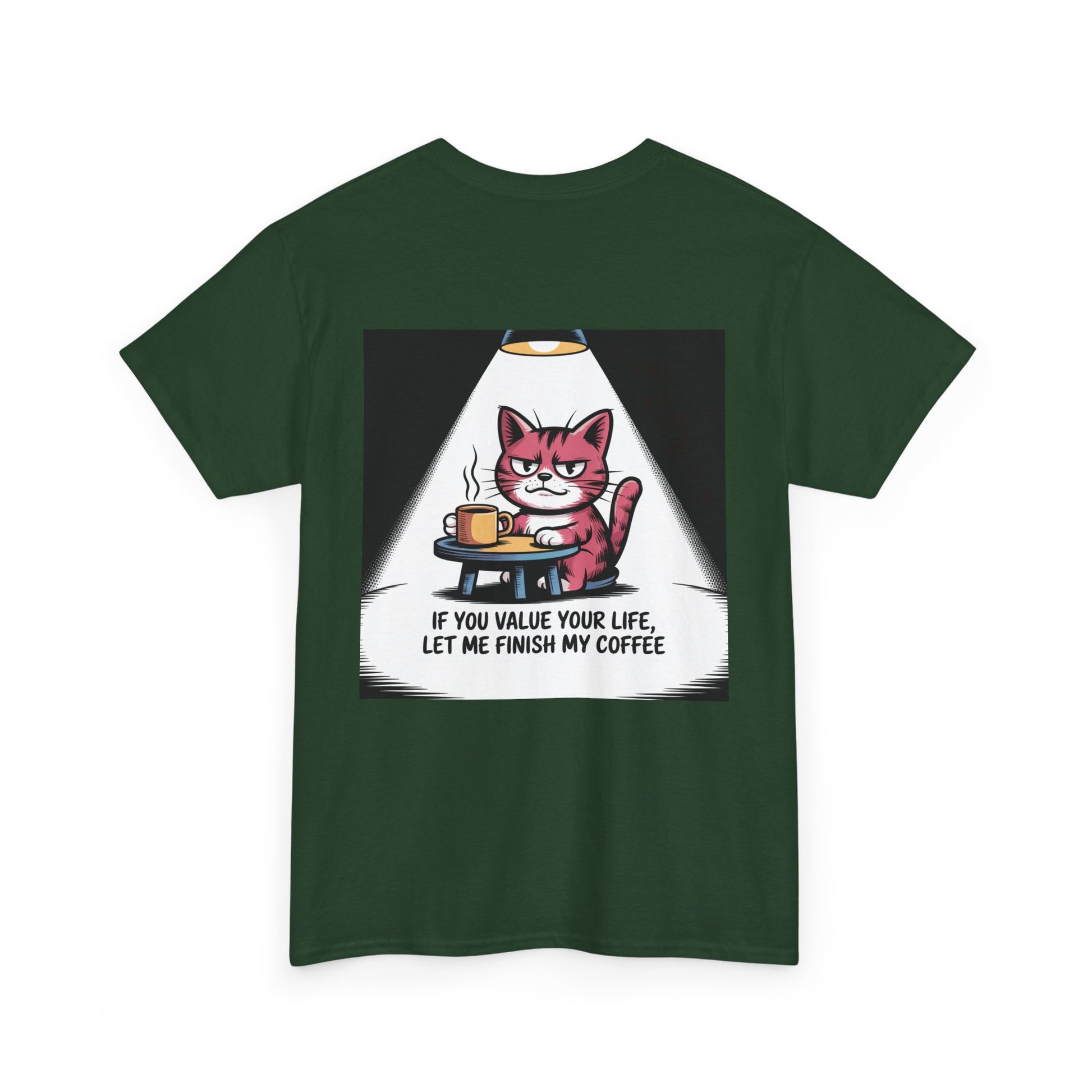 Cat Coffee Tee — “If You Value Your Life, Let Me Finish My Coffee” Funny Cat Shirt