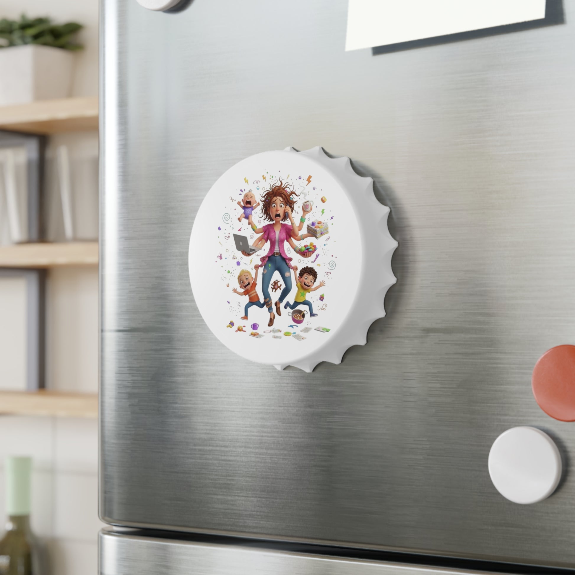 Chaos Mom Bottle Opener – Funny Mom Life Kitchen Magnet