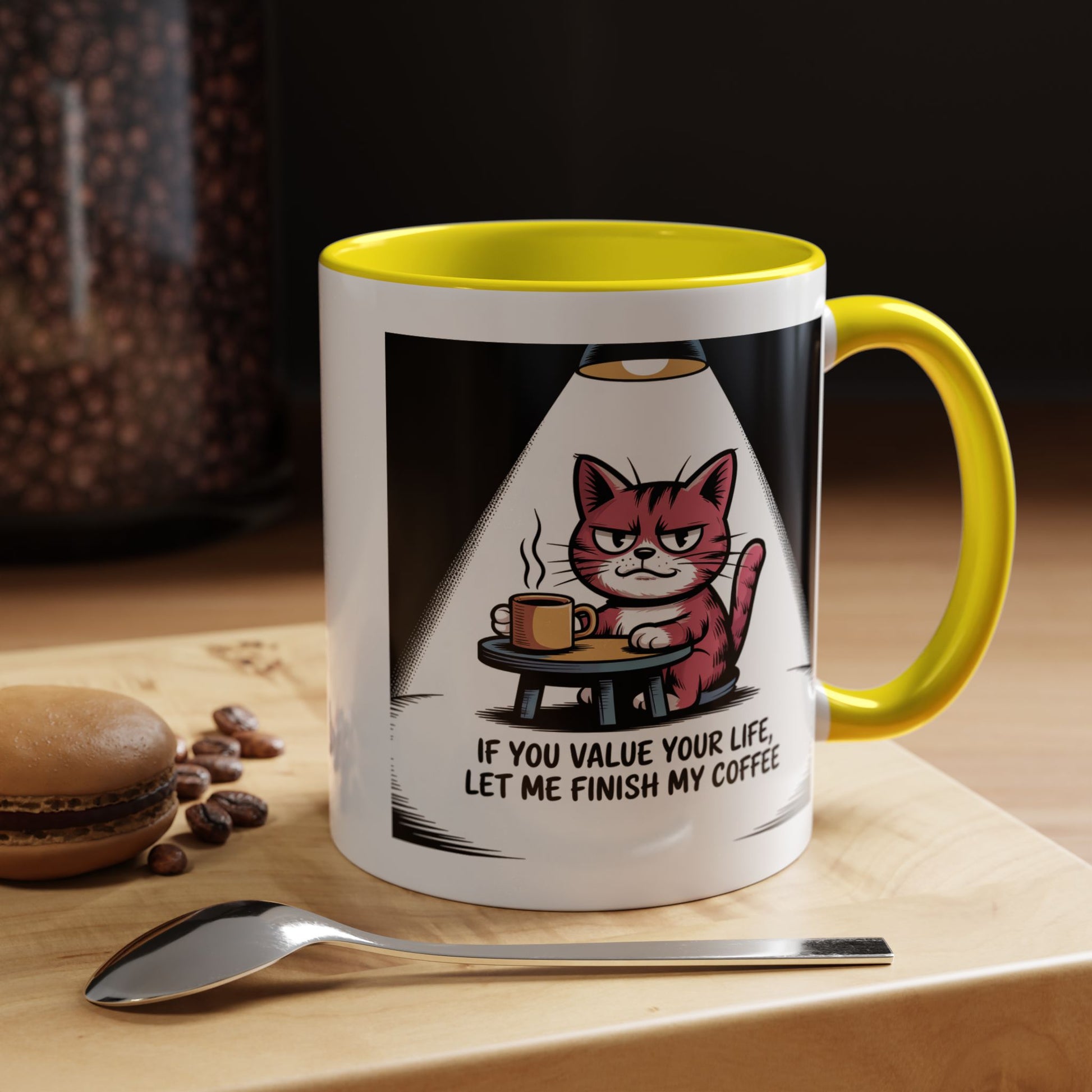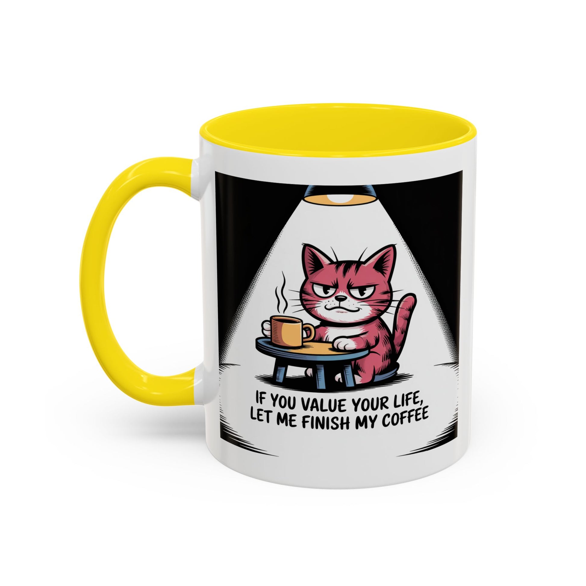 Coffee Cat Mug — "If You Value Your Life, Let Me Finish My Coffee" Accent Coffee Mug