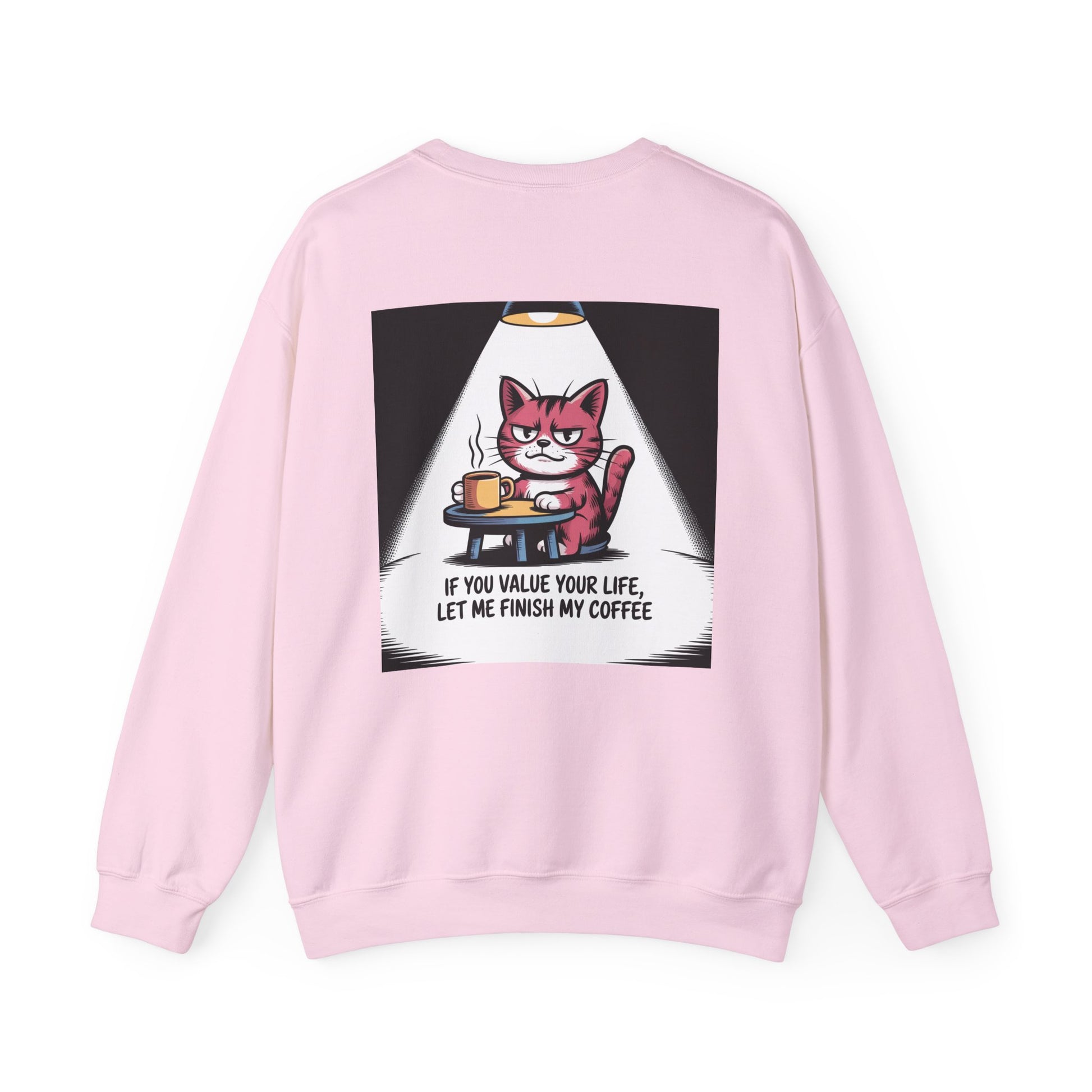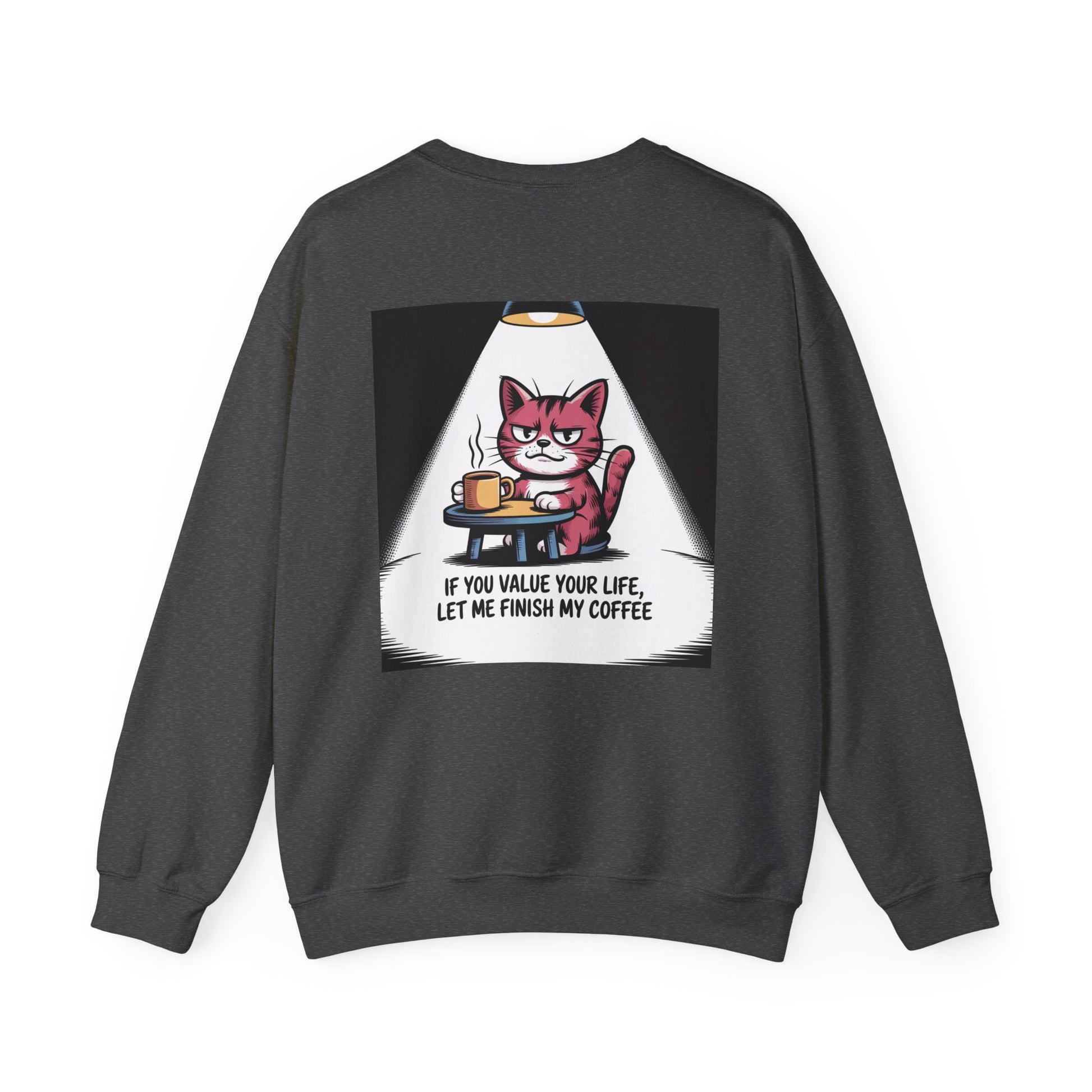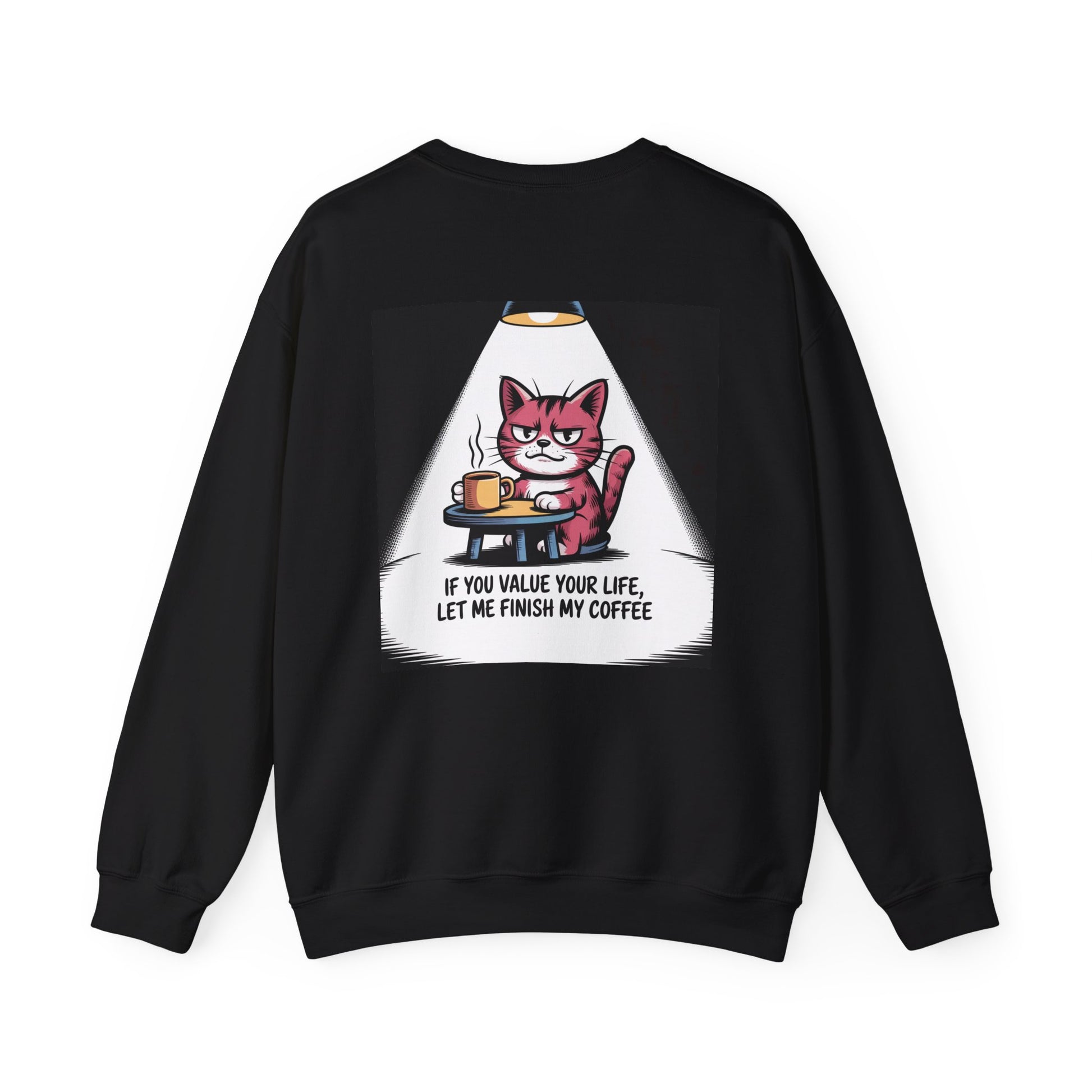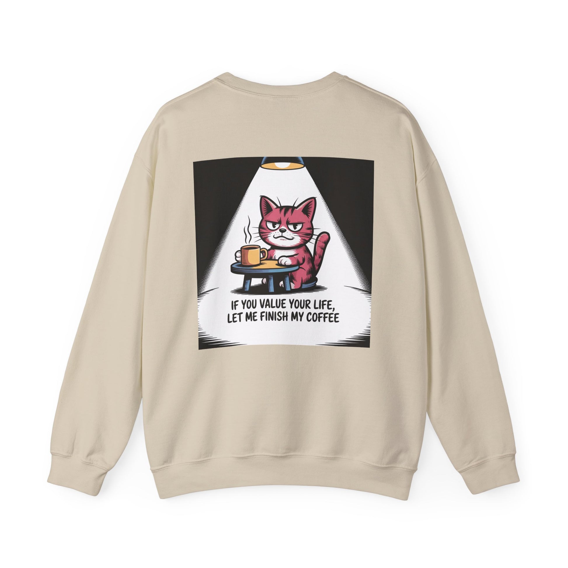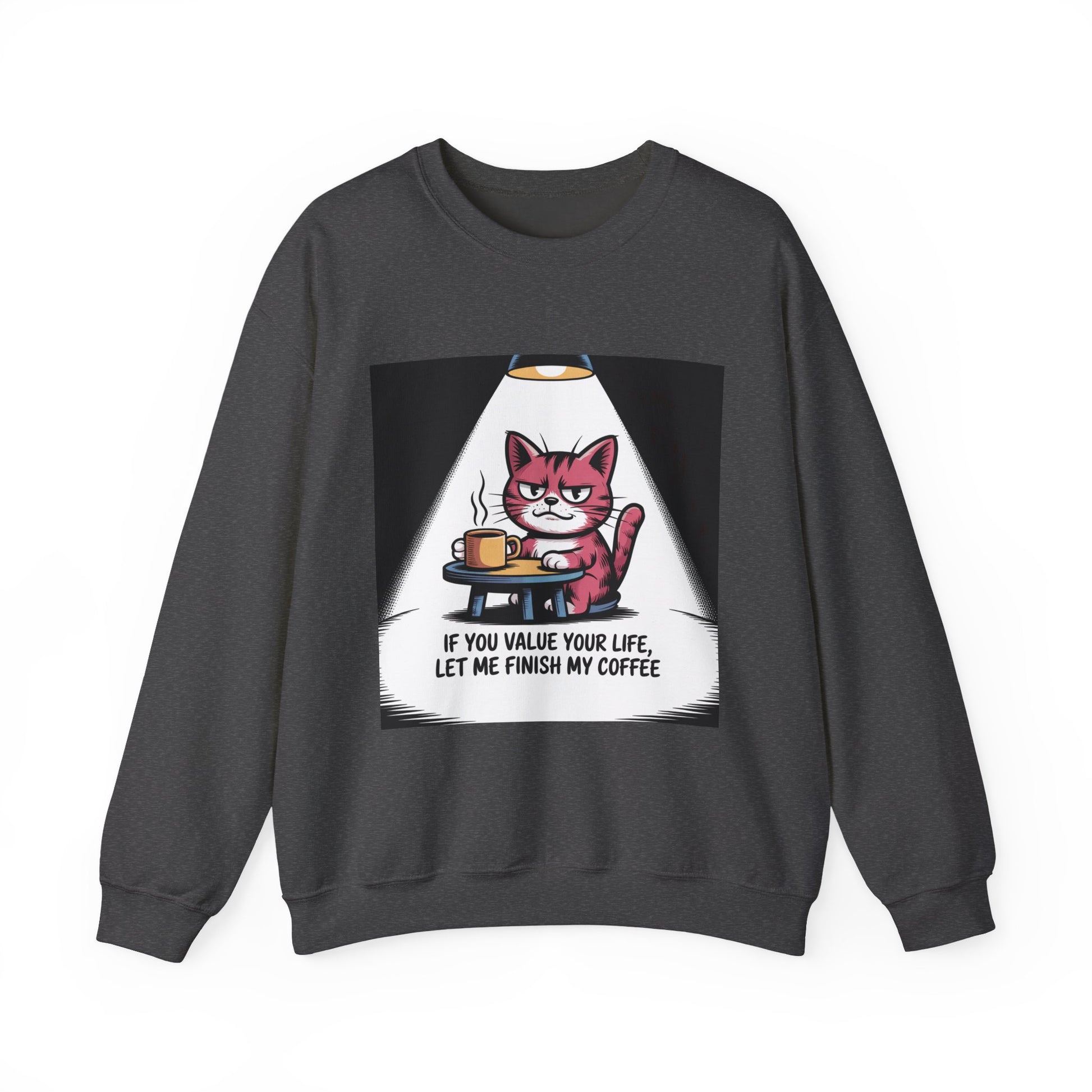 Coffee Cat Sweatshirt — "If You Value Your Life, Let Me Finish My Coffee" Cozy Crewneck