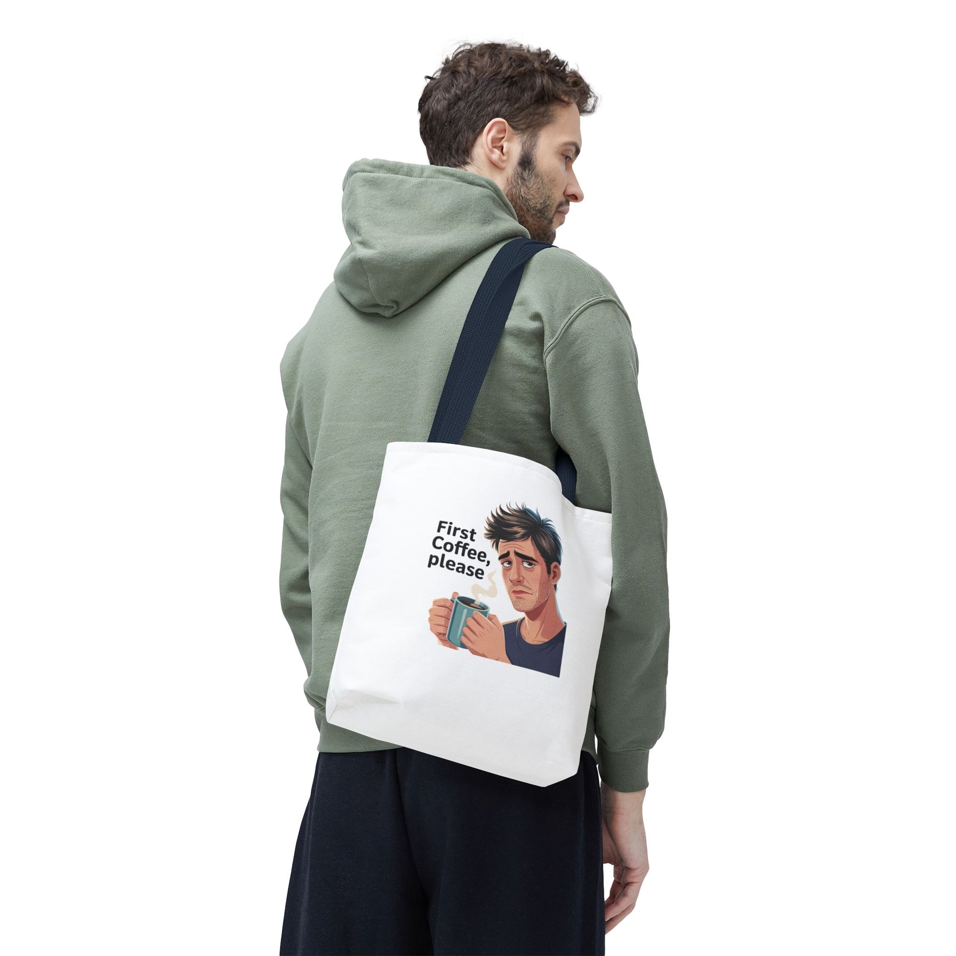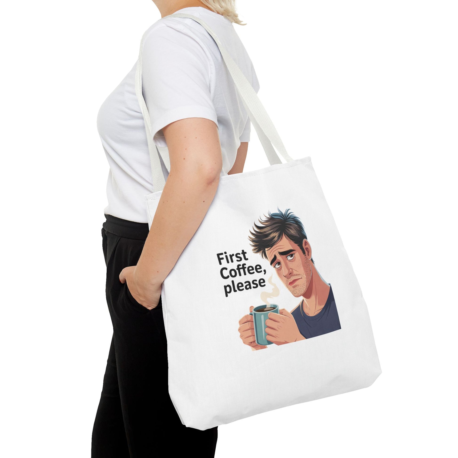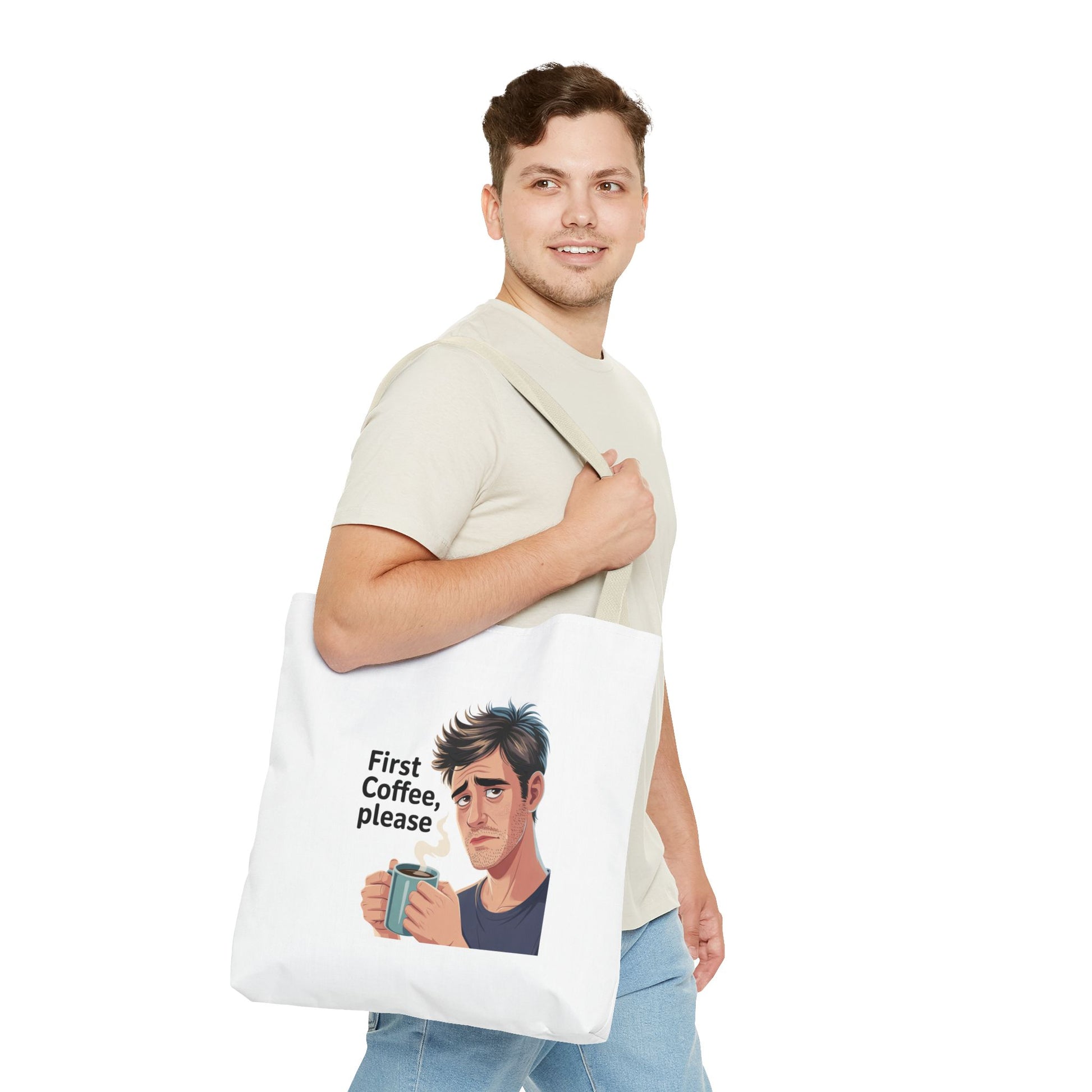 Coffee Lover Tote Bag — "First Coffee, Please" Morning Humor Tote