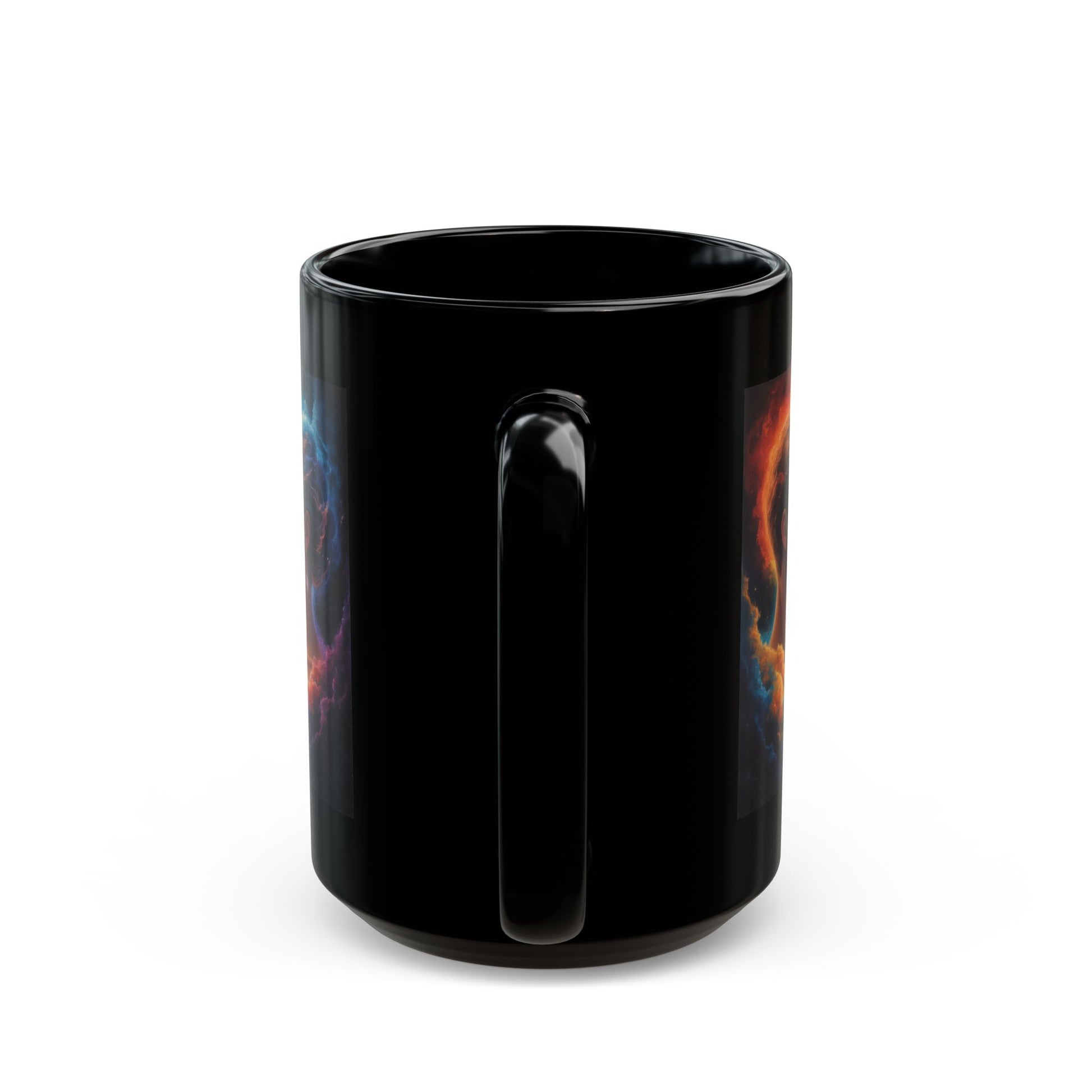 Sip slowly and get lost in the cosmos. This glossy black ceramic mug combines deep, inky tones with a burst of vibrant, nebula-like artwork that seems to glow against the dark background. Each morning becomes a quiet, ritual moment—steam rising, colors shifting in the light, a small escape into imagination. It fits naturally into a creative desk, a late-night studio session, or a calm weekend with a sketchbook. The comfortable C-handle and substantial weight lend a grounded, comforting feel, while the bold print keeps it visually striking among other kitchenware.