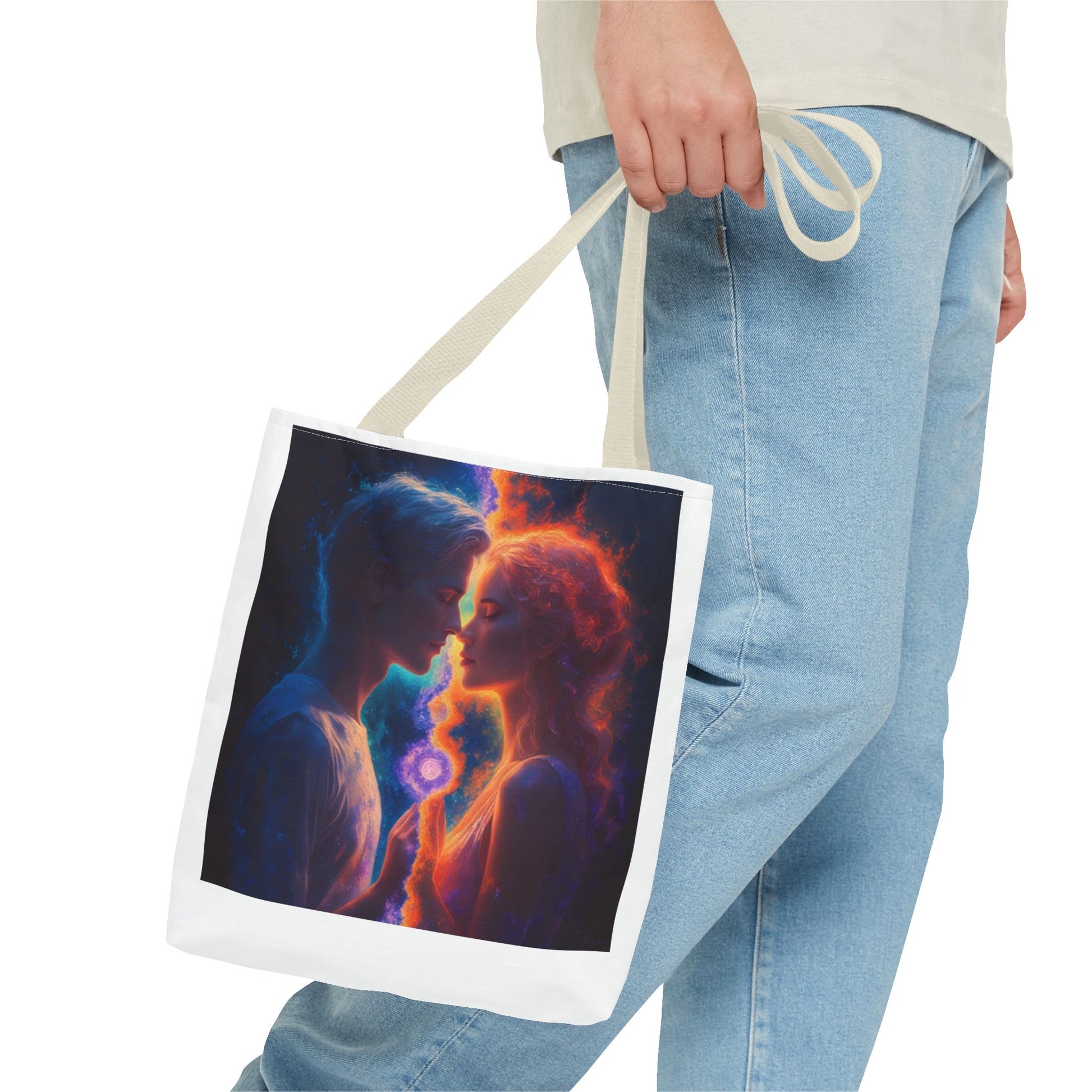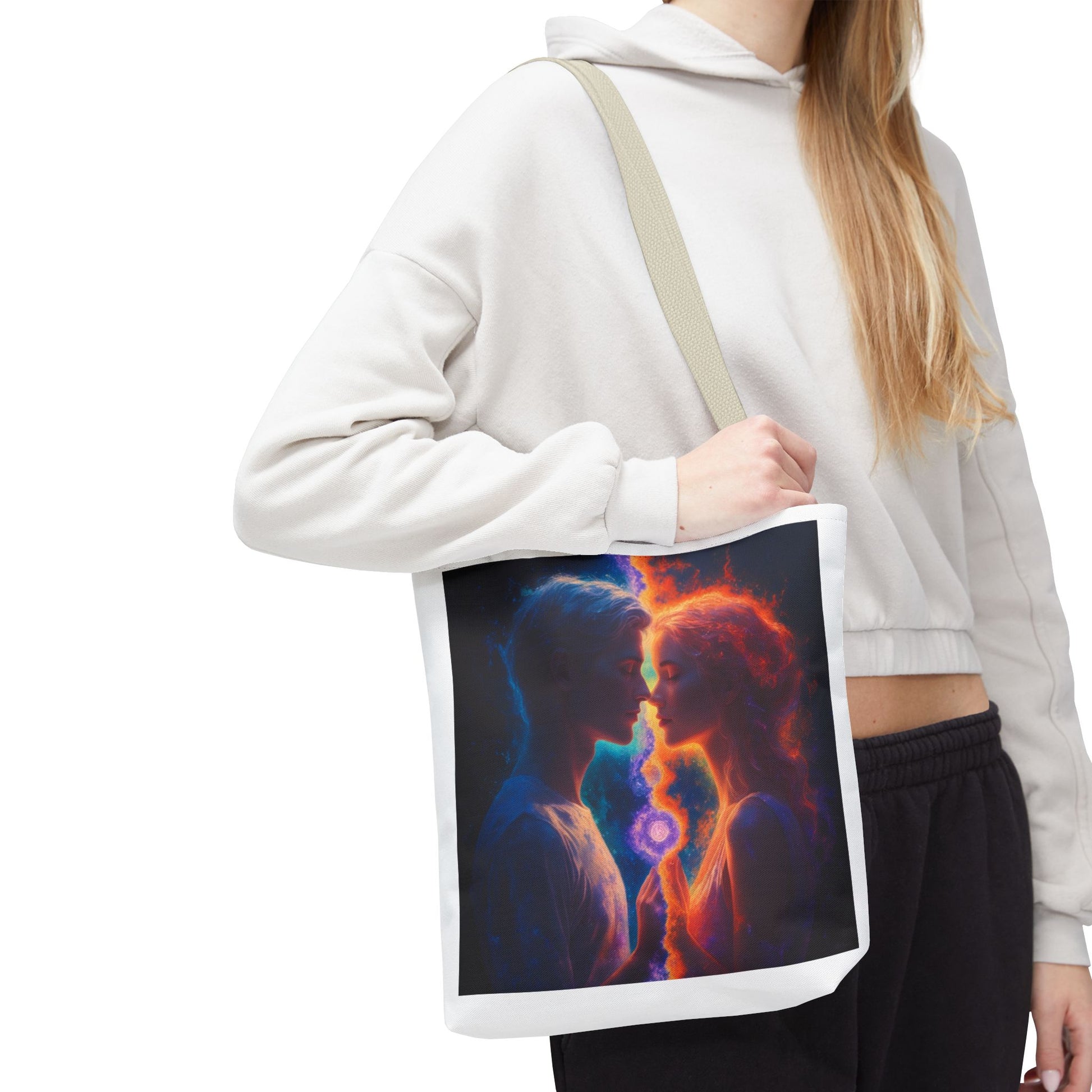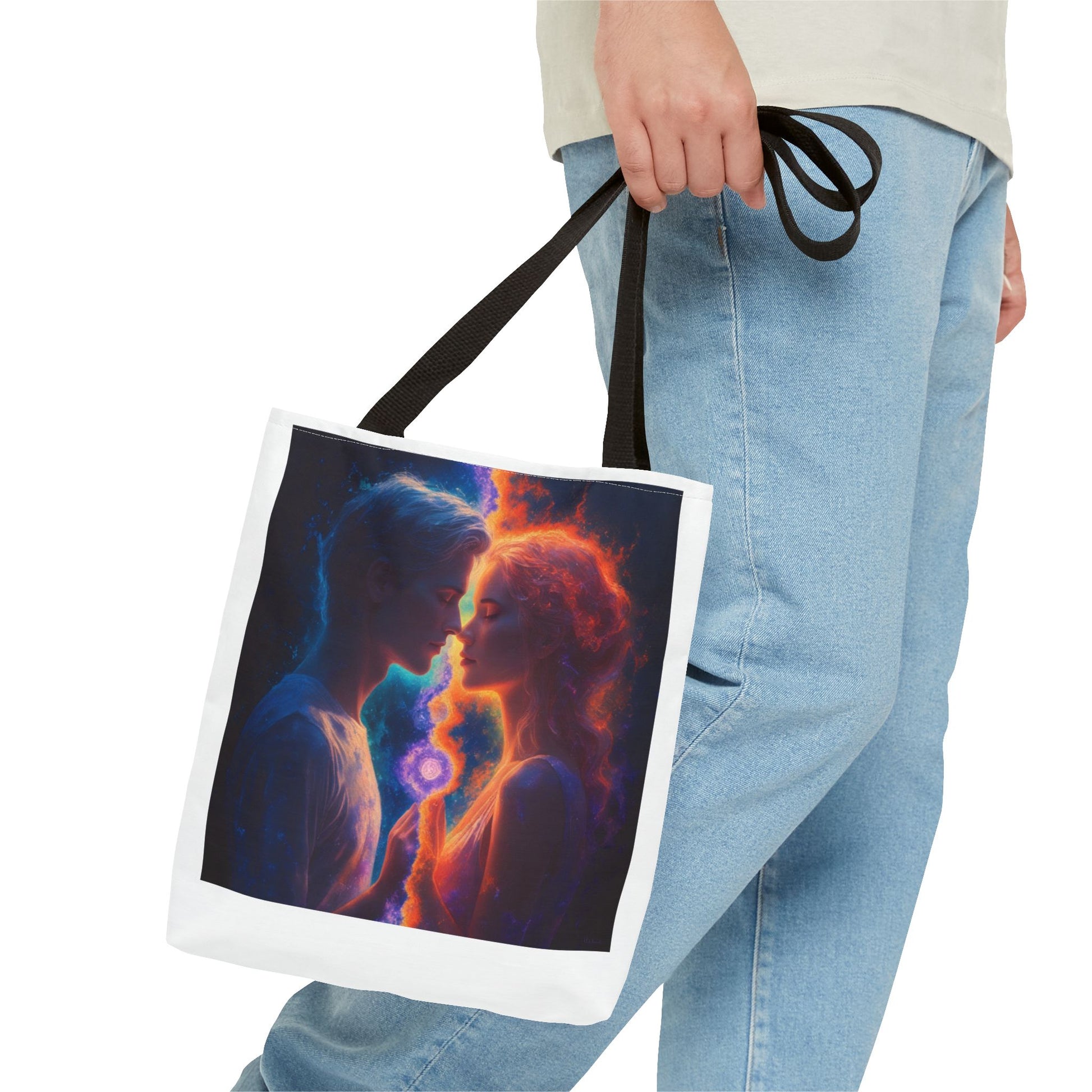 Cosmic Lovers Tote Bag — Flame & Ice Couple Art AOP
