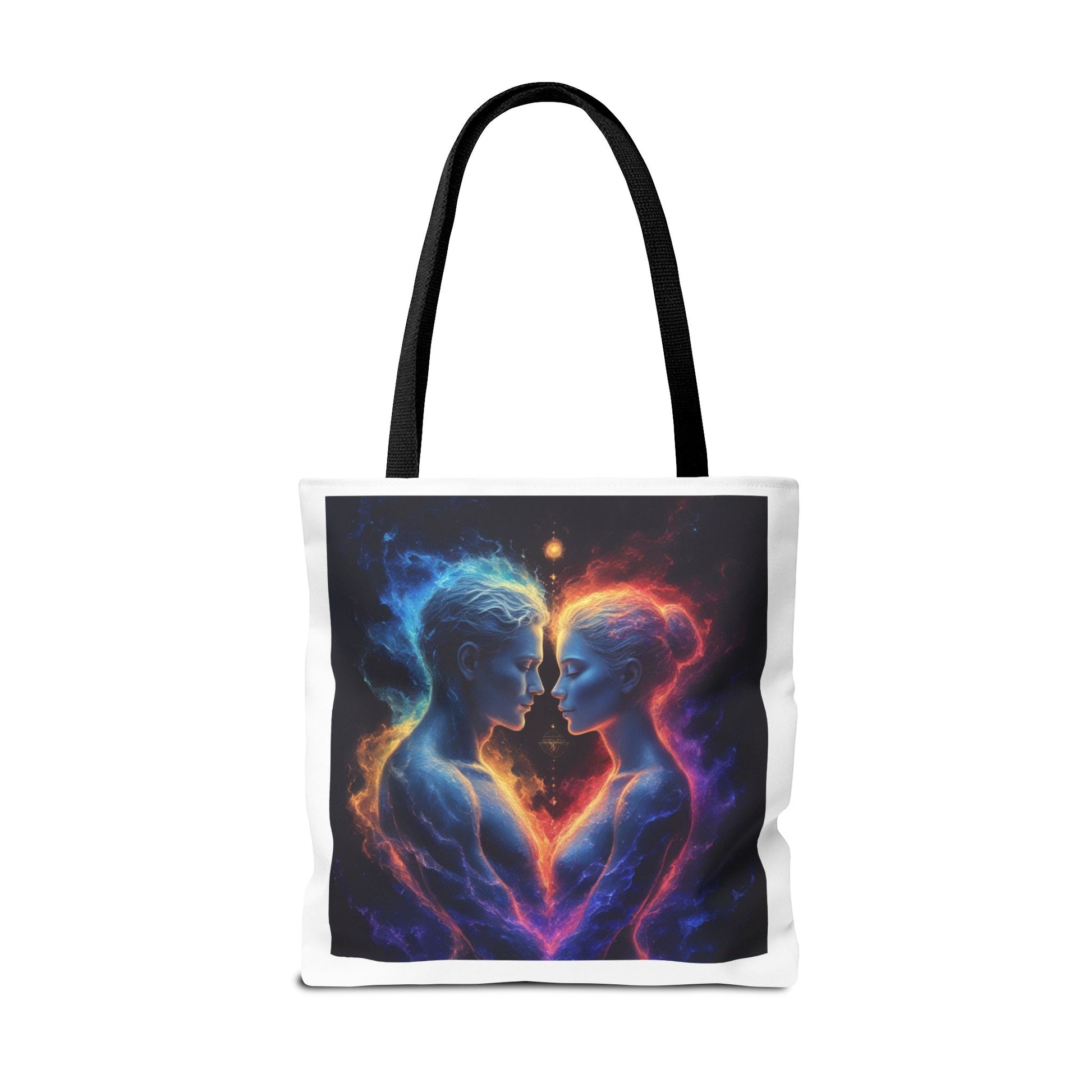 Cosmic Lovers Tote Bag — Neon Fire & Ice Couple Art AOP Tote