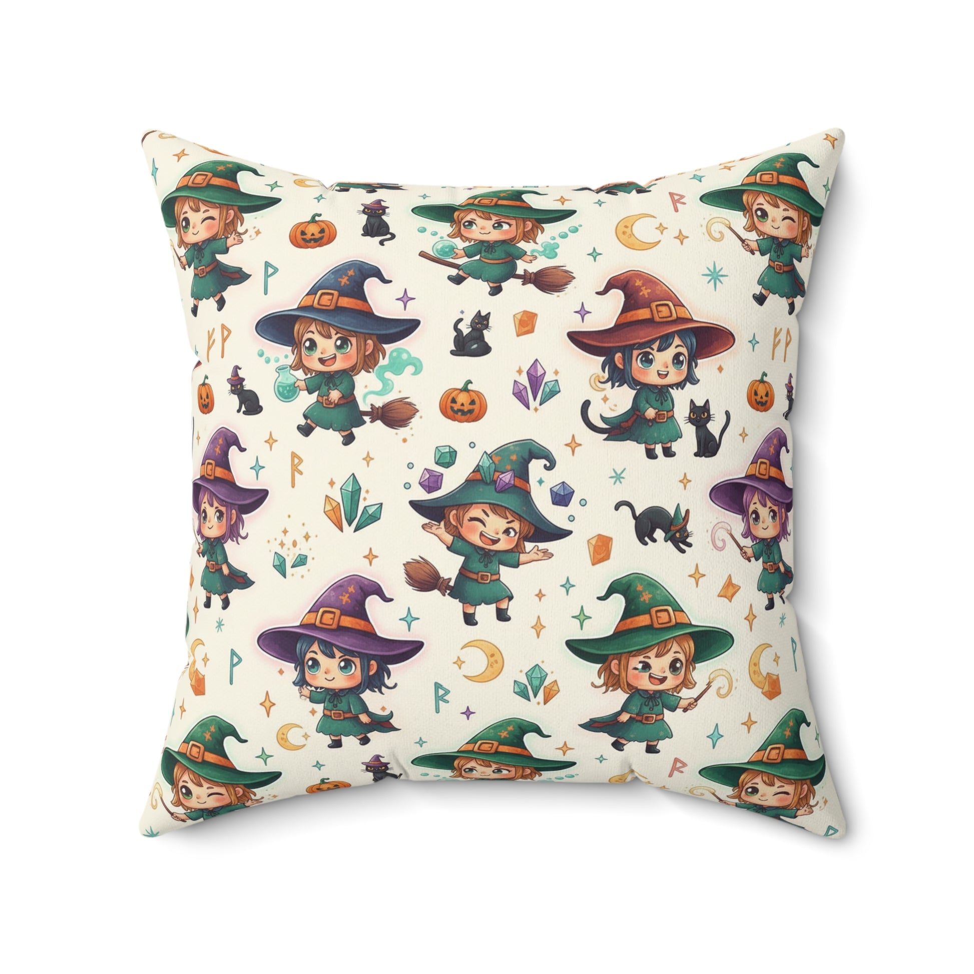Cute Witch Pattern Decorative Throw Pillow – Halloween Kids Room Accent