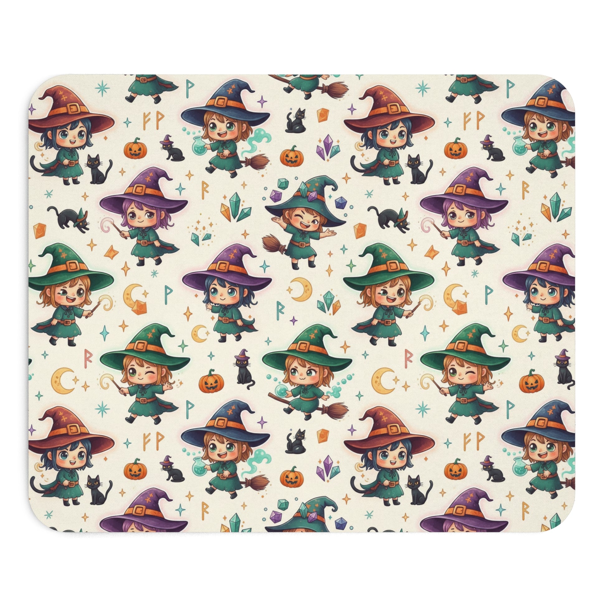Cute Witch Pattern Mouse Pad — Kawaii Halloween Desk Mat