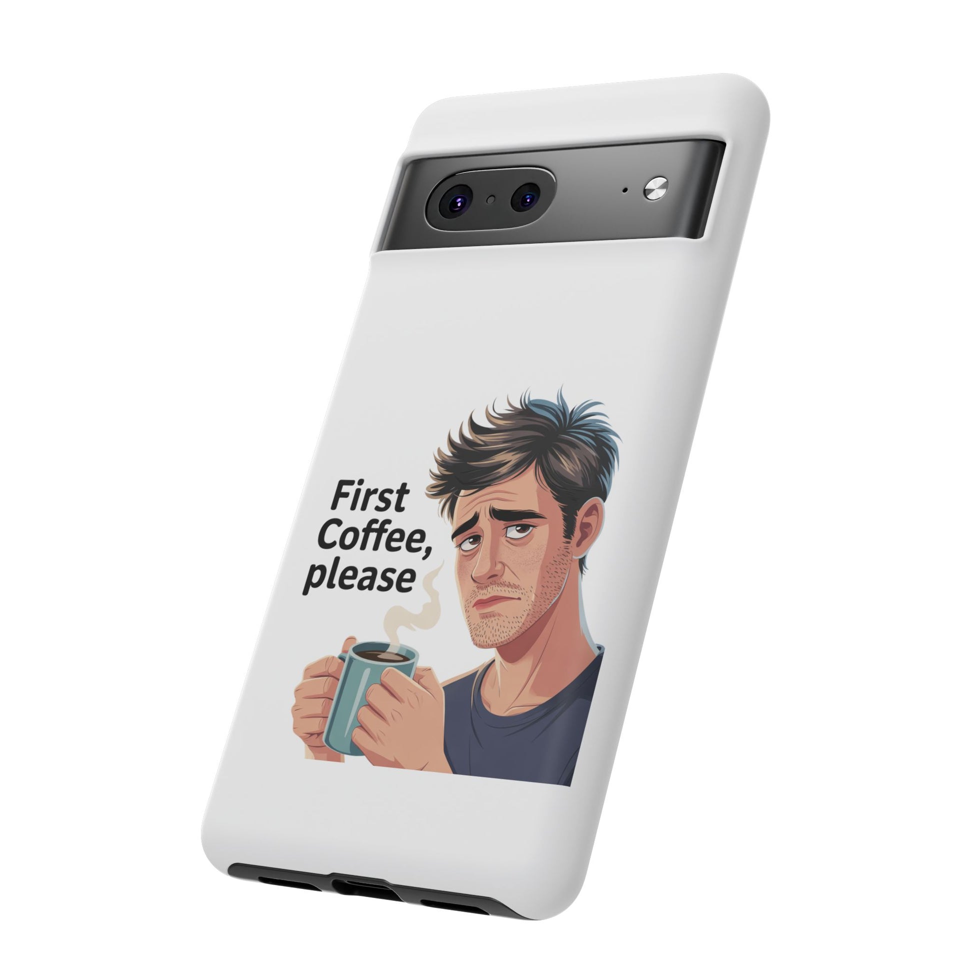 Google Phone Case — "First Coffee, Please" Morning Coffee Funny Protective Case