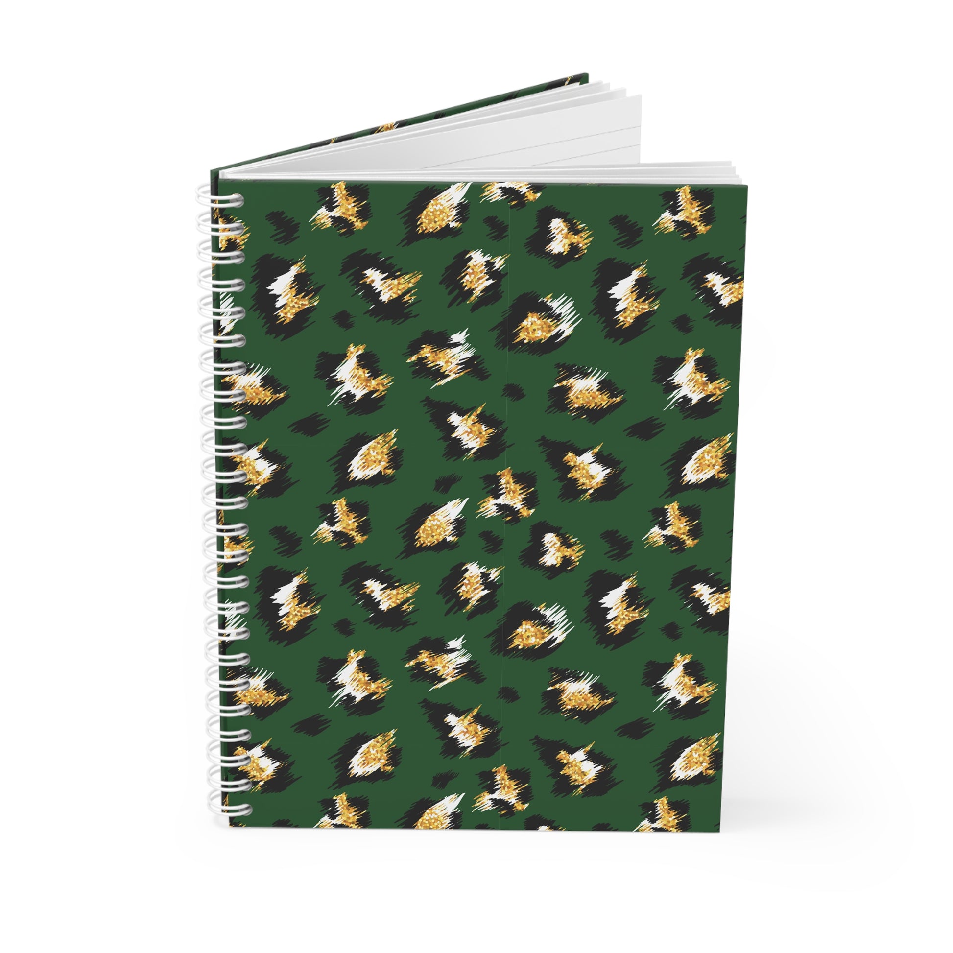Green Leopard Print Spiral Notebook - Stylish Animal Print Journal for Note-Taking