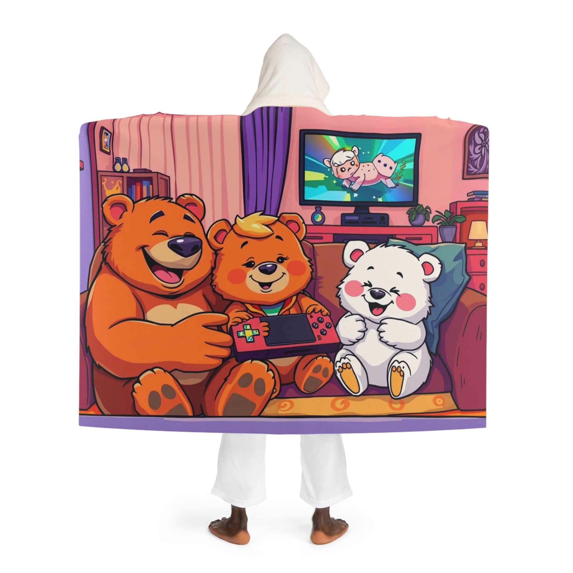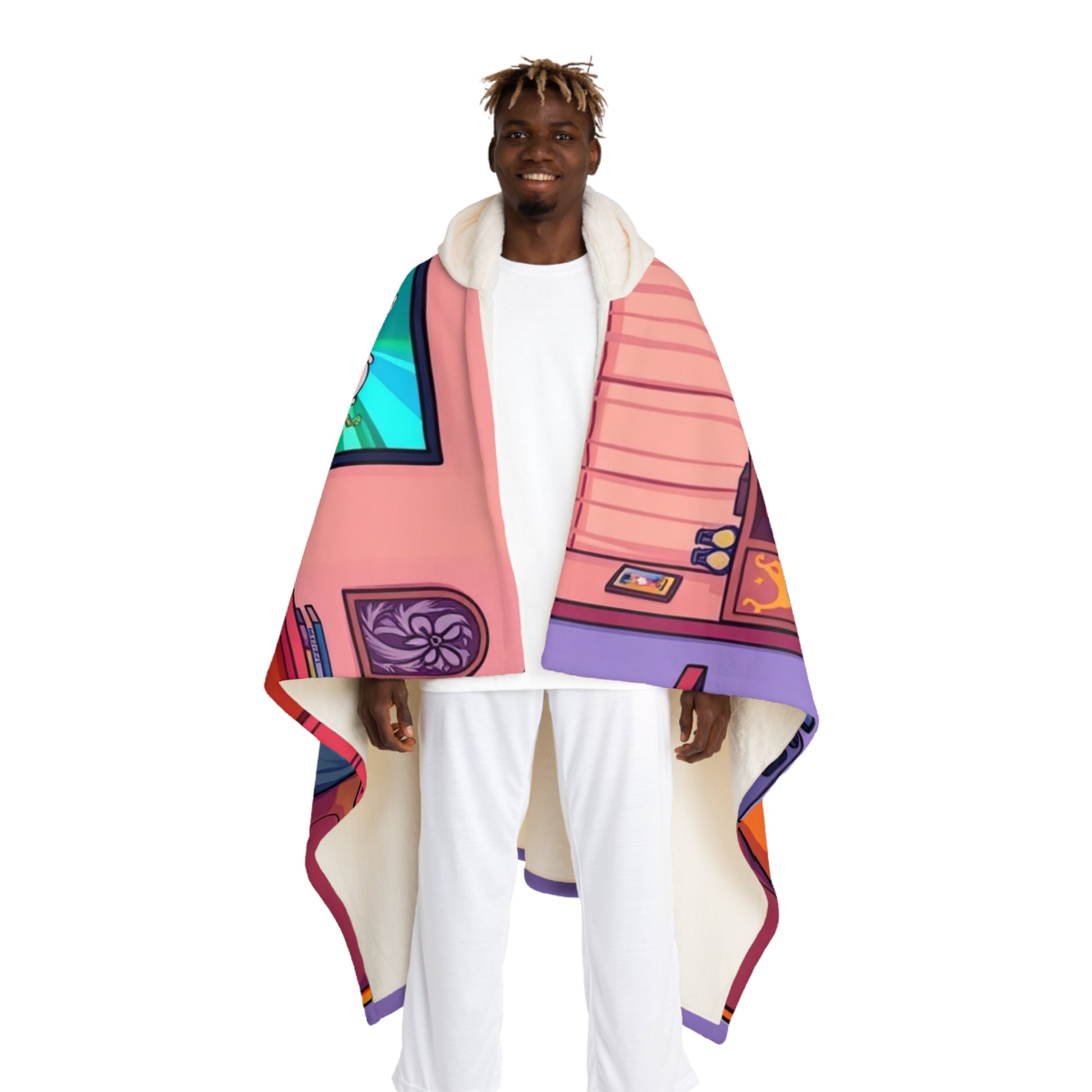 Wrap yourself in a cozy, storybook moment. This hooded sherpa fleece blanket feels like a warm hug from a favorite animated scene — plush, comforting, and colorful. The cream sherpa-lined hood settles softly over your shoulders, trapping warmth while the printed fleece shows a playful, homey illustration that brings a little wonder to quiet evenings. Wear it while reading on the couch, settling in for a movie night, or padding through a slow morning at home. The oversized cut drapes like a portable nook, letting you move freely while staying snug. Colors stay bright and the soft pile dries quickly, so it keeps looking cheerful through many cozy seasons.
