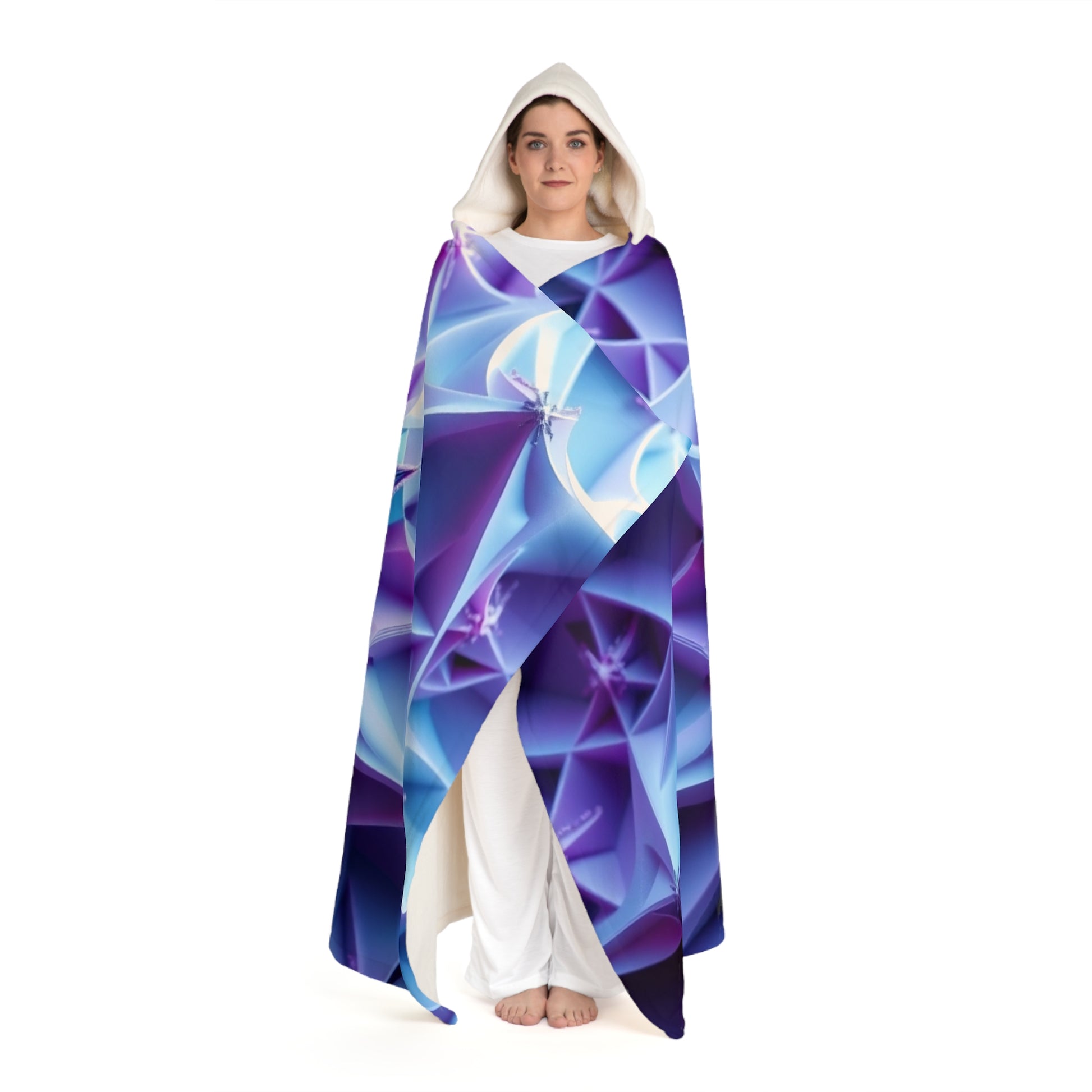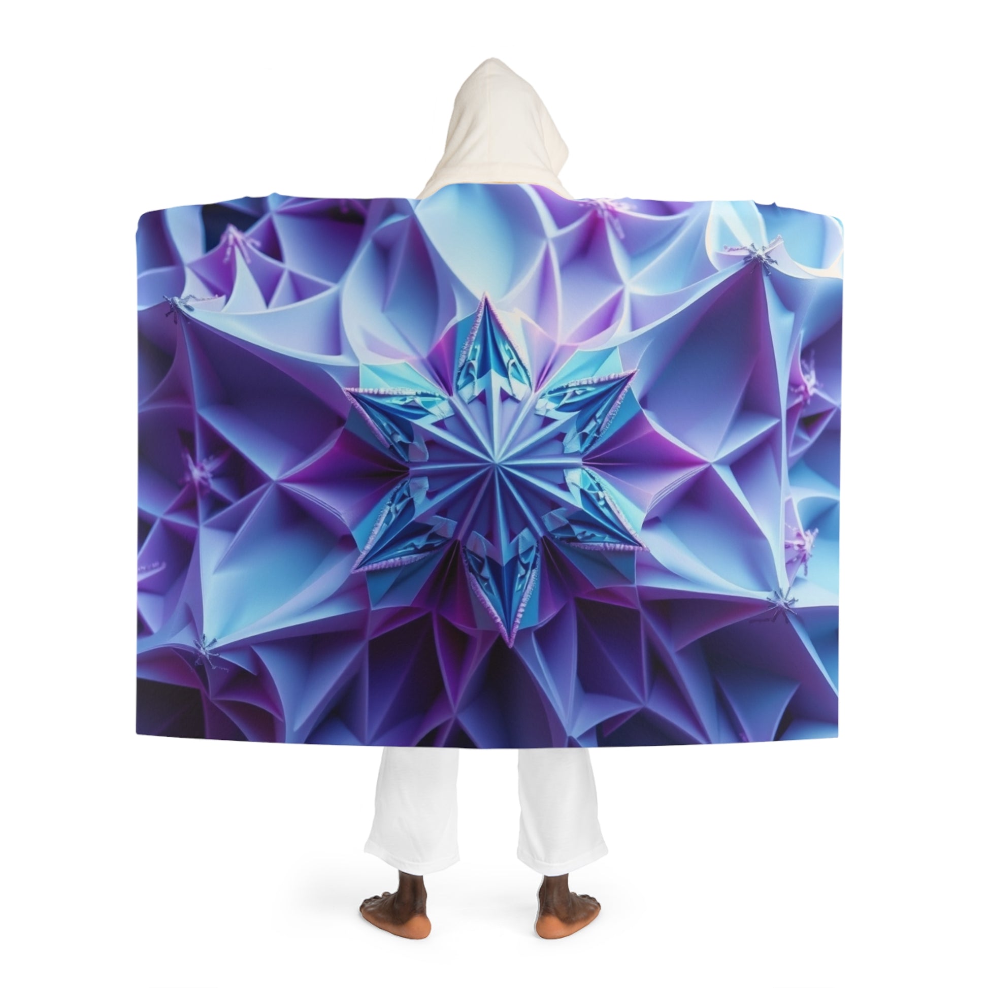 Hooded Sherpa Blanket — Blue Purple Geometric Floral Cozy Throw