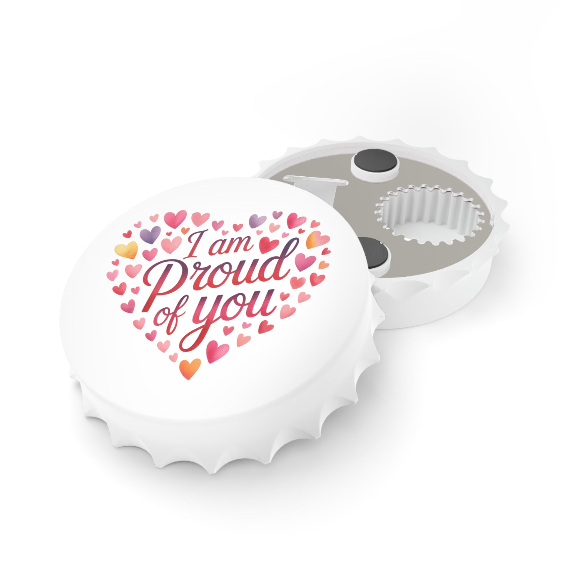 I Am Proud of You Bottle Opener — Heart Design Encouragement Gift