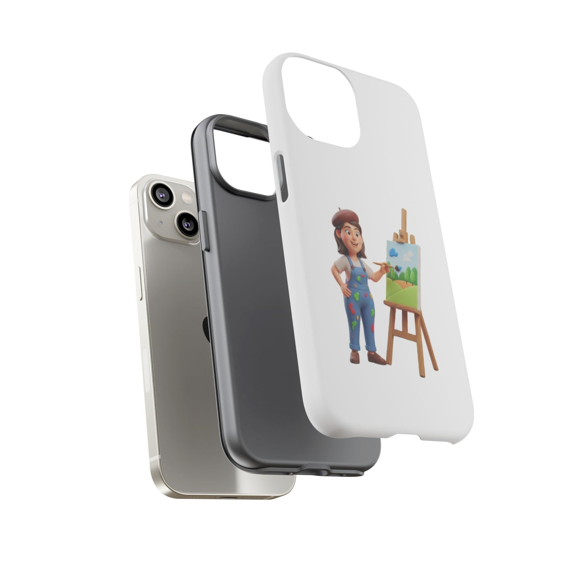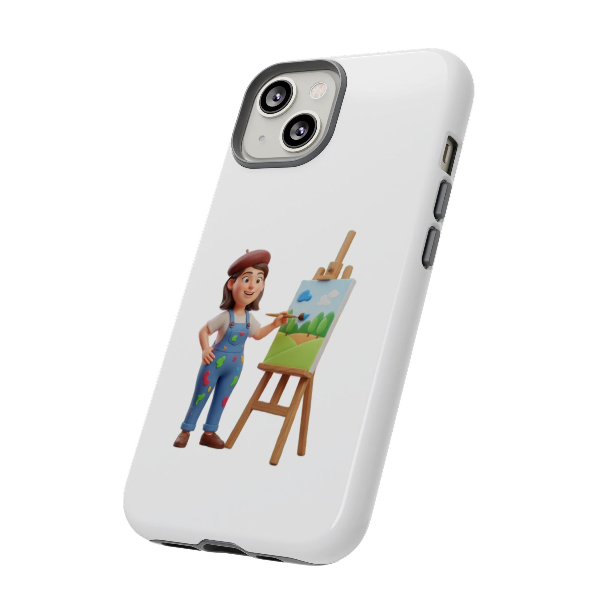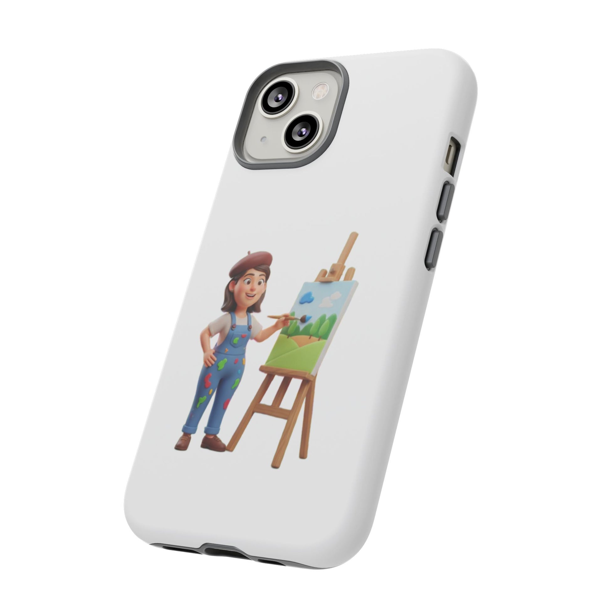 iPhone Artist Painter Phone Case — Cute Female Artist with Easel Protective iPhone Cover