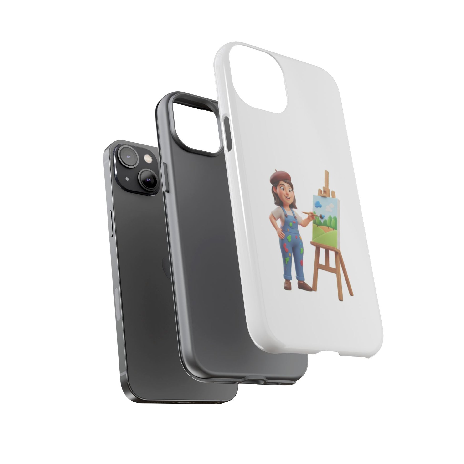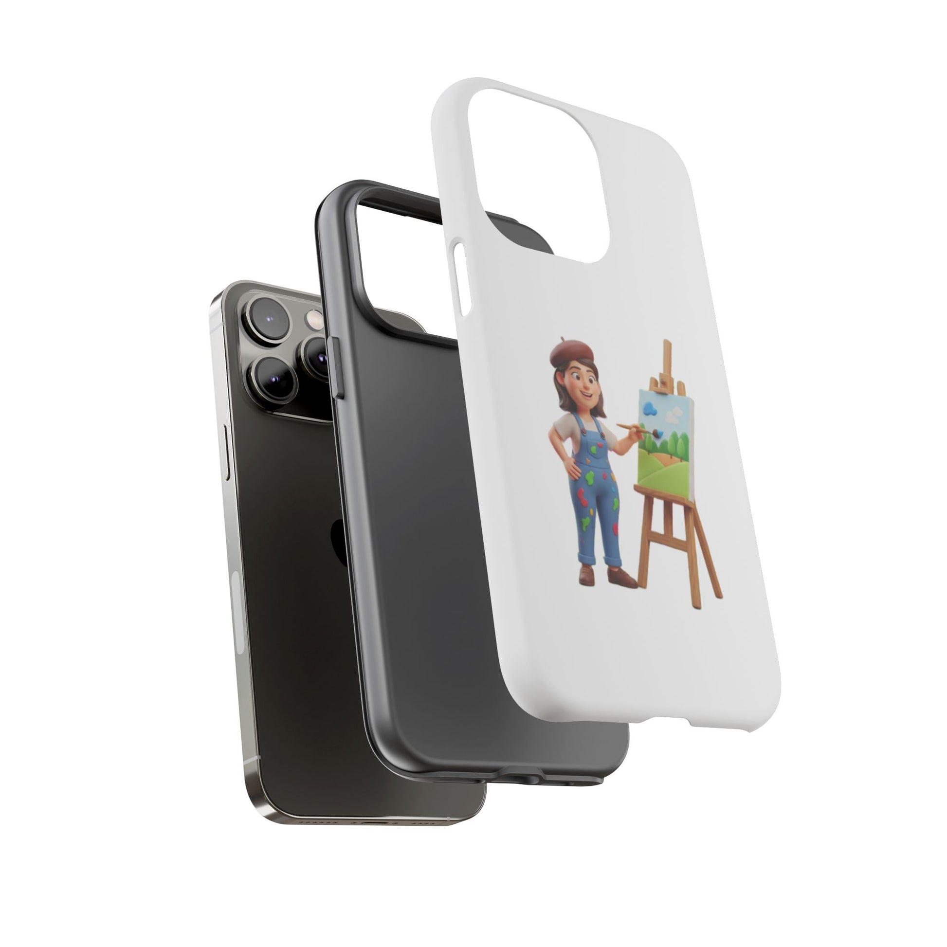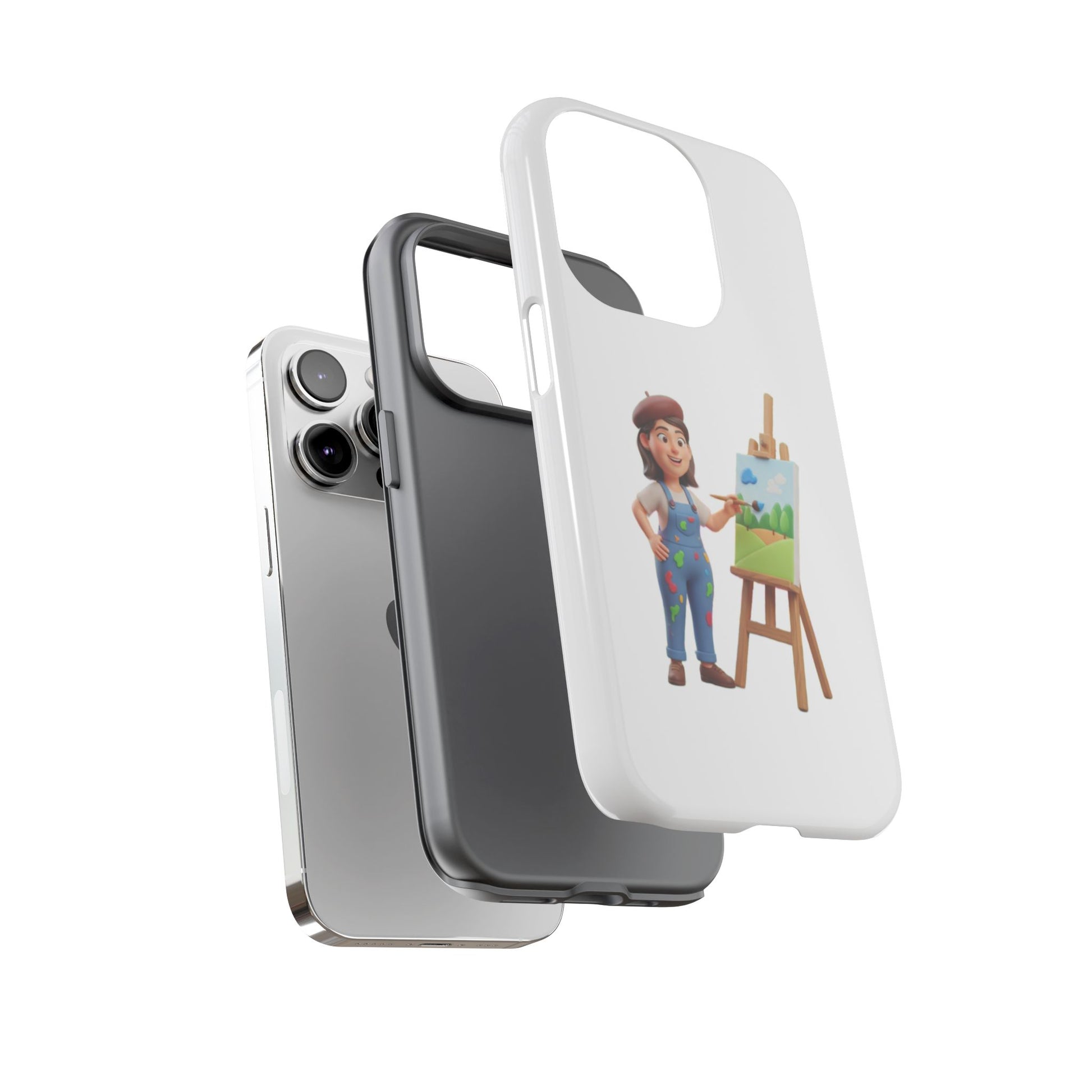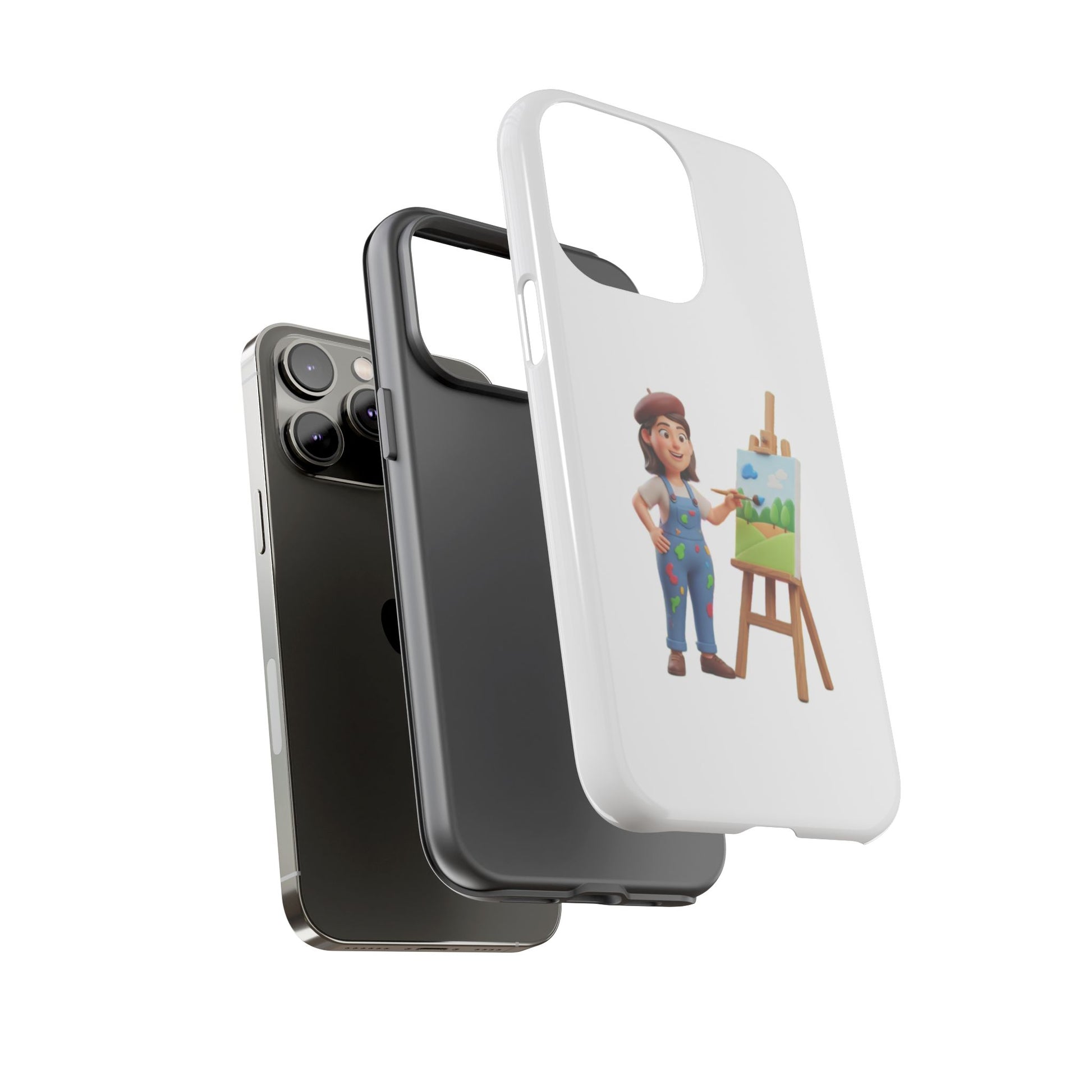 iPhone Artist Painter Phone Case — Cute Female Artist with Easel Protective iPhone Cover