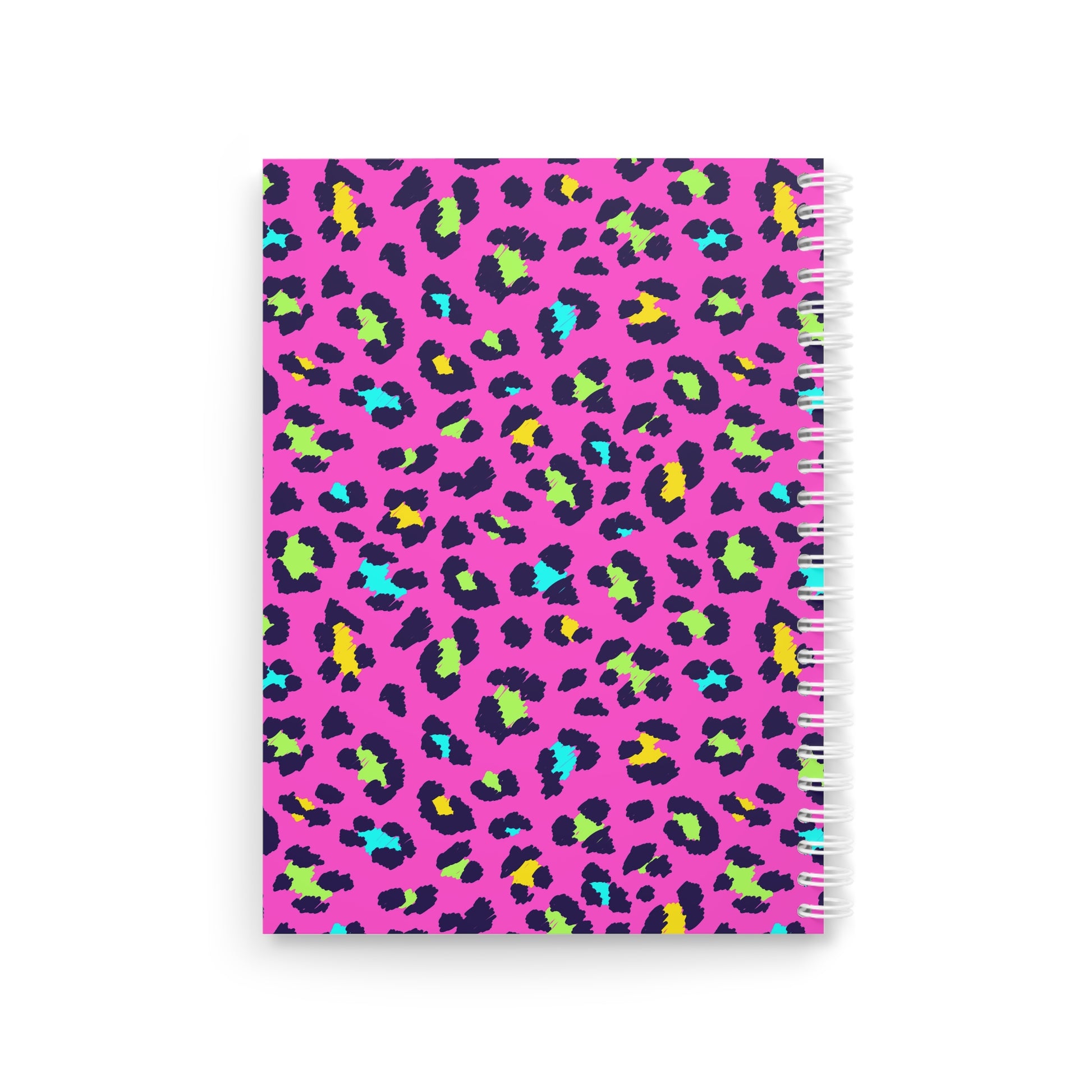 Bright, bold, and unapologetically fun — this spiral notebook brings playful energy to everyday notes. The semi-gloss laminated covers show off the vivid, neon leopard print in crisp detail on both front and back, while the white metal spiral keeps everything tidy and lets you remove pages cleanly when needed. Inside, 128 ruled pages of smooth 90gsm paper make writing a joy, whether you’re sketching ideas, logging lists, or journaling late-night thoughts. Lightweight and colorful, it slips into backpacks and tote bags and adds a confident pop to school desks, coffee-shop work sessions, or bedside tables.