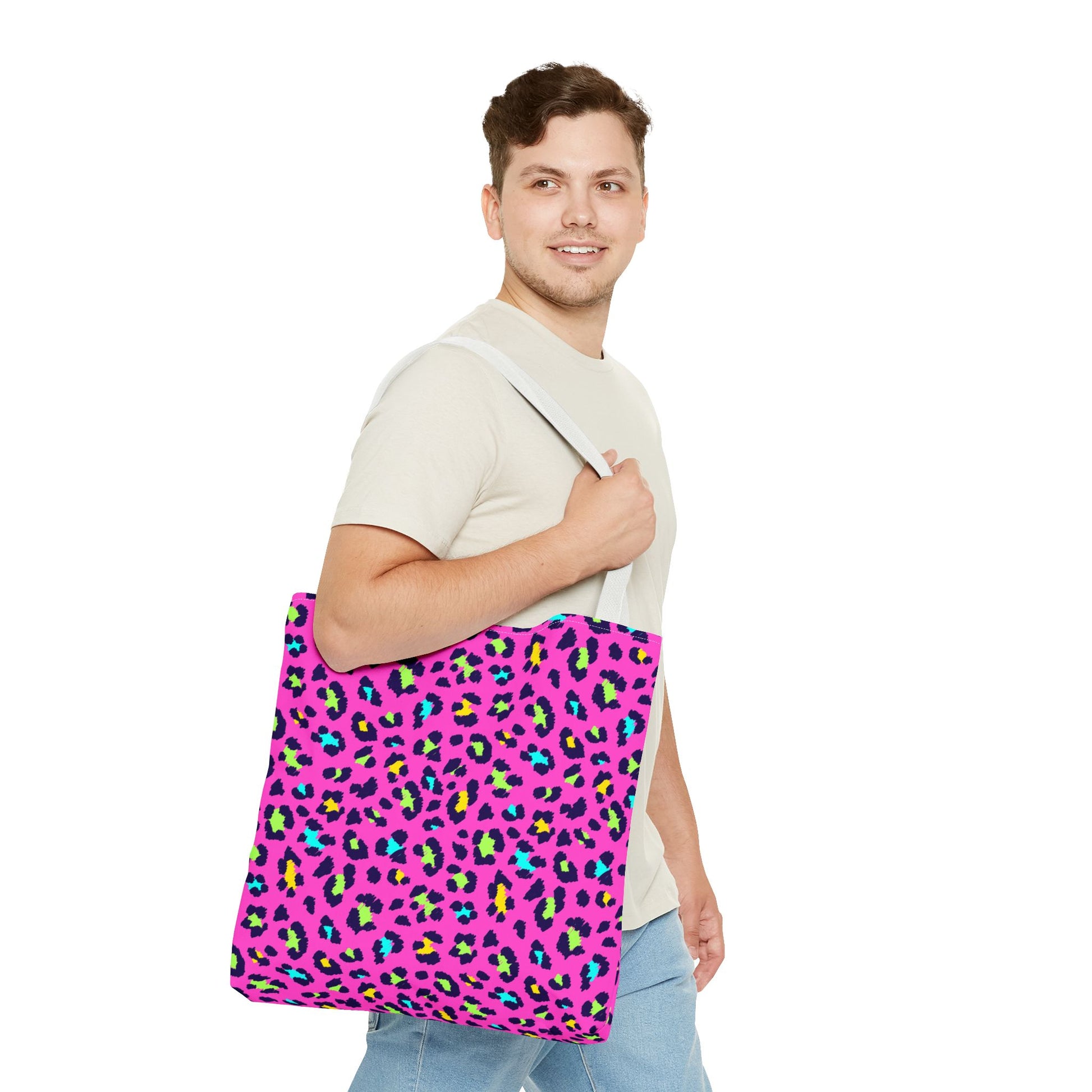 Pink Neon Leopard Print Tote Bag — Bold Animal Print Shopper