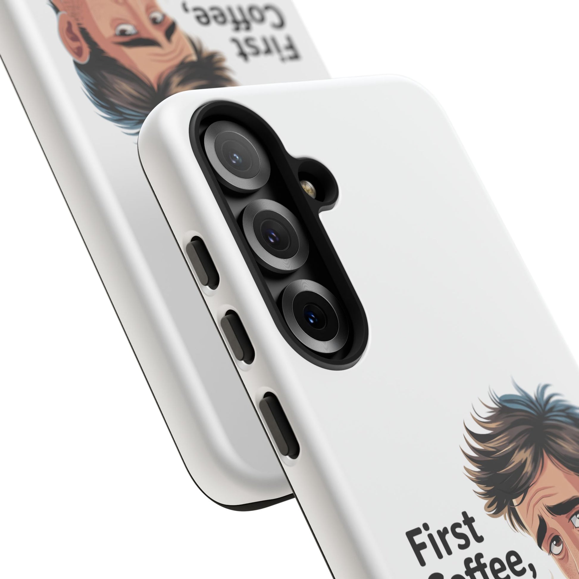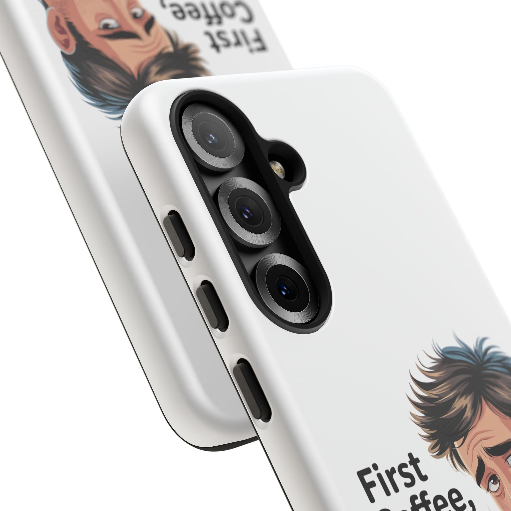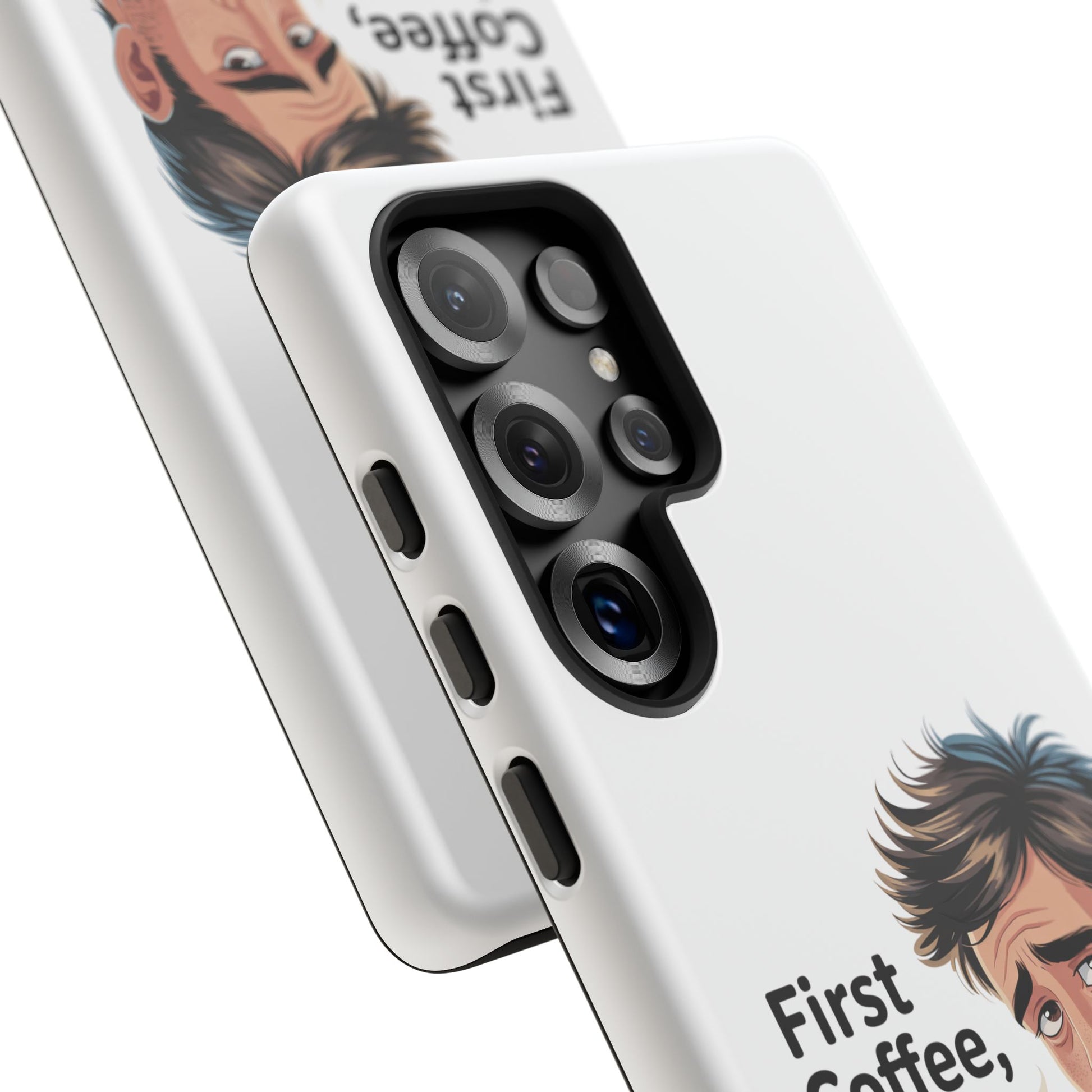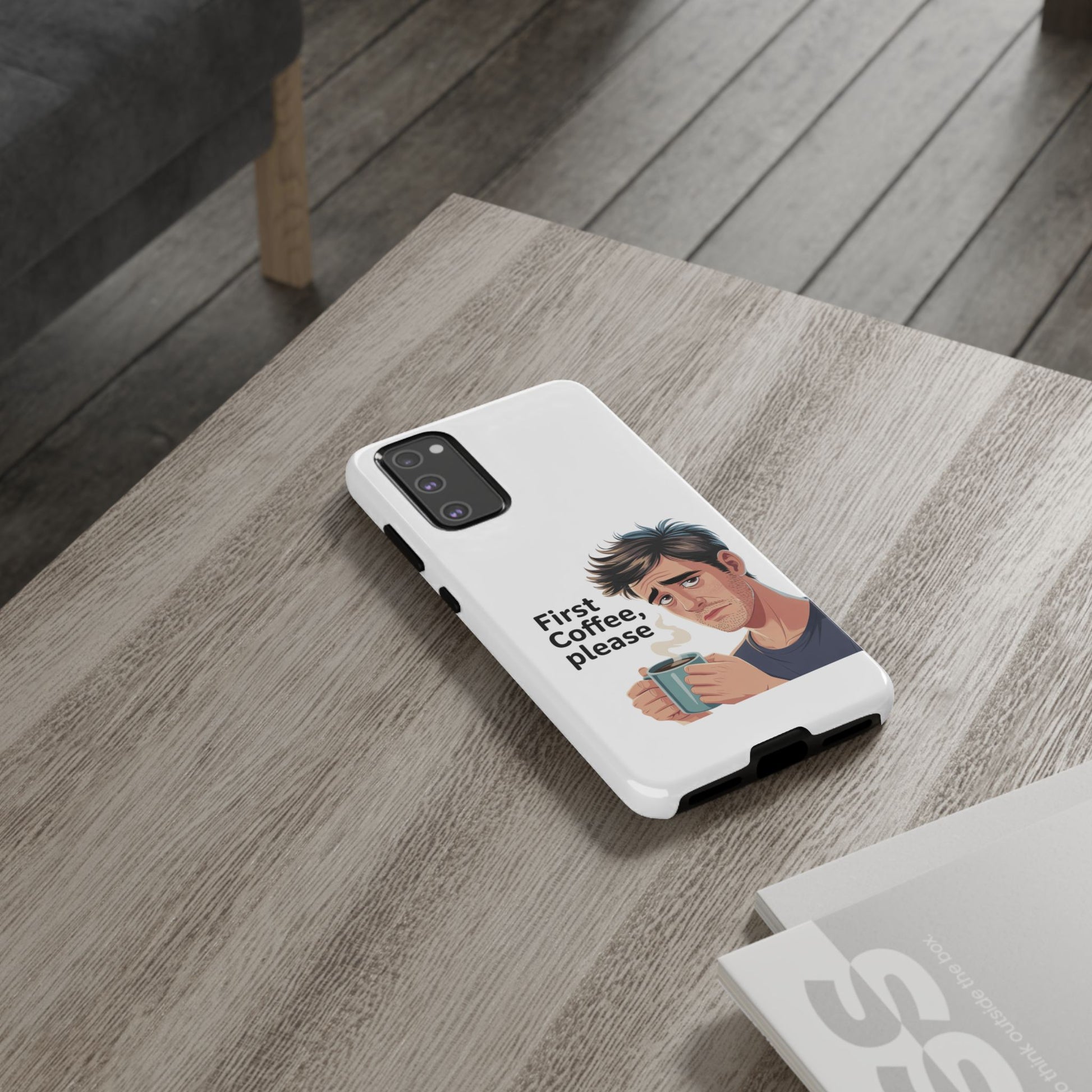 Samsung Phone Case – “First Coffee, Please” Funny Coffee Lover Protective Case
