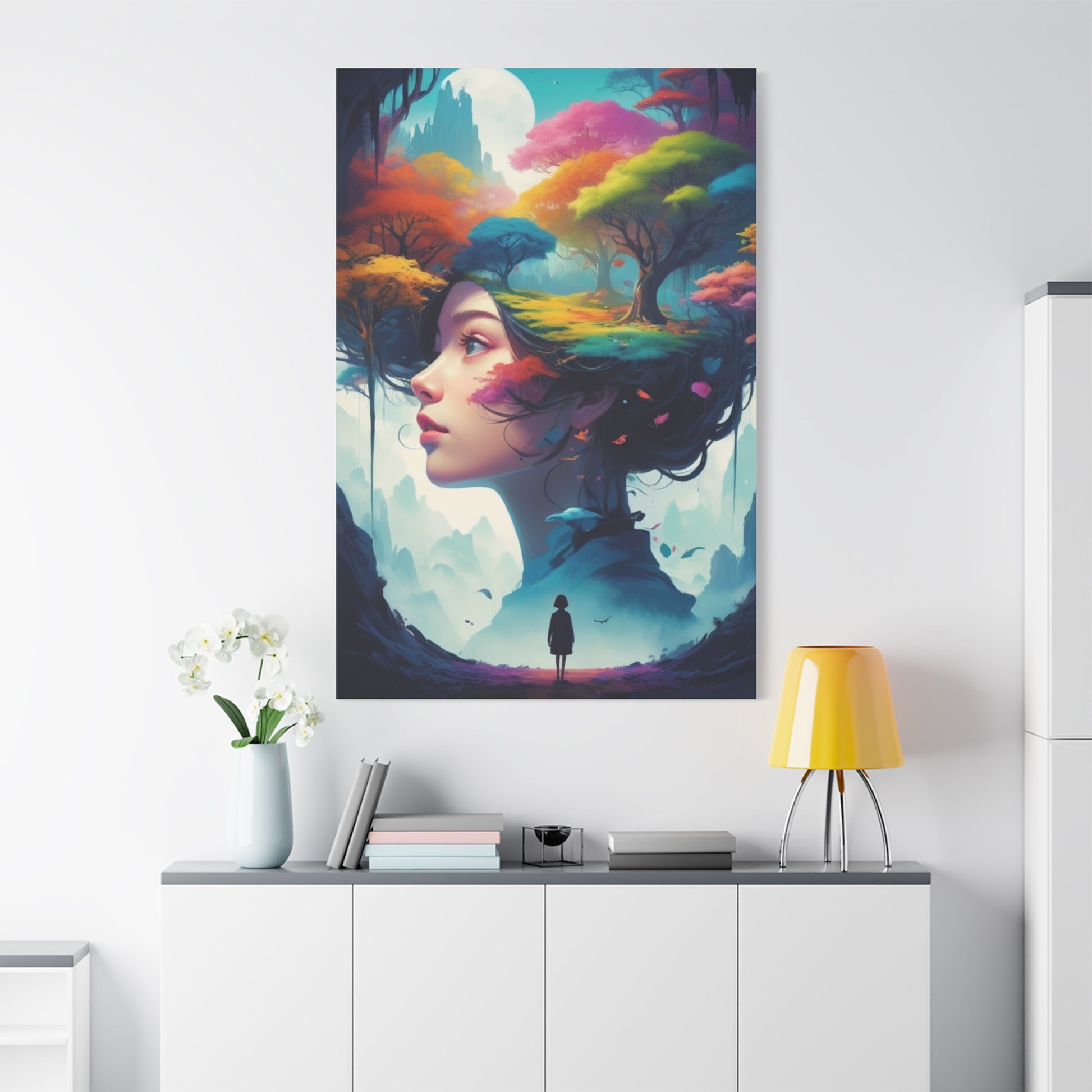 Surreal Forest Woman Matte Canvas Art — Dreamscape Profile Wall Decor