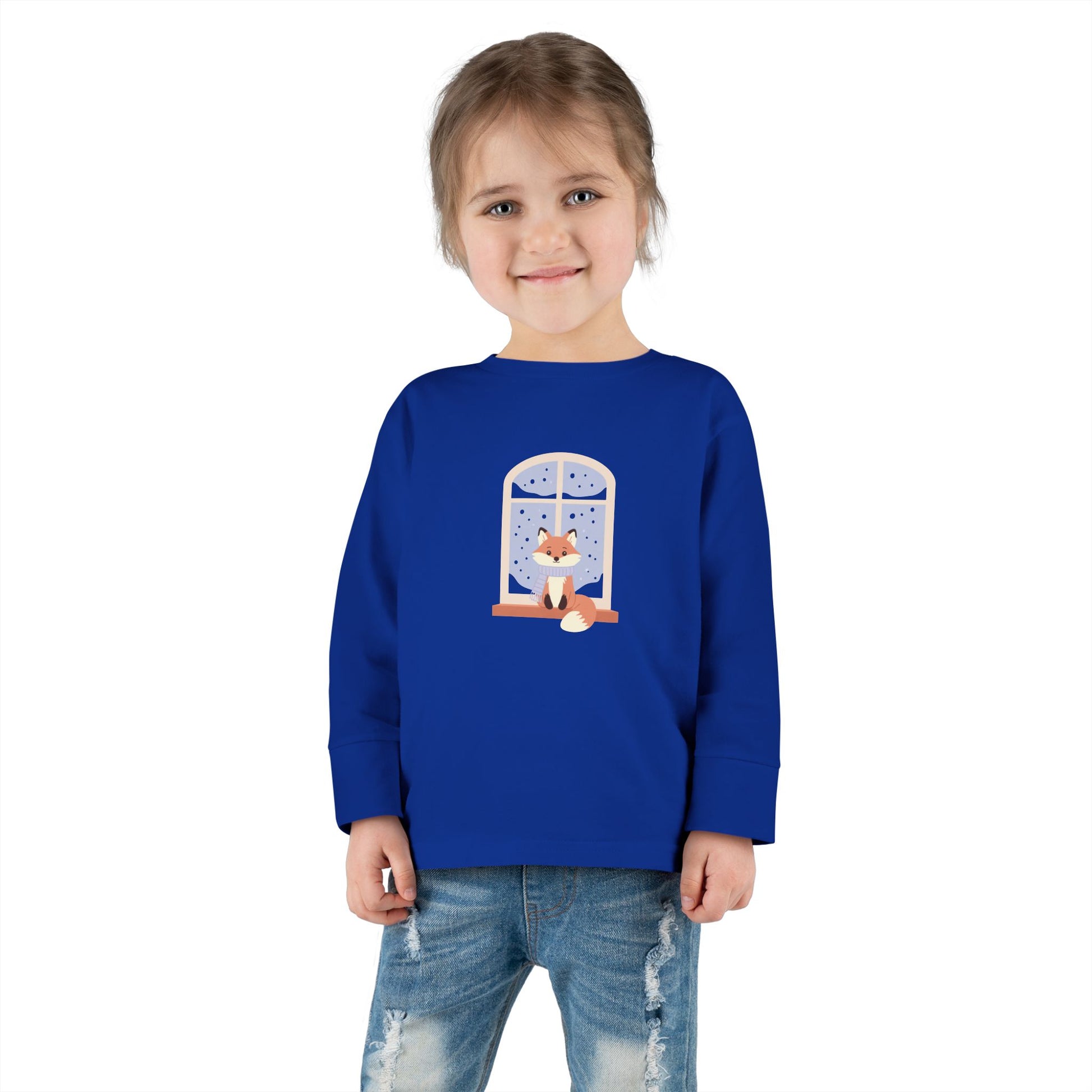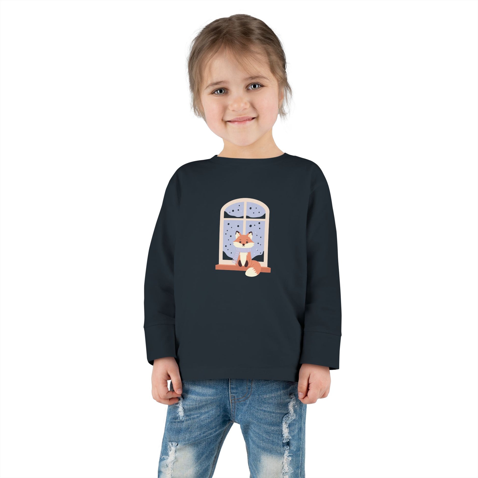 Toddler Long Sleeve Tee — Cozy Fox by Window Winter Sleepy Nursery Shirt