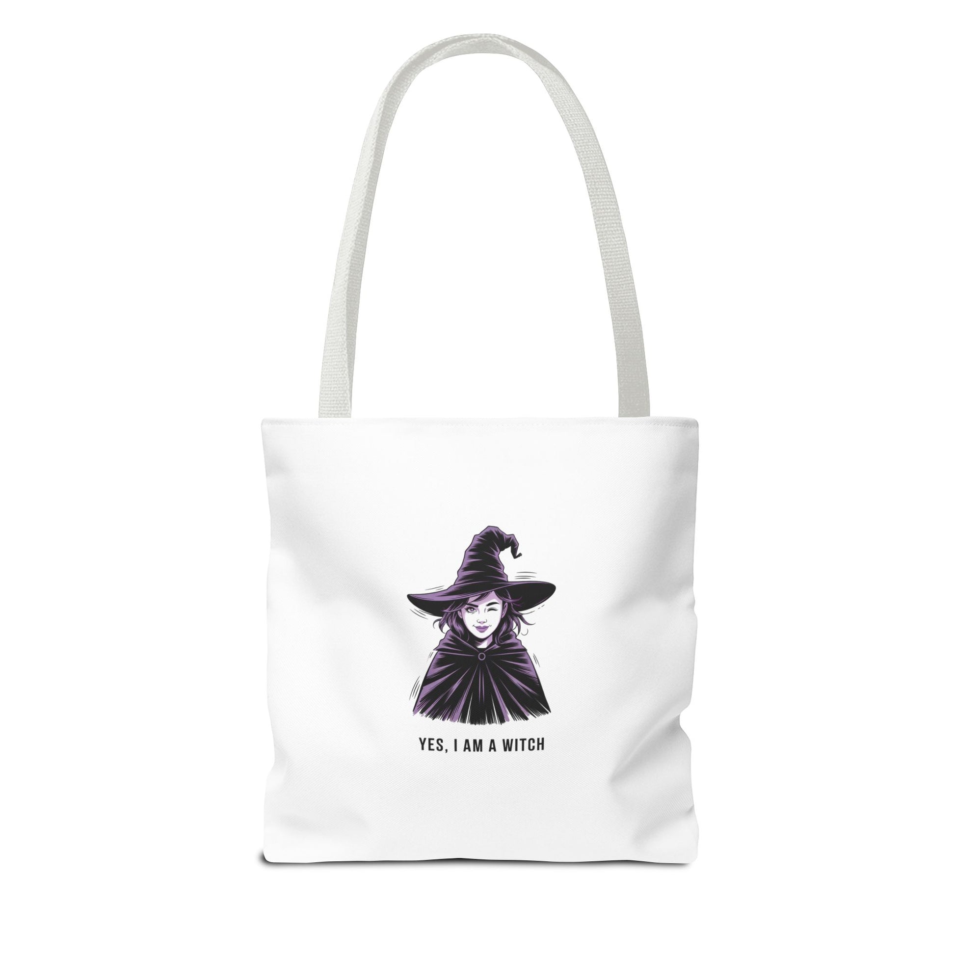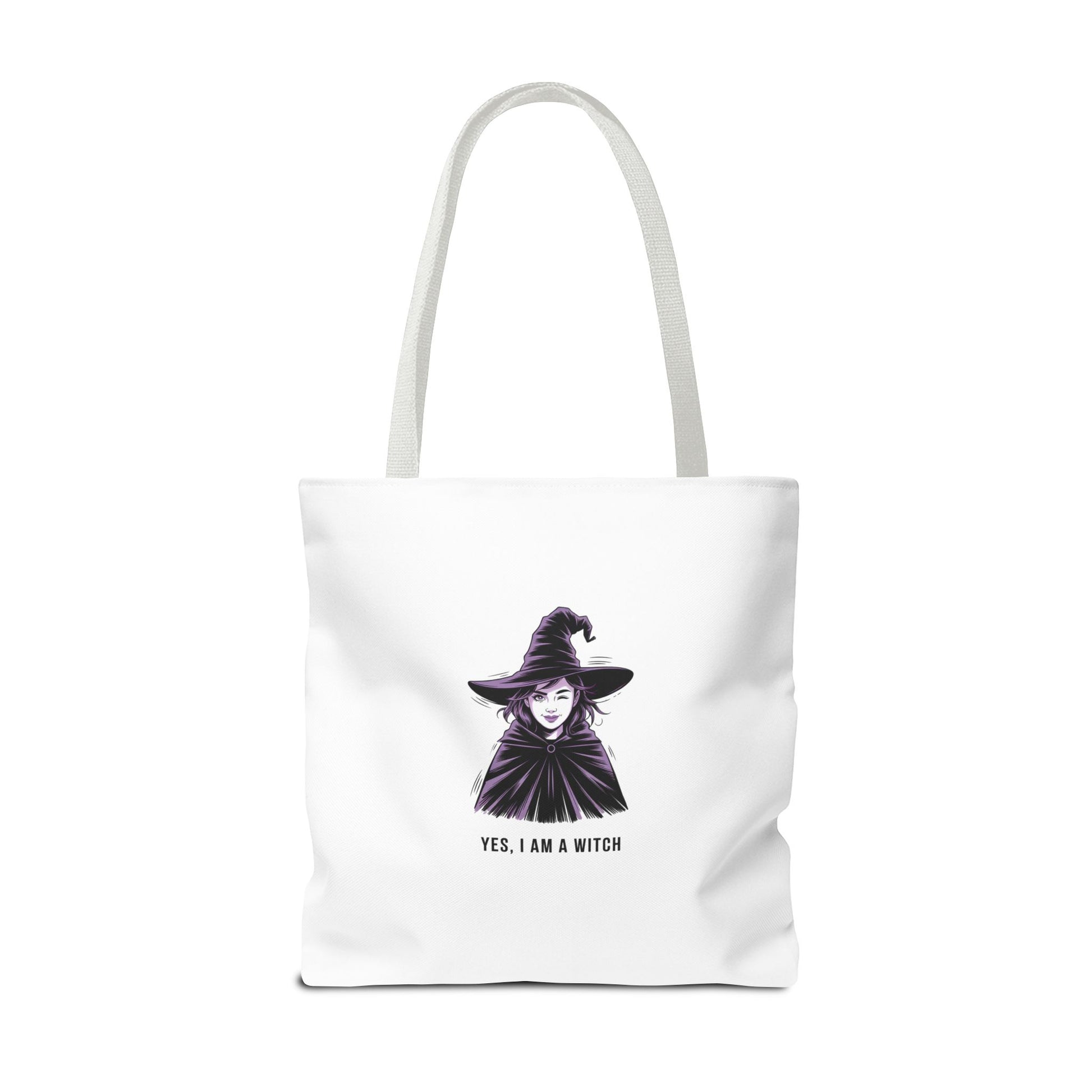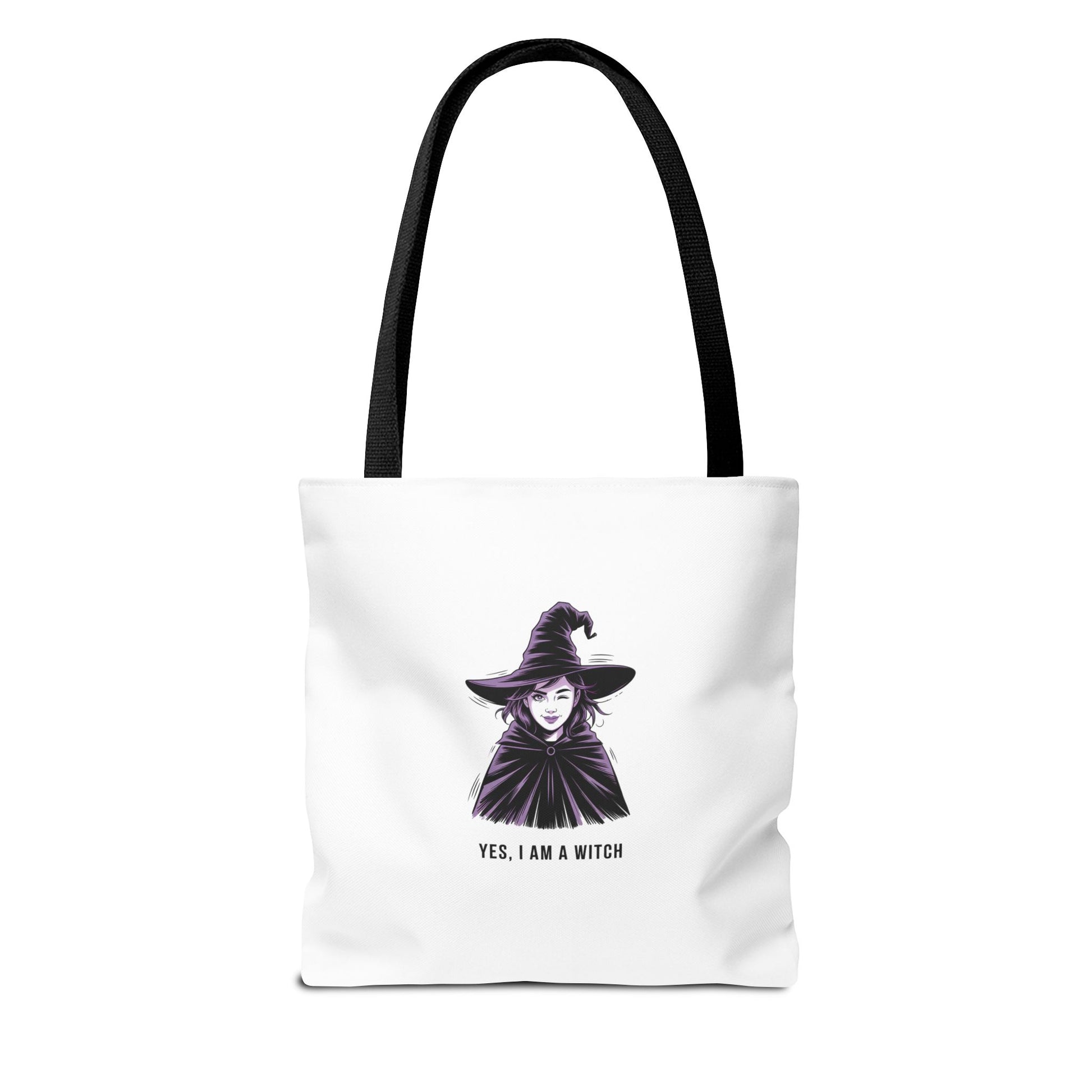 Witch Illustration Tote Bag — "Yes, I Am a Witch" Halloween Canvas Tote