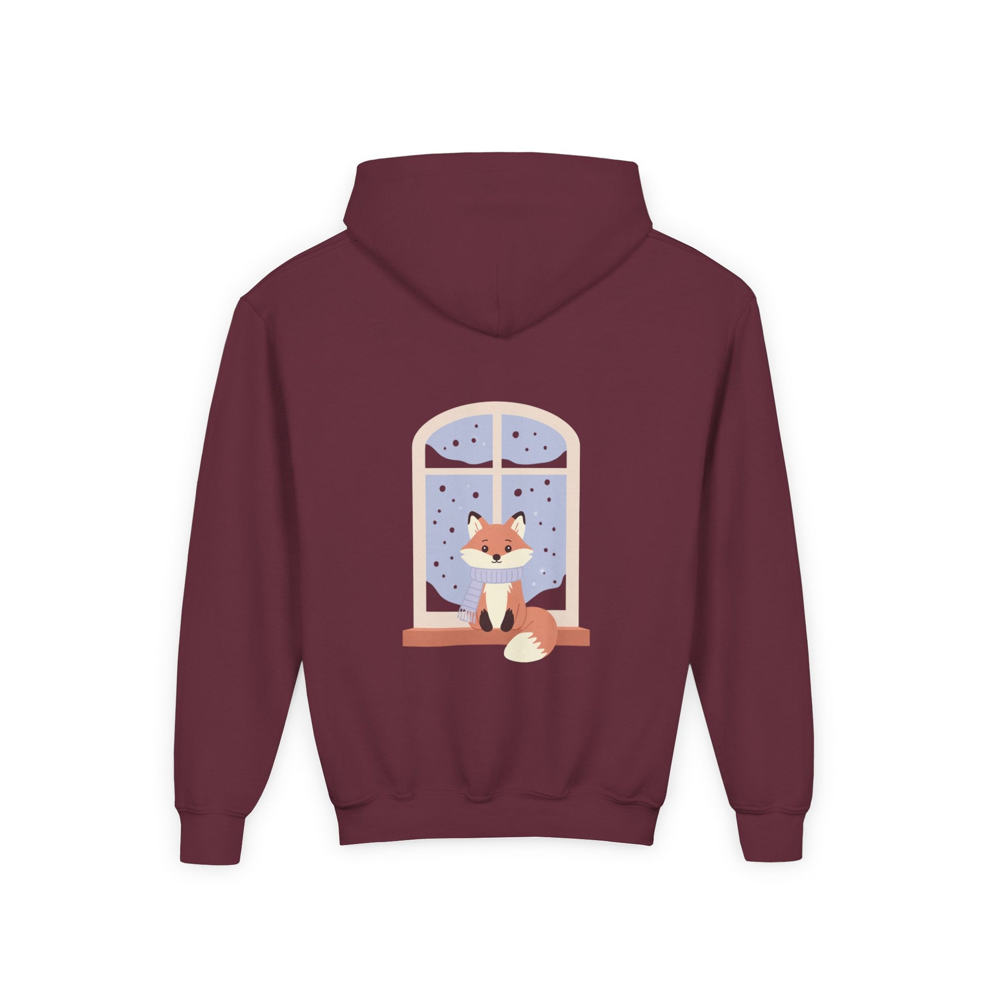 Youth Fox Winter Hoodie - Cute Fox at Window Kids Sweatshirt