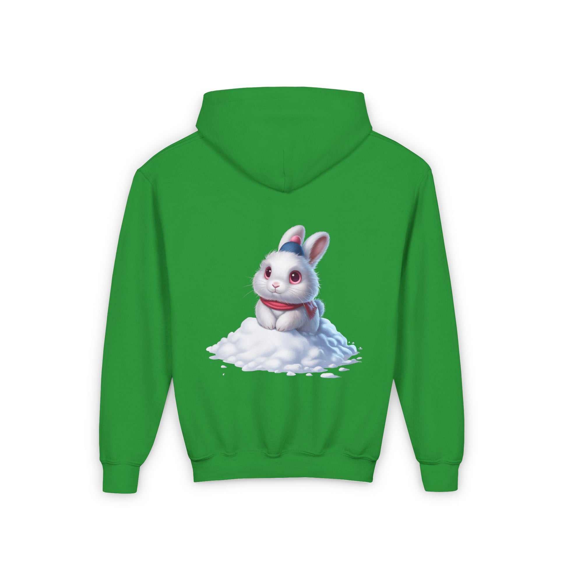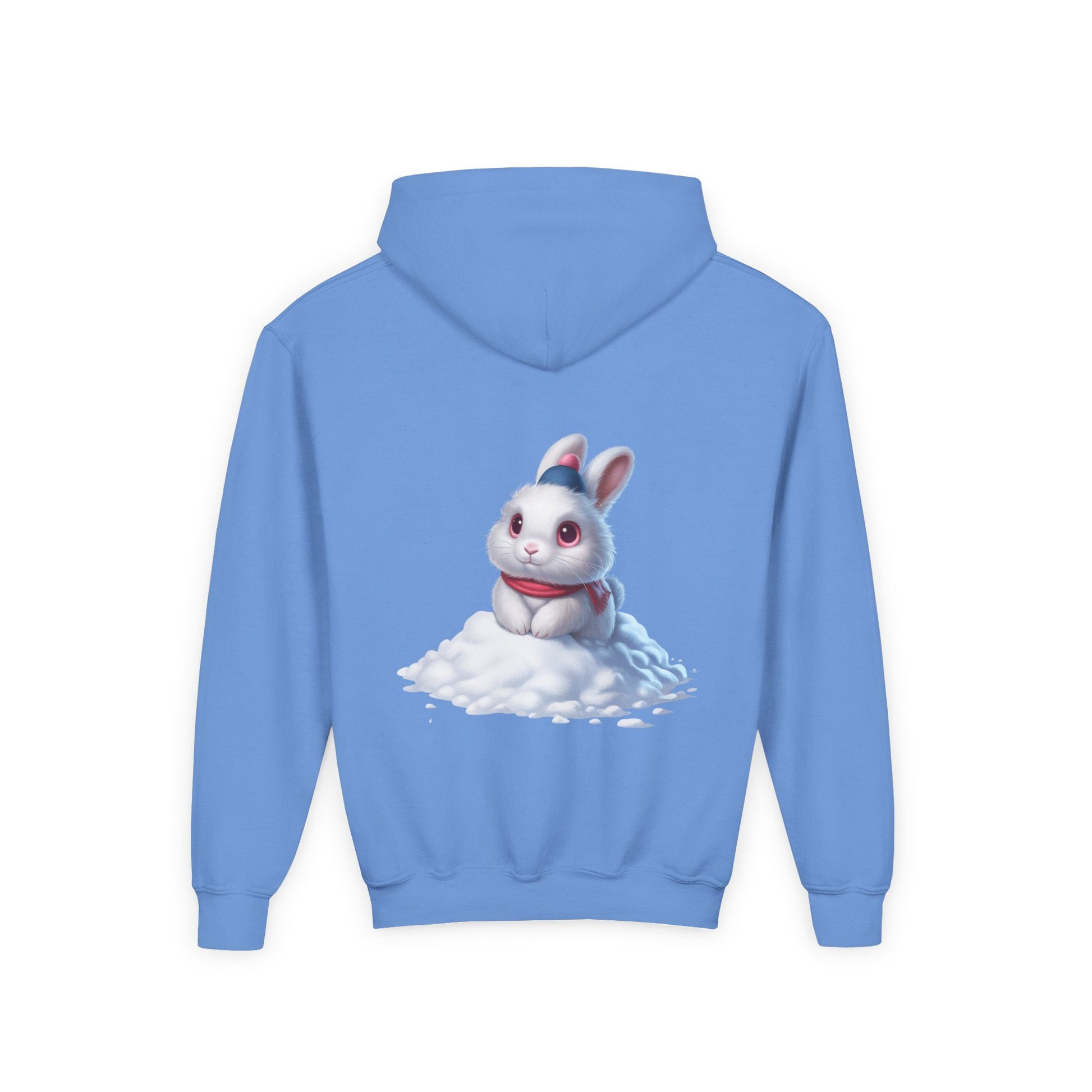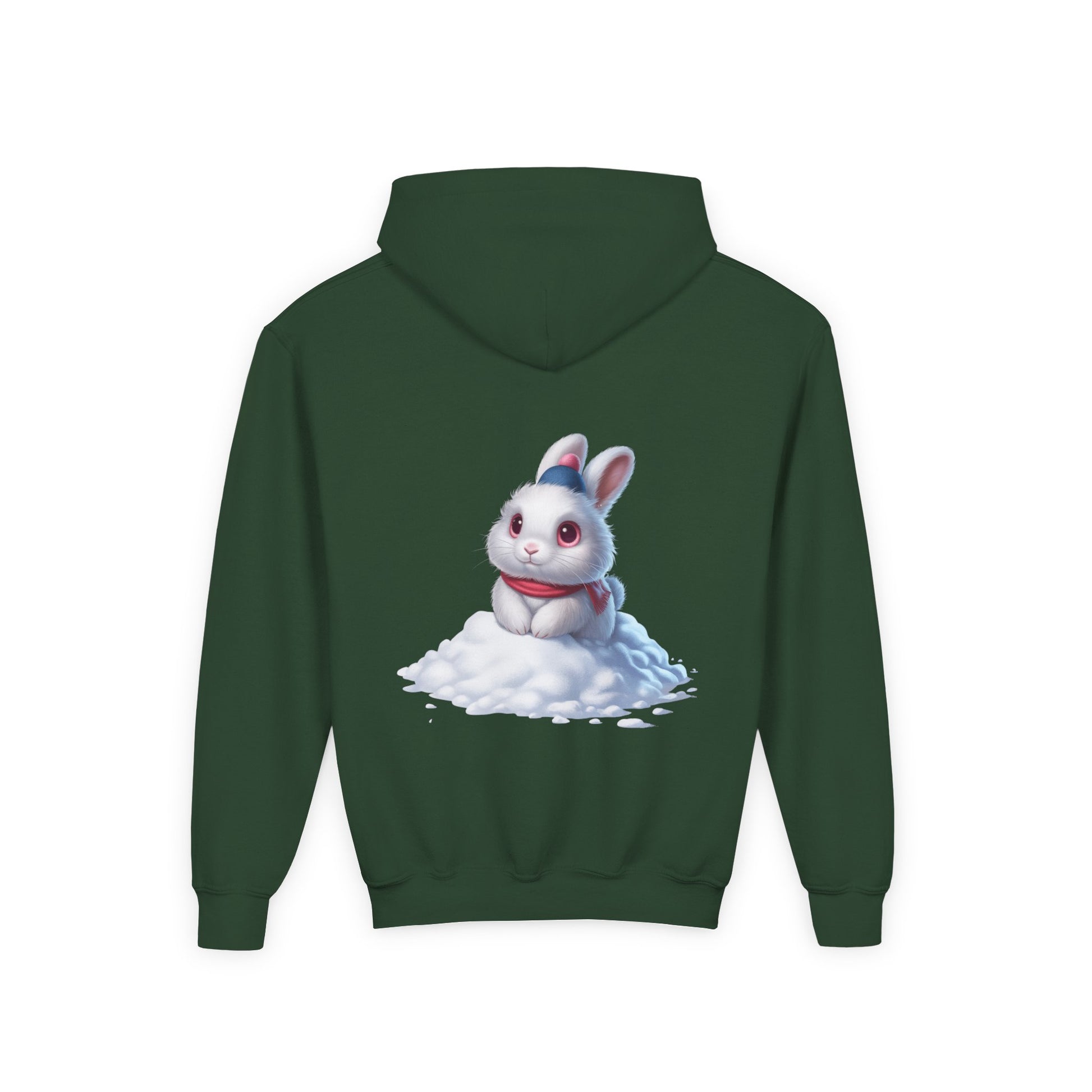 Youth Hoodie — Cute White Bunny in Snowback Graphic